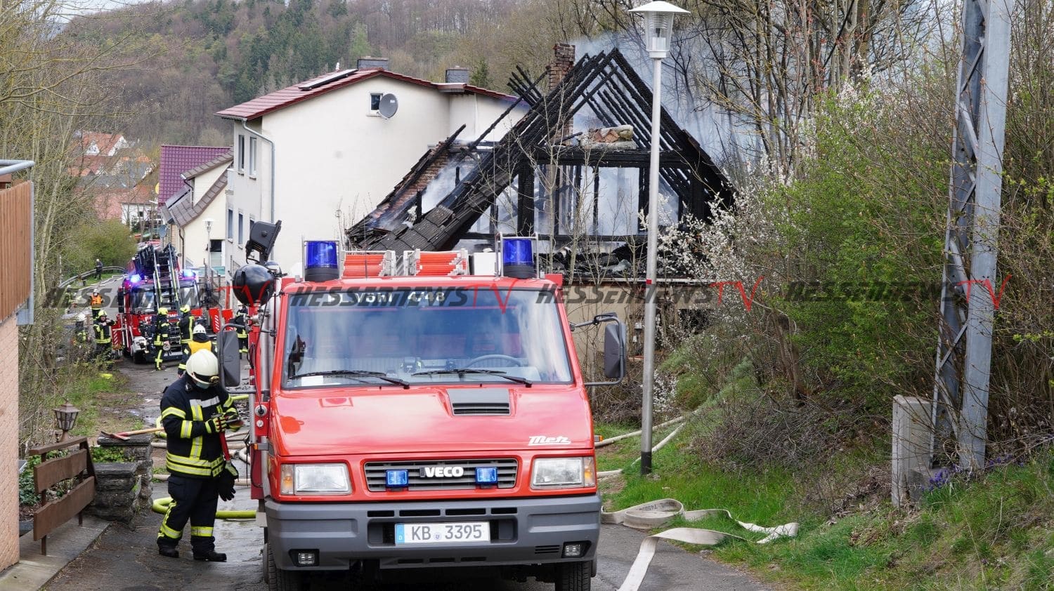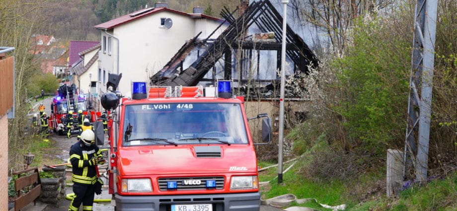 Vöhl – Am Mittwoch gegen 6 Uhr wurde die Feuerwehr zu einem Gebäudebrand in den Vöhler Ortsteil Dorfitter alarmiert. Bei Ankunft der ersten Einsatzkräfte stand das Haus in Vollbrand. Glücklicherweise war das Haus unbewohnt. Verletzt wurde niemand. Für die Löschwasserversorgung wurde eine Schlauchbrücke über die B252 gelegt. Der Verkehr wurde einspurig an die Einsatzstelle vorbei geleitet. Es staute sich bis zu 2 Kilometer in beide Richtungen.