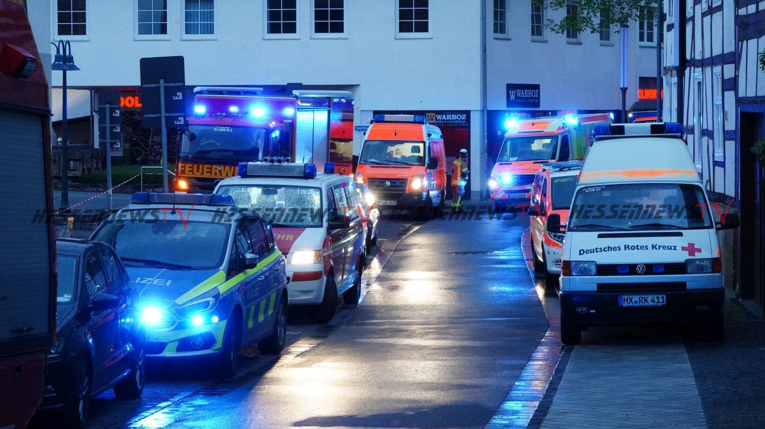 Warburg – zu einem Großeinsatz kam es am Montagabend an der Landesgrenze von Hessen und Nordrhein-Westfalen. In der Warburger Innenstadt kam es gegen 19.30 Uhr zu einem Küchenbrand in einem Mehrfamilienhaus in der Unterstraße. Ein Herd, in dem sich eine Pfanne befand, wurde anscheinend versehentlich angemacht. Es entstand eine Rauchentwicklung, die ein Bewohner mit einem Feuerlöscher ablöschte. Eine Mischung aus Rauch und Löschpulver verteilte sich in dem Mehrfamilienhaus, so dass insgesamt 17 Hausbewohner im Alter von 0 bis 64 Jahre in Krankenhäuser eingeliefert wurden. Auch mehrere Rettungswagen waren aus dem hessischen Raum im Einsatz. Das Haus ist derzeit nicht bewohnbar.