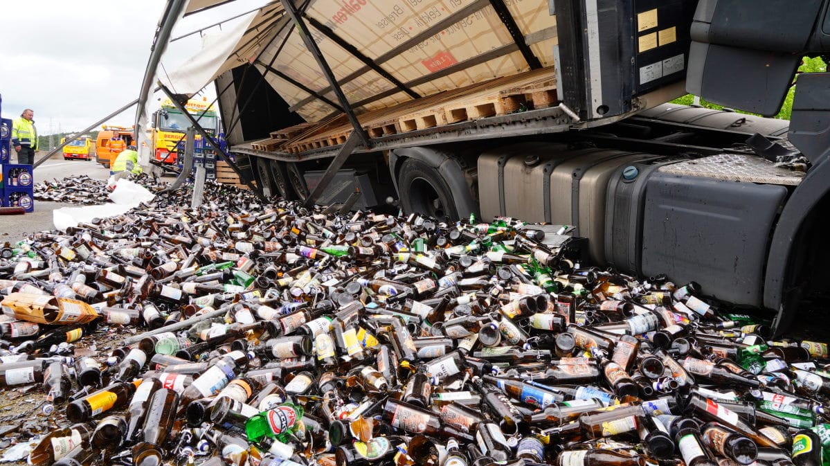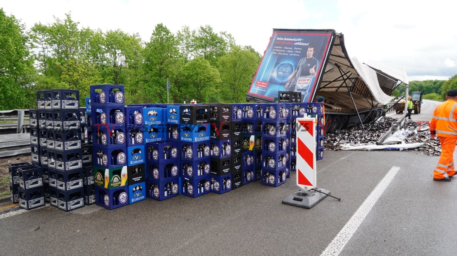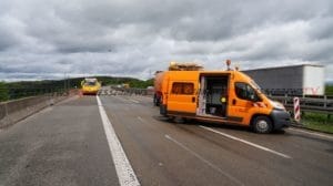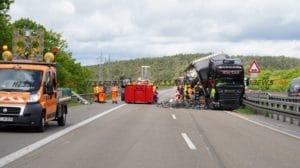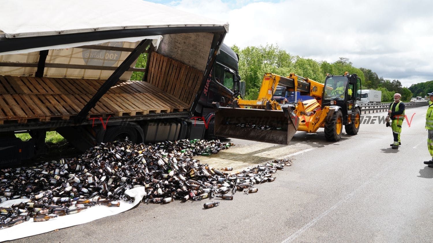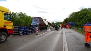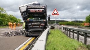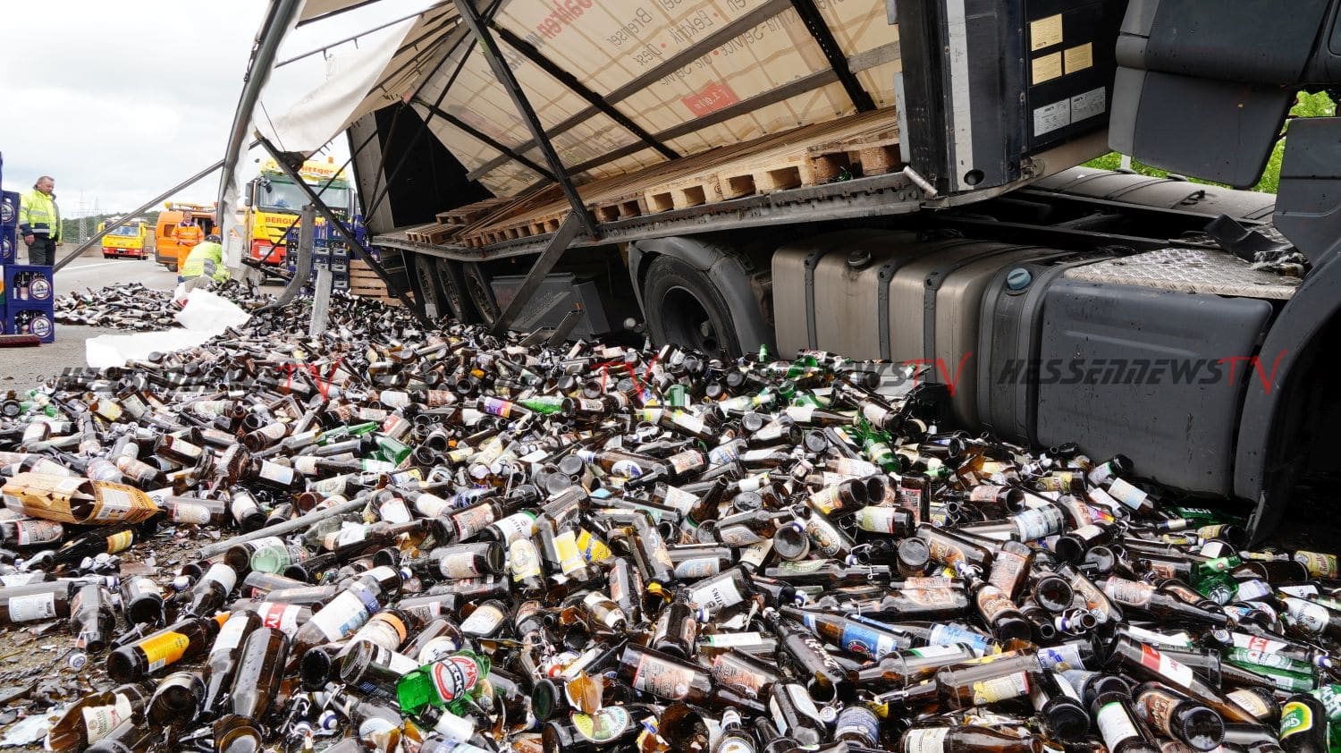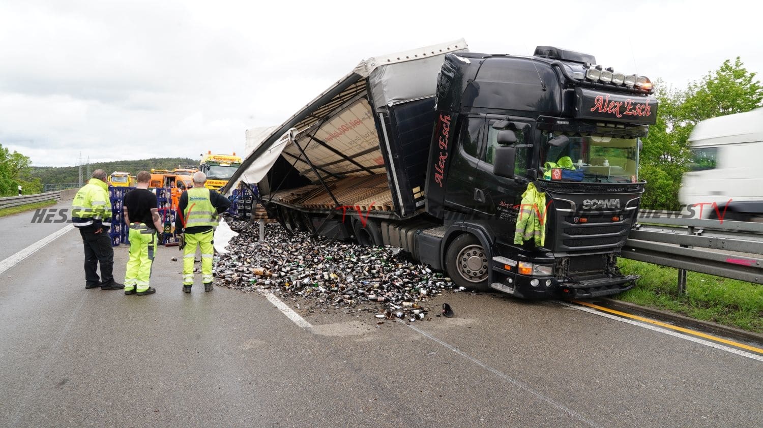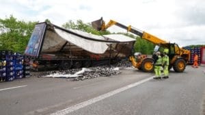Breuna – Auf der A44 kam es am Dienstagmorgen zwischen Warburg und Breuna zu einem LKW-Unfall. Wie der LKW-Fahrer Alexander Esch gegenüber Hessennews.TV berichtet, fuhr er mit seinem Sattelzug in Fahrtrichtung Kassel. Rund einem Kilometer vor der Abfahrt Breuna platzte ihm ein Reifen vorne links. Dabei verlor er die Kontrolle über sein LKW und krachte in die Mittelleitplanke. Der Fahrer blieb unverletzt. Die Ladung, rund 20 Tonnen Leergut, verteilte sich zum größten Teil über die Fahrbahn. Die Bergungsarbeiten sind schwierig, wie uns Marc Schnittger vom Bergungsdienst berichtet. Erst muss der LKW komplett entladen werden und das Leergut von der Fahrbahn geräumt werden. Erst dann kann der Kran zum Einsatz kommen und den Sattelauflieger von der Mittelleitplanke herunterheben. Die Vollsperrung wurde gegen 14.15 Uhr aufgehoben.