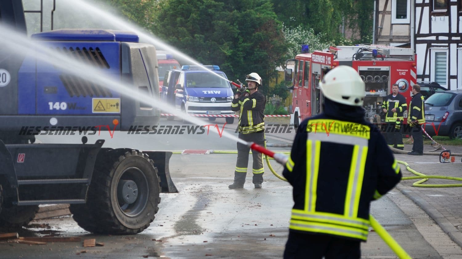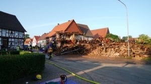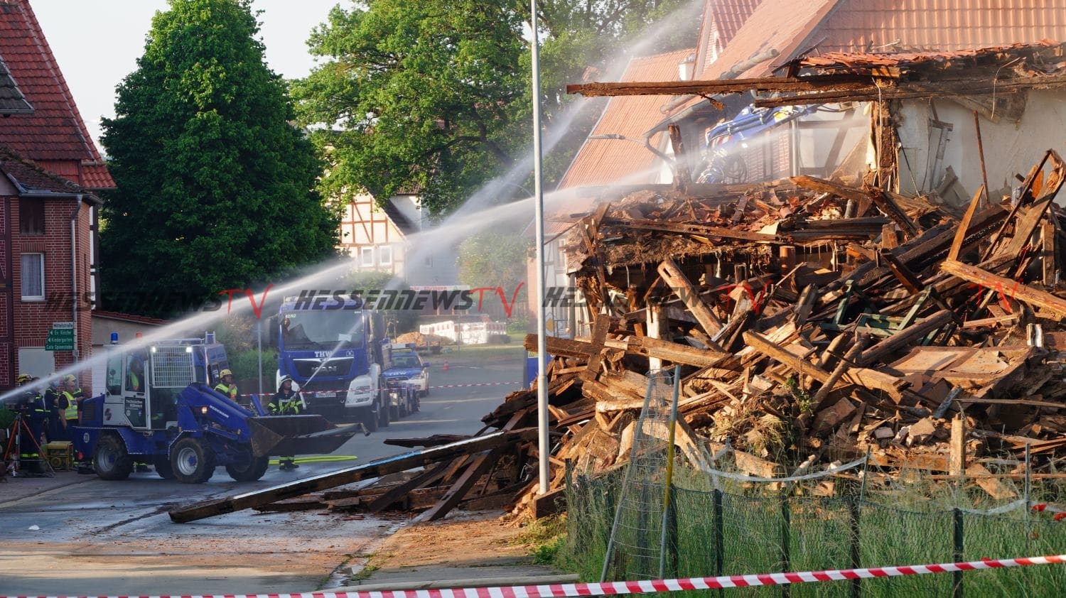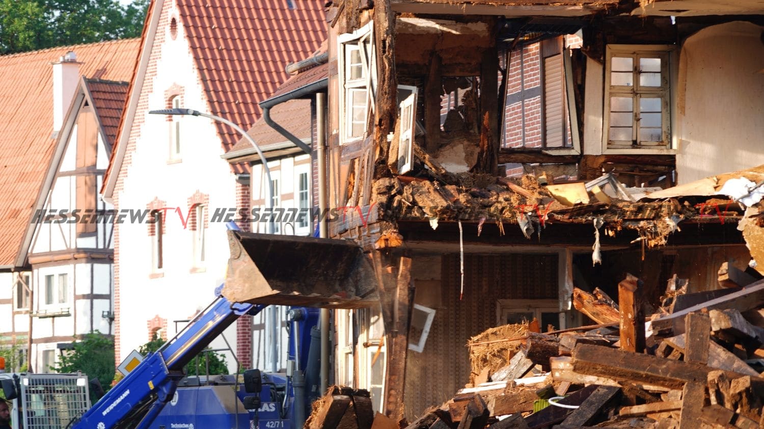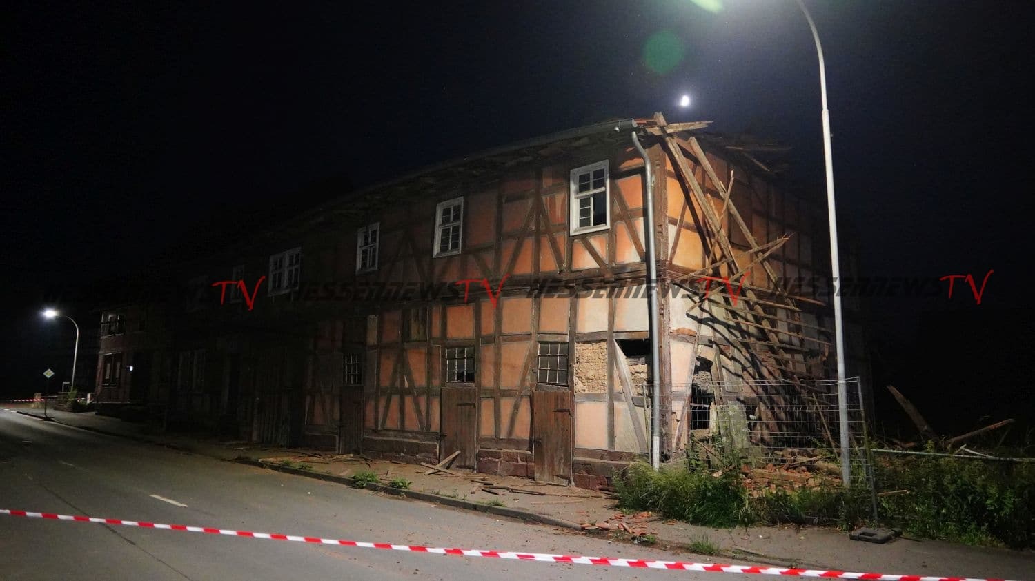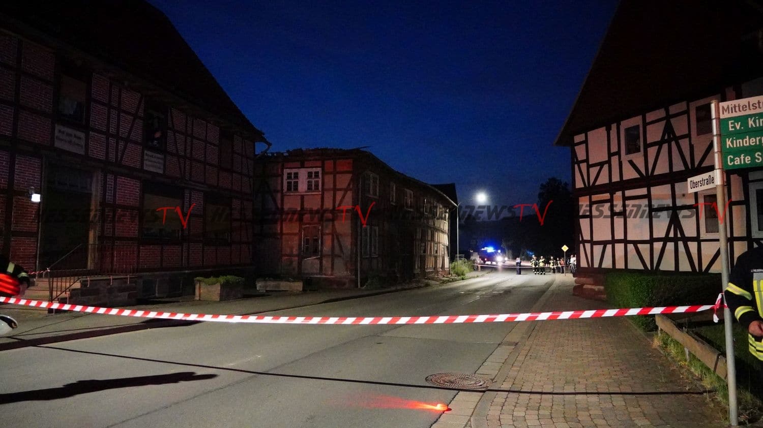 Volkmarsen – Die Anwohner in Volkmarsen-Ehringen wurden in der Nacht auf Samstag durch ein lautes Geräusch geweckt, kurz danach ging die Sirene. In der Ortsdurchfahrt in Höhe der Unterstraße war der Dachstuhl eines unbewohnten Haus eingestürzt. Die Feuerwehr, die gegen 22.45 Uhr alarmiert wurde, sicherte die Einsatzstelle ab. Im Gebäude waren keine Personen mehr. Noch in der Nacht wurde das THW Korbach und Frankenberg beauftragt, das Gebäude abzureißen. Die Ortsdurchfahrt ist weiterhin voll gesperrt. Der Ortsverband des DRK Korbach-Bad Arolsen versorgte die Einsatzkräfte mit Essen und Getränke.
