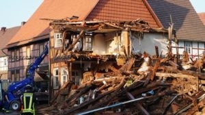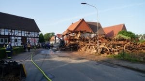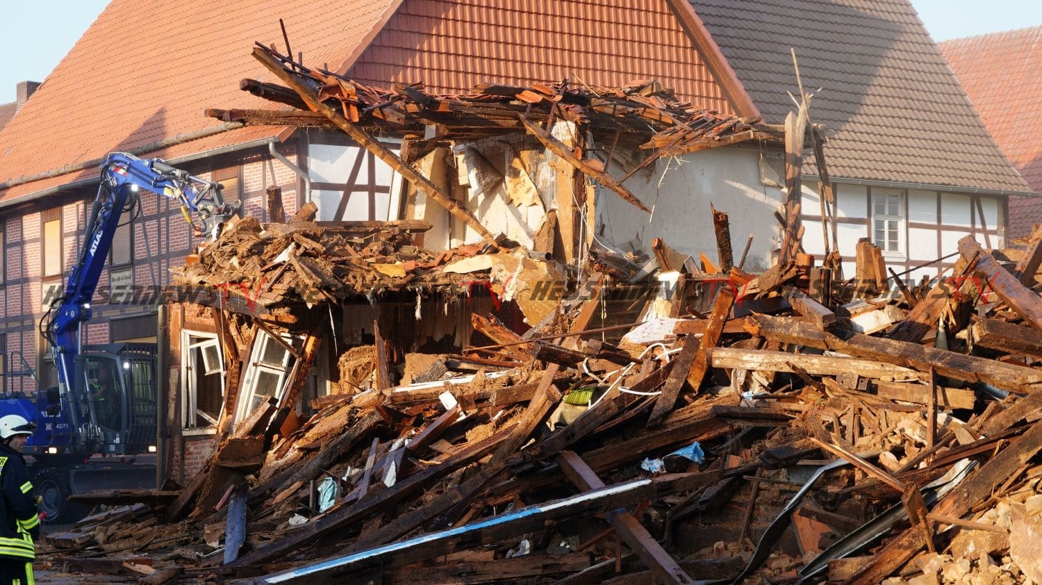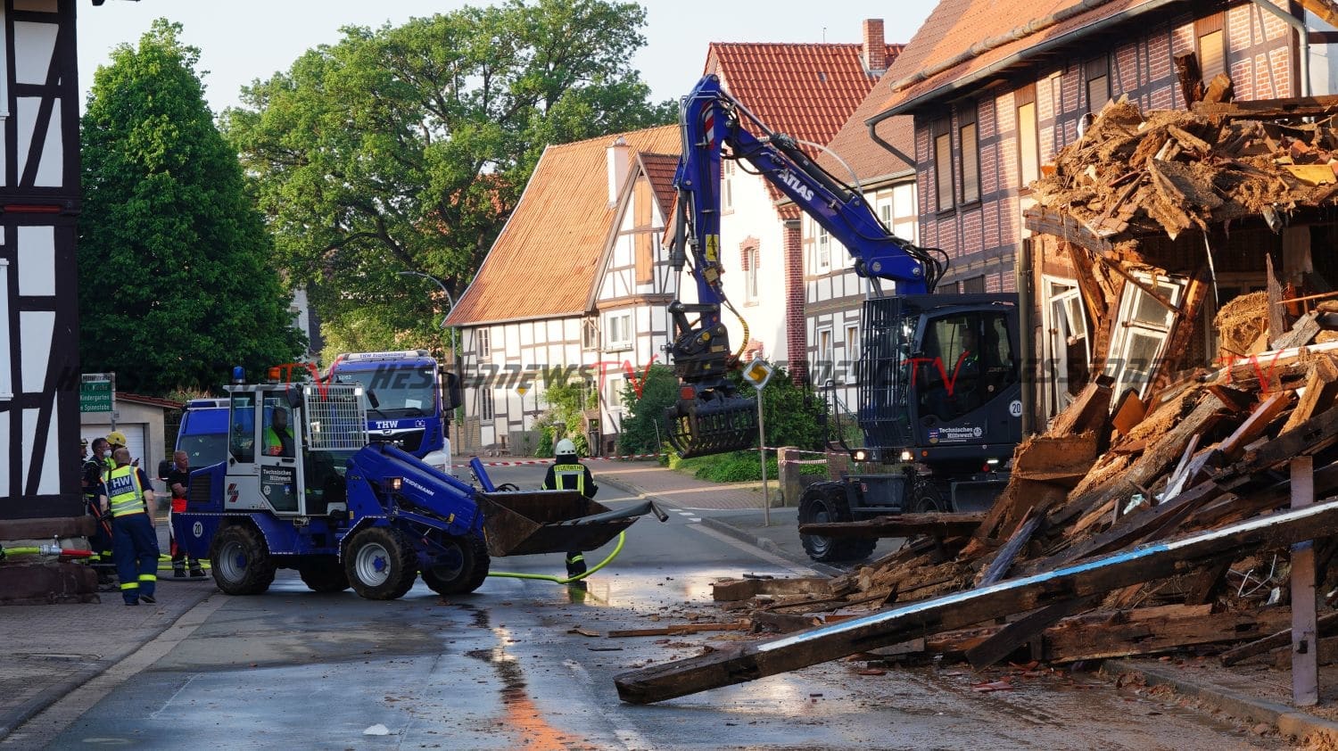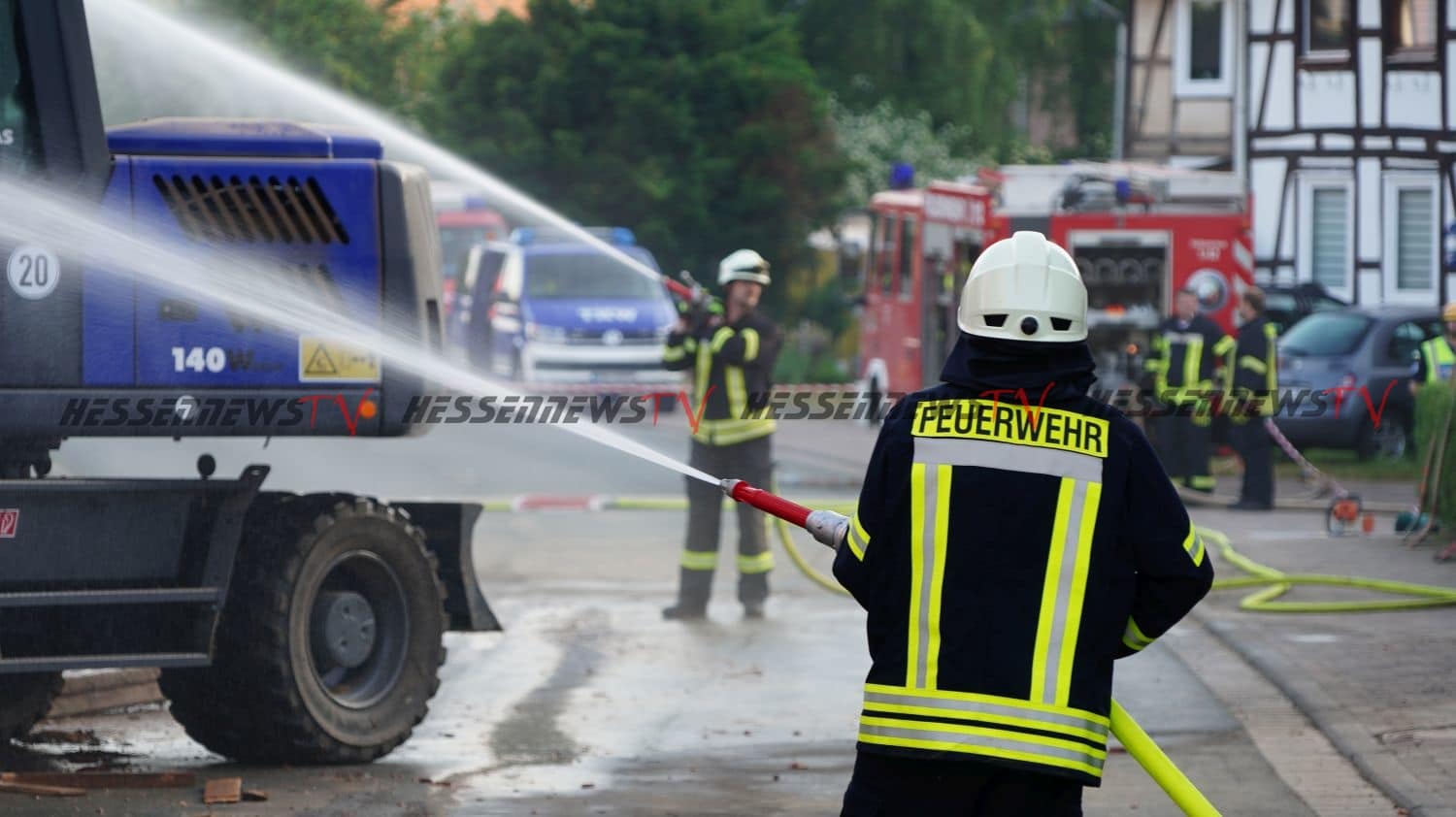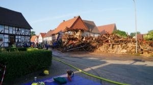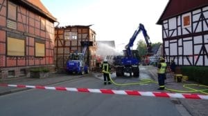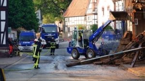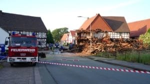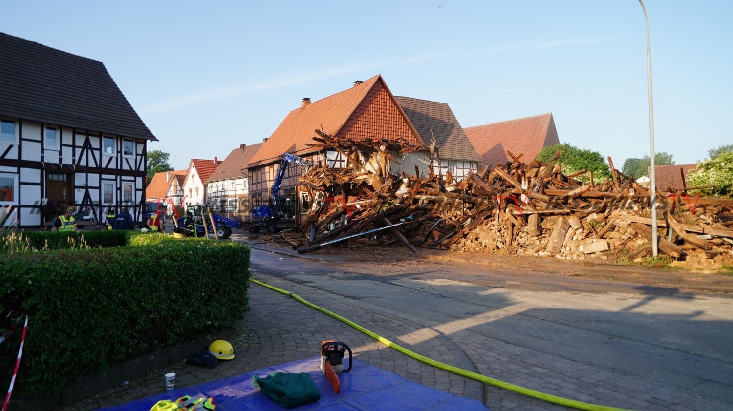 Volkmarsen – Die Anwohner in Volkmarsen-Ehringen wurden in der Nacht auf Samstag durch ein lautes Geräusch geweckt, kurz danach ging die Sirene. In der Ortsdurchfahrt in Höhe der Unterstraße war der Dachstuhl eines unbewohnten Haus eingestürzt. Die Feuerwehr, die gegen 22.45 Uhr alarmiert wurde, sicherte die Einsatzstelle ab. Im Gebäude waren keine Personen mehr. Noch in der Nacht wurde das THW Korbach und Frankenberg beauftragt, das Gebäude abzureißen. Die Ortsdurchfahrt ist weiterhin voll gesperrt. Der Ortsverband des DRK Korbach-Bad Arolsen versorgte die Einsatzkräfte mit Essen und Getränke.