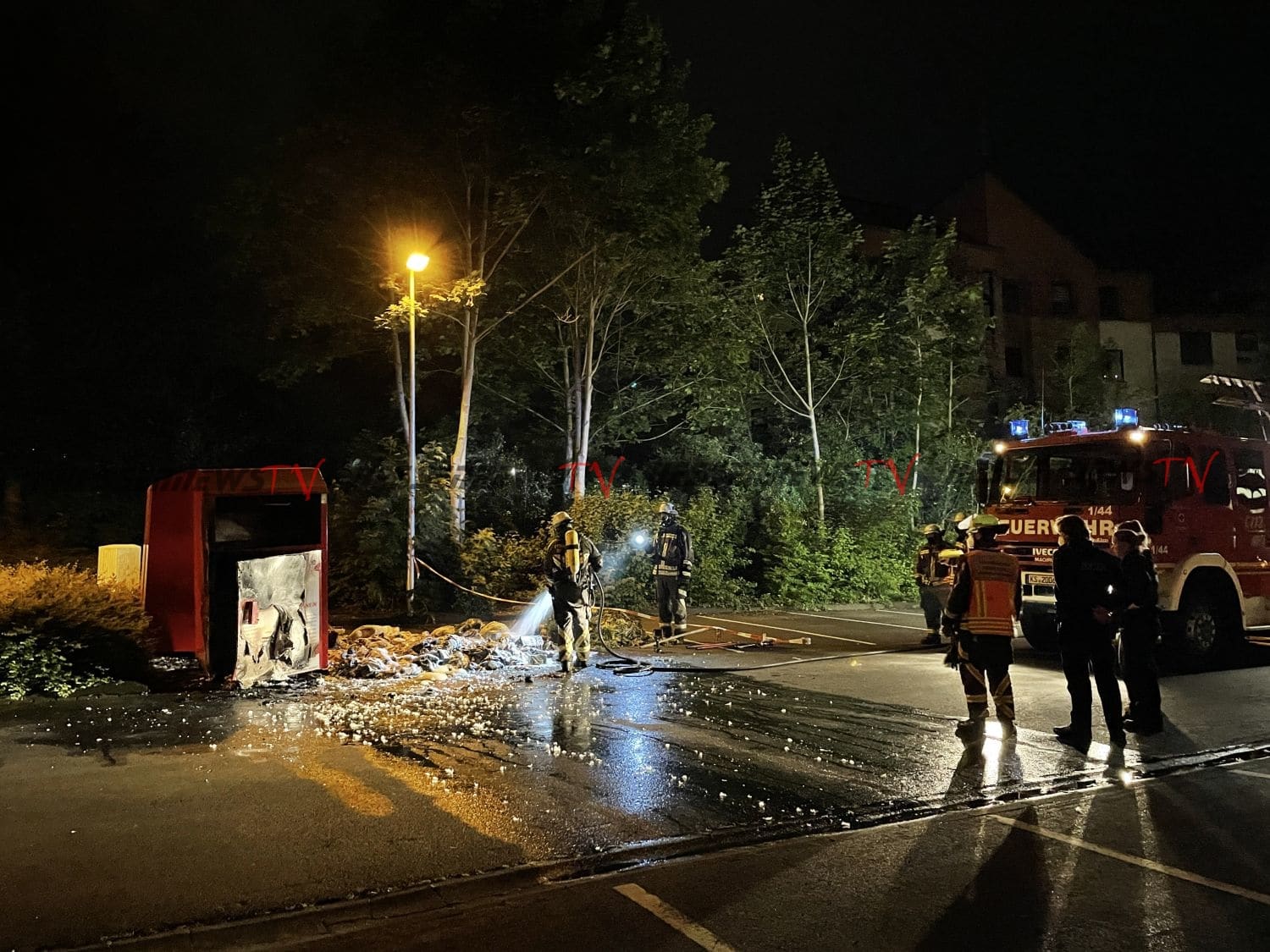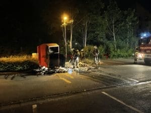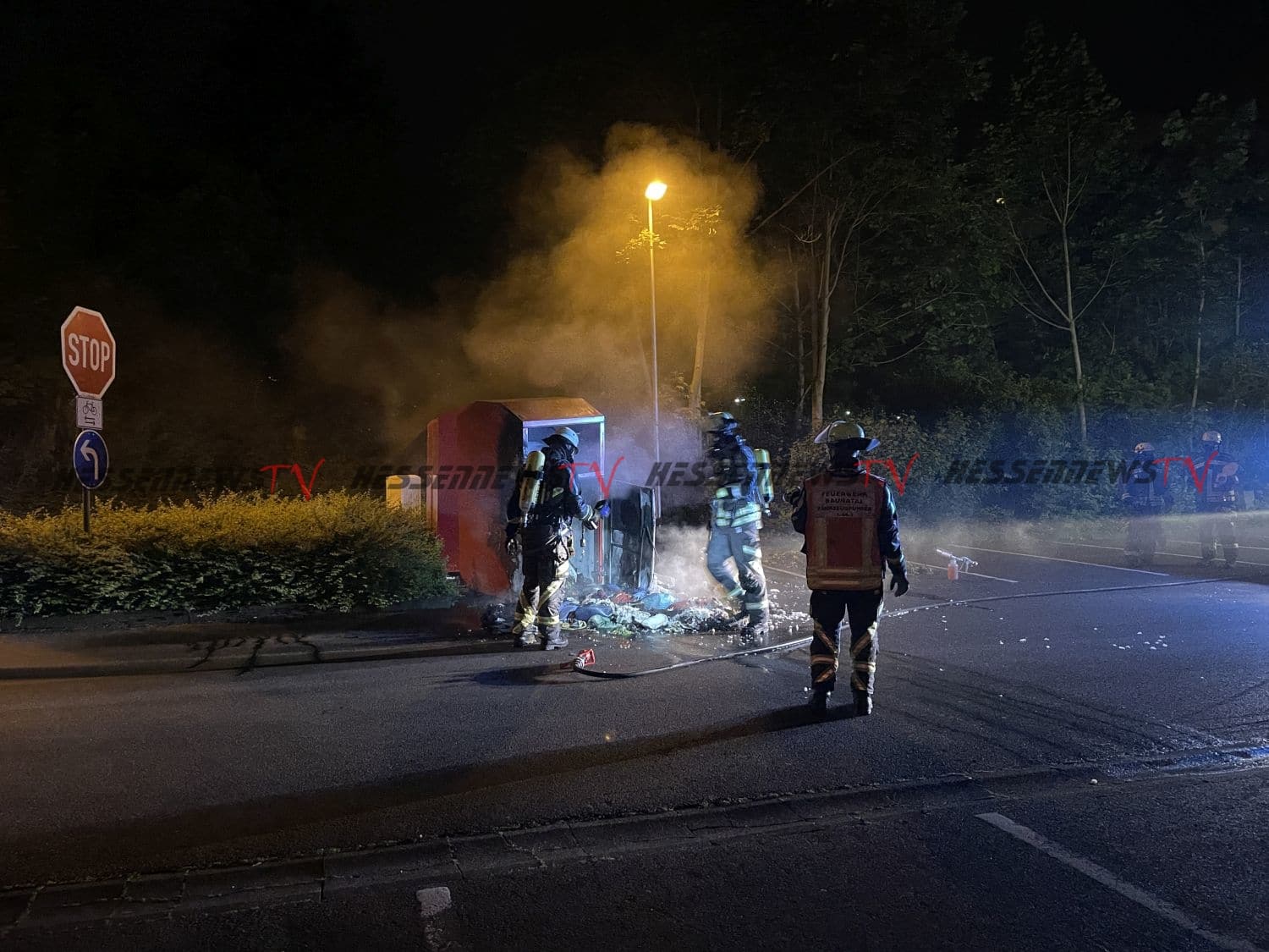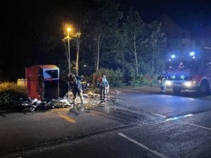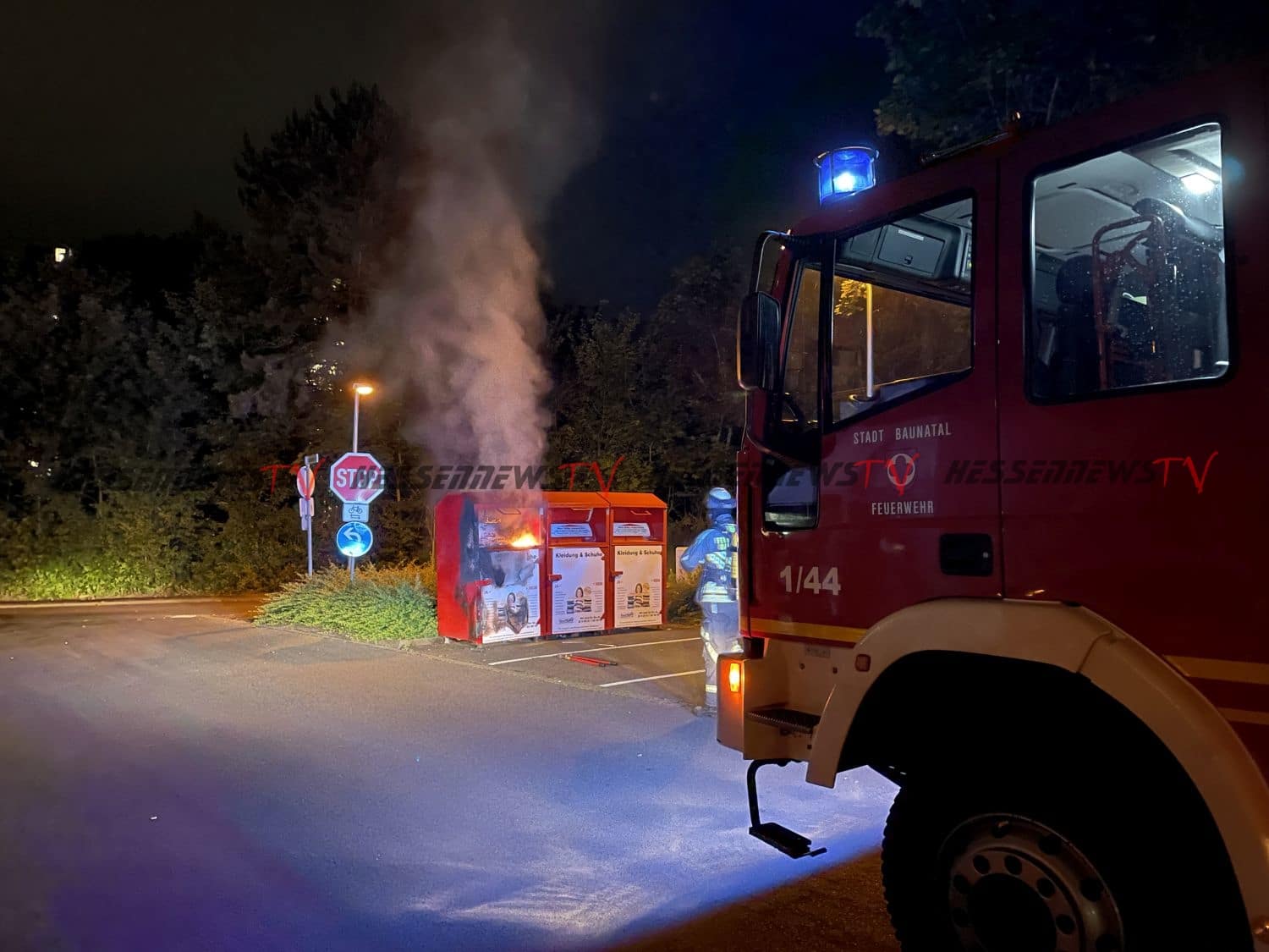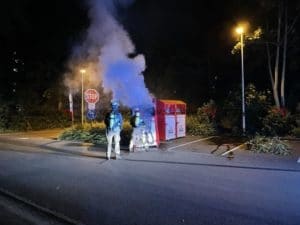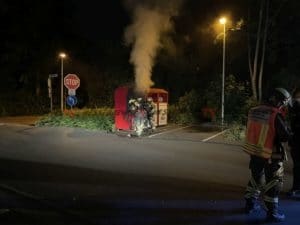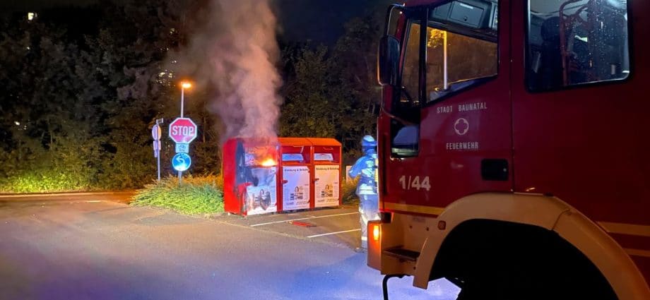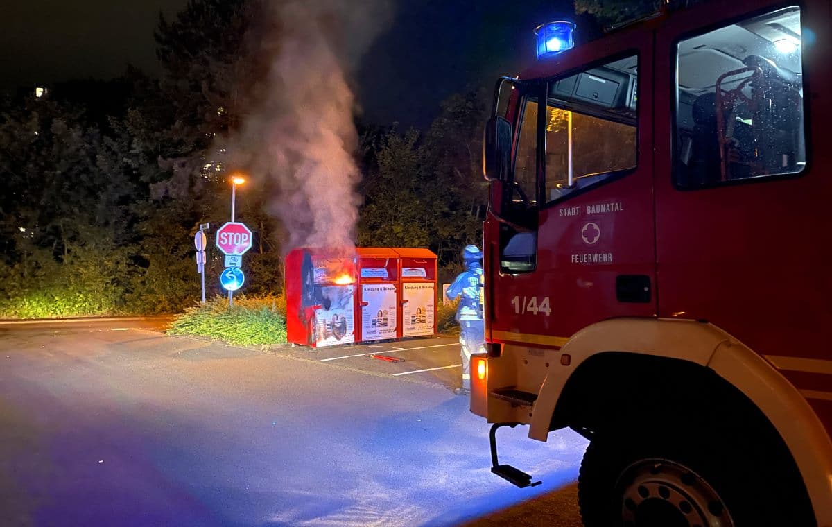 Baunatal − In der Nacht zum Mittwoch gegen 01:20 Uhr wurde die Feuerwehr Baunatal durch aufmerksame Passanten zu einem Container Brand alarmiert. Als die ersten Einsatzkräfte auf dem Parkplatz an der Maximilian-Kolbe-Straße eintrafen, schlugen die Flammen bereits aus dem Altkleider-Container. Die Feuerwehr brach den Container unter Atemschutz auf, zog die Kleidung auseinander und löschte die Flammen, die übergebliebenen Glutnester wurden mit Hilfe von Schaummittel gelöscht. Wie es zu dem Brand kommen konnte ist aktuell unklar. Der Einsatz war nach rund einer Stunde für die Feuerwehr Baunatal beendet.