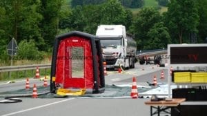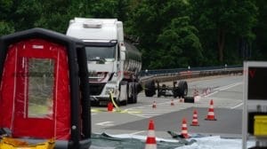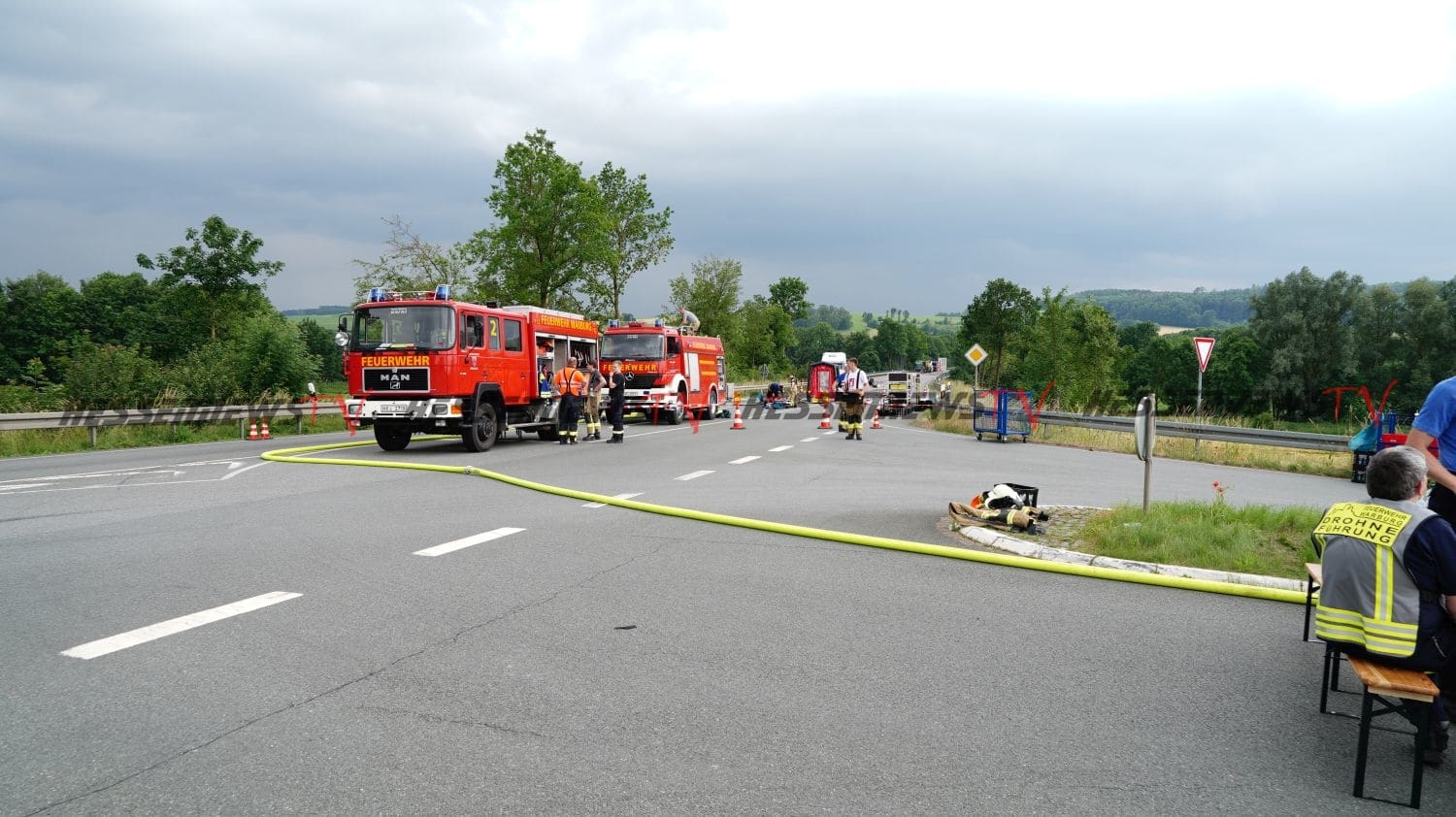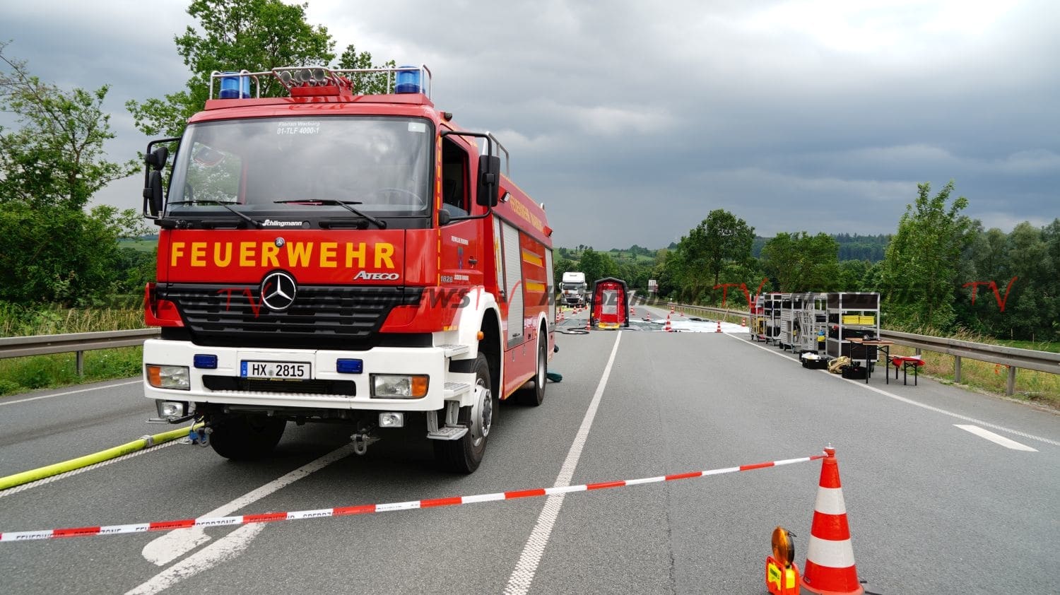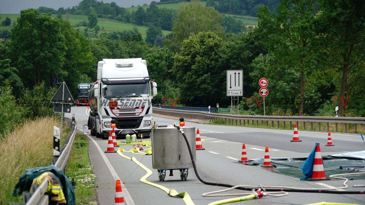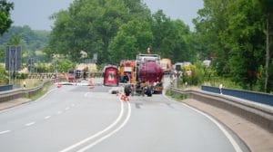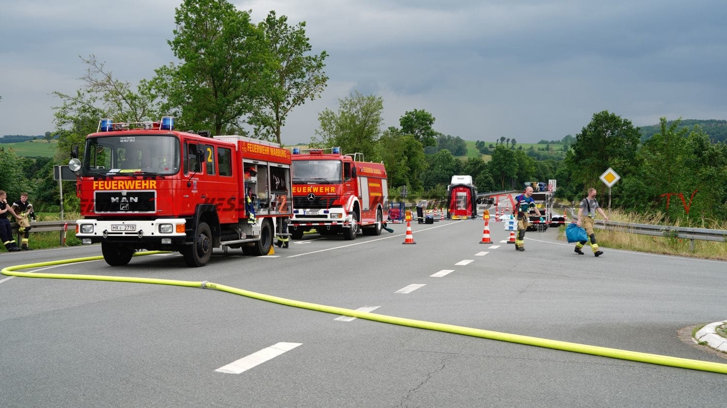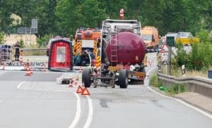B252: Gefahrguttransporter verliert Hinterachse – Werkfeuerwehr im Einsatz