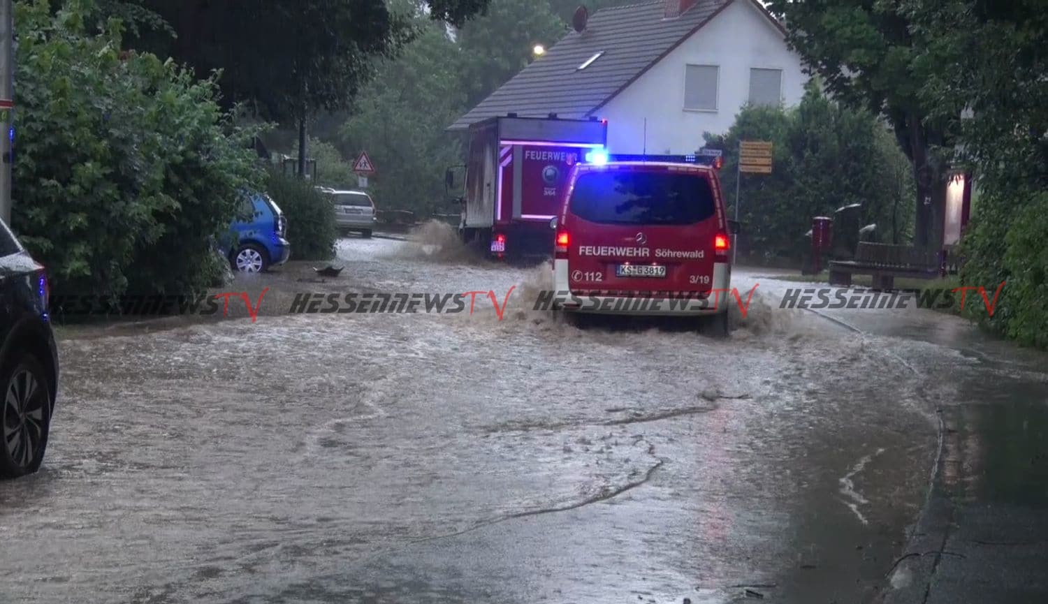 Nordhessen – Am Dienstagabend gegen 20 Uhr zogen schwere Unwetter über Söhrewald und Lohfelden. Schnell stiegen die Bäche an und die ersten Keller liefen voll. In Lohfelden-Vollmarshausen trat der Wahlebach über die Ufer. Mehrere Keller entlang des Baches liefen voll. Auch ein Discounter war betroffen. Straßen waren zeitweise unpassierbar. Die Feuerwehr aus Helsa und Kaufungen wurden zur Unterstützung nach Lohfelden alarmiert. Bis spät in die Nacht waren die freiwilligen Helfer im Einsatz. Im Video berichten Augenzeugen, was sie erlebt haben: