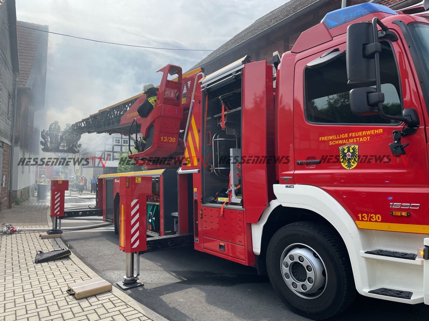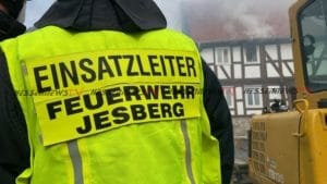 Schwierigkeiten bereitete den Brandschützern die große Hitze im Gebäude. So war ein vordringen bis ins Dachgeschoss zunächst nicht möglich. Mehrere Atemschutztrupps für den Innen- und Außenangriff, sowie eine Drehleiter, waren nötig, um den Brand letztendlich unter Kontrolle zu bekommen. Zeitgleich wurde das Gebäude von außen belüftet. Ein Feuerwehrmann stürzte im Gebäude eine Treppe hinunter und blieb glücklicherweise unverletzt. der Mann konnte nach einer kurzen ambulanten Behandlung durch den Rettungsdienst seine Arbeit fortsetzen. Die Brandursache sowie die Schadenshöhe konnte vor Ort nicht abschließend ermittelt werden. Das Gebäude ist nicht mehr bewohnbar. Noch während des Feuerwehreinsatzes organisierte Jesbergs Bürgermeister Heiko Manz eine Unterkunft für die betroffenen Bewohner. Unter der Einsatzleitung von André Priester waren 65 Einsatzkräfte der Feuerwehr, Kreisbrandmeister Björn Nöchel, eine Rettungswagenbesatzung sowie die Polizei Schwalmstadt und ein Brandursachenermittler der Kripo Homberg im Einsatz. Zur Überprüfung der Statik wurde zudem noch ein Fachberater des THW hinzugezogen. (mpu)