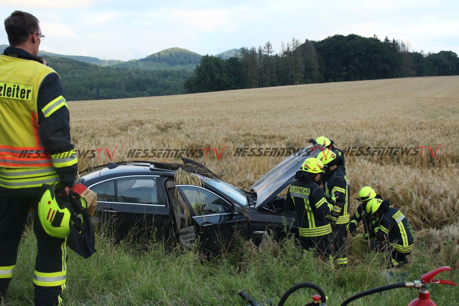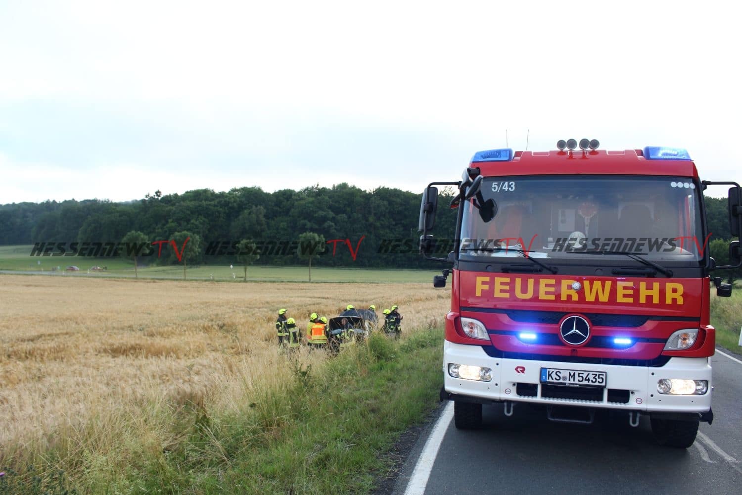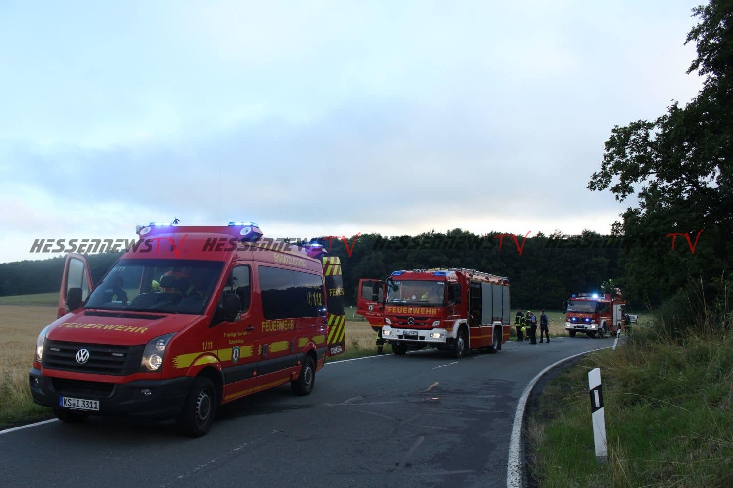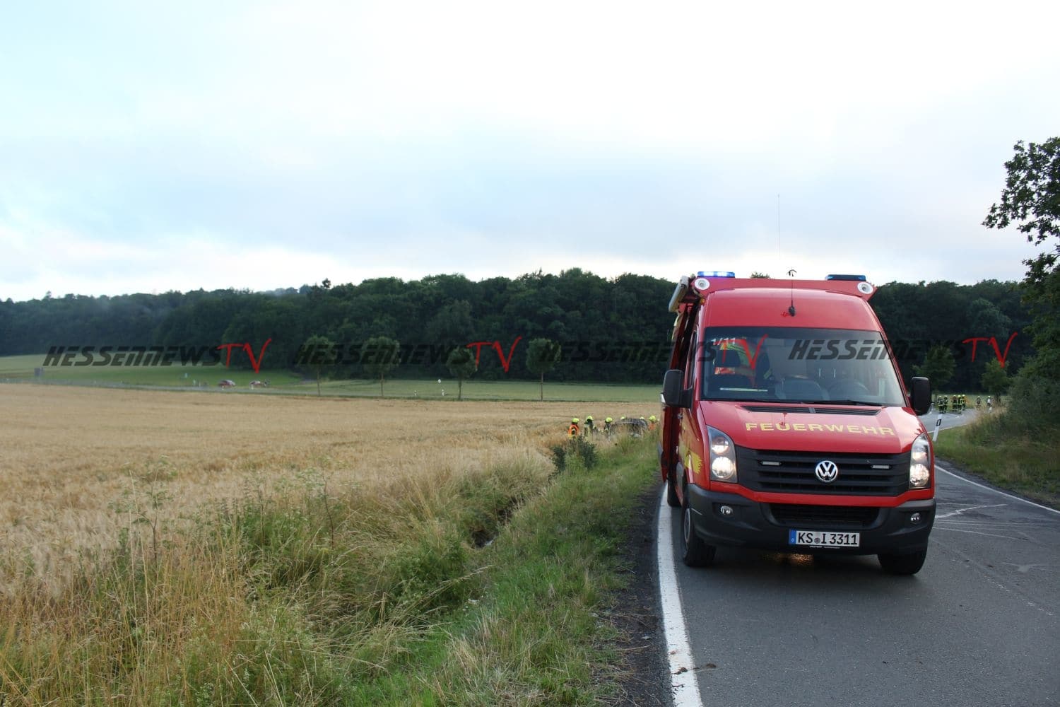 Schauenburg − Zu einem Verkehrsunfall mit eingeklemmter Person kam es am Sonntag Abend gegen 20 Uhr auf der K26 bei Schauenburg−Elmshagen. Nach ersten Erkenntnissen kam der Fahrer eines BMW in einer rechts Kurve von der Fahrbahn ab und kam auf einem angrenzenden Feld auf dem Dach zum liegen. Beim eintreffen der Einsatzkräfte war der Fahrer durch Ersthelfer bereits befreit und wurde an dem Rettungsdienst übergeben. Die Straße war kurzzeitig in beide Fahrtrichtungen Vollgesperrt. Der Einsatz war für die Feuerwehr nach rund 1,5 Stunden beendet und wurde an die Polizei übergeben. Im Einsatz war die Feuerwehr Elmshagen, Breitenbach, Martinhagen und Hoof mit rund 35 Einsatzkräften sowie die Polizei, zwei Rettungswagen und ein Notarzt.