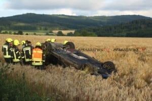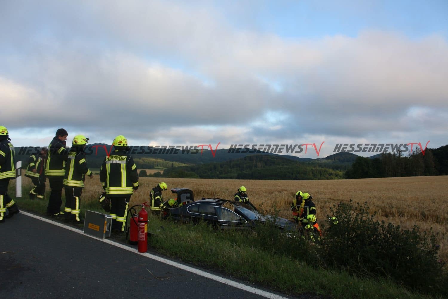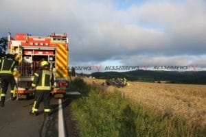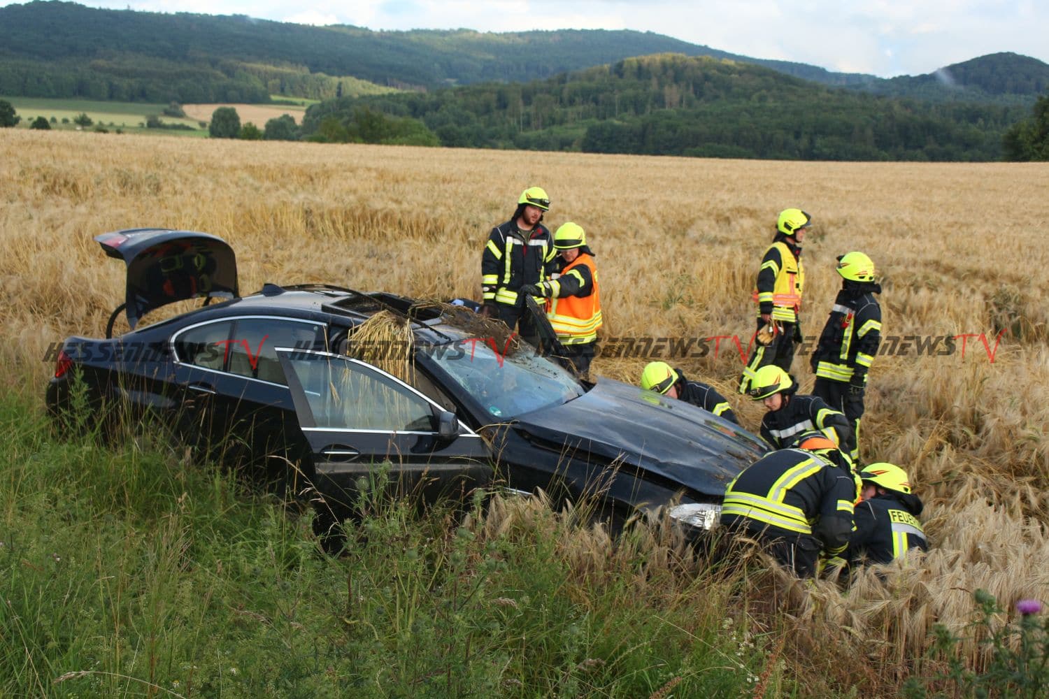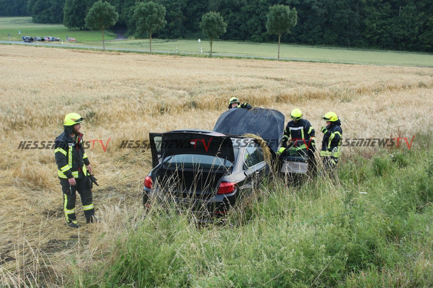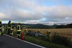 Schauenburg − Zu einem Verkehrsunfall mit eingeklemmter Person kam es am Sonntag Abend gegen 20 Uhr auf der K26 bei Schauenburg−Elmshagen. Nach ersten Erkenntnissen kam der Fahrer eines BMW in einer rechts Kurve von der Fahrbahn ab und kam auf einem angrenzenden Feld auf dem Dach zum liegen. Beim eintreffen der Einsatzkräfte war der Fahrer durch Ersthelfer bereits befreit und wurde an dem Rettungsdienst übergeben. Die Straße war kurzzeitig in beide Fahrtrichtungen Vollgesperrt. Der Einsatz war für die Feuerwehr nach rund 1,5 Stunden beendet und wurde an die Polizei übergeben. Im Einsatz war die Feuerwehr Elmshagen, Breitenbach, Martinhagen und Hoof mit rund 35 Einsatzkräften sowie die Polizei, zwei Rettungswagen und ein Notarzt.