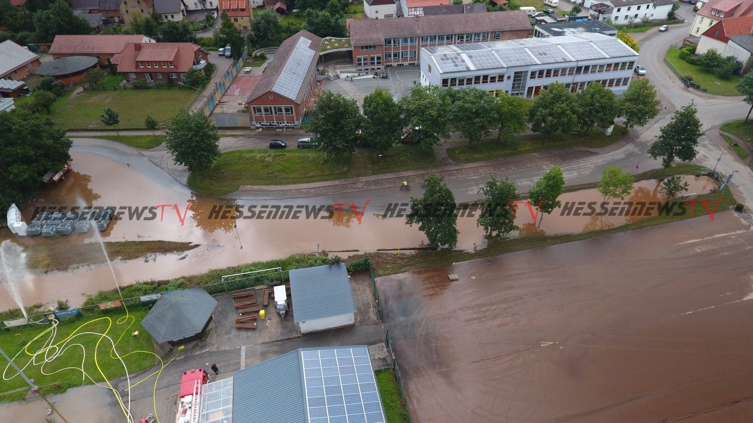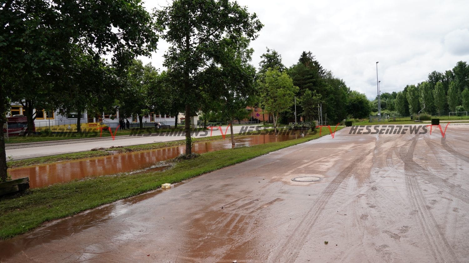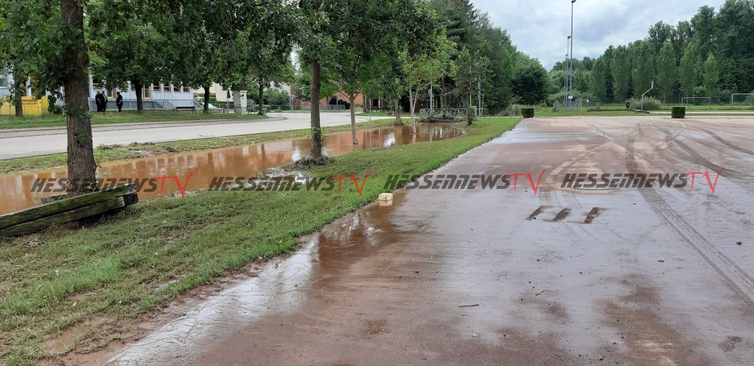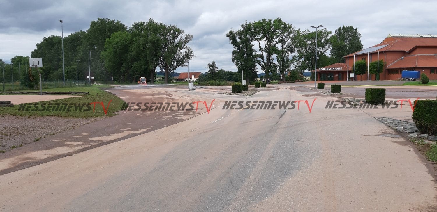 Volkmarsen – Nach dem Hochwasser folgt nun das aufräumen. Wo noch vor zwei Tagen ein riesiger See vor der Nordhessen Halle war, ist jetzt alles voller Schlamm. Auch in der Grundschule gegenüber ist die Feuerwehr im Einsatz, um den Keller leer zu pumpen. Das Vereinsheim neben dem Sportplatz hat es ebenfalls getroffen, jedoch kann hier erst abgepumpt werden, wenn das Wasser auf dem Sportplatz weg ist. Louisa Salokat ist Anwohnerin in der Schulstraße und berichtet im nachfolgenden Video gegenüber Hessennews.TV, wie Sie die letzten Stunden erlebt hat: