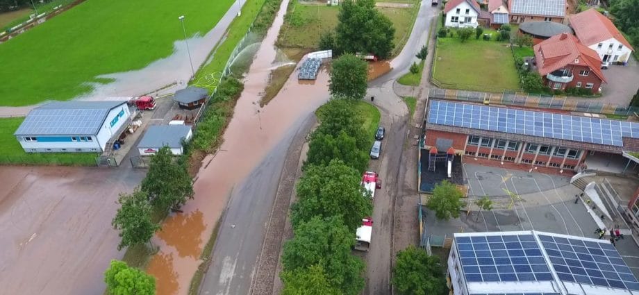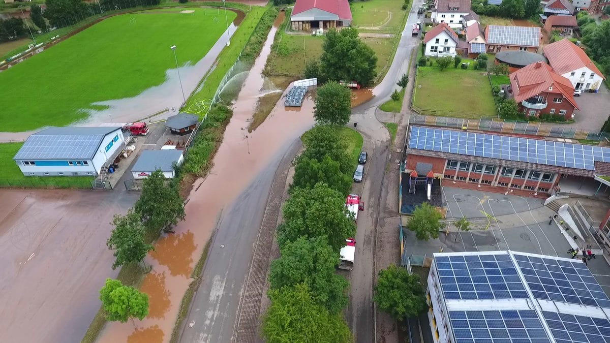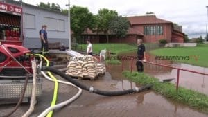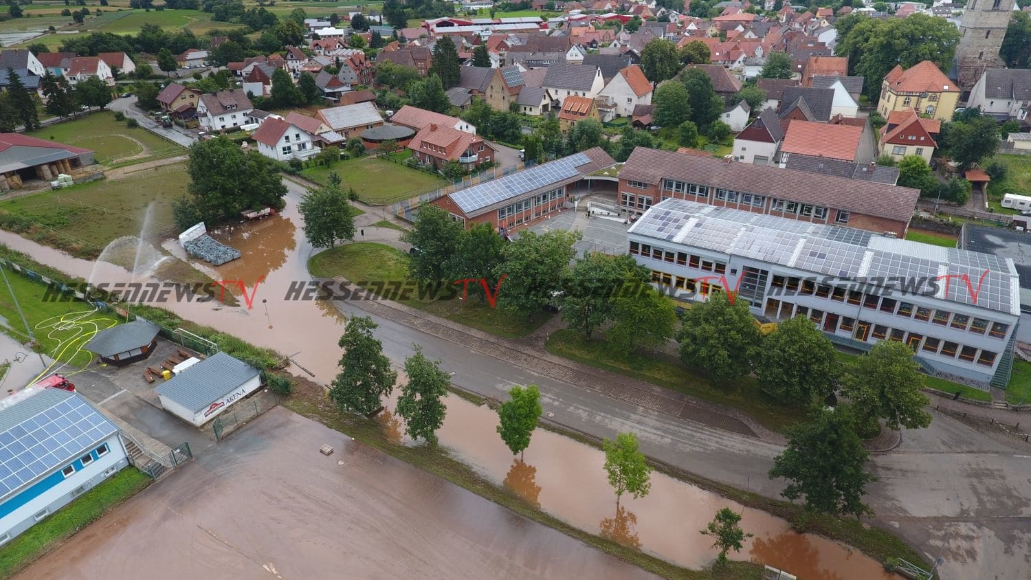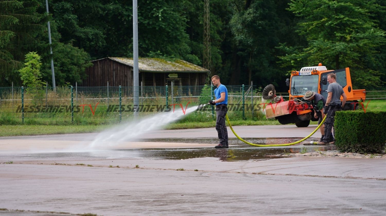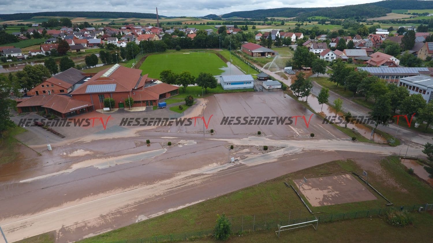 Volkmarsen – Nach dem Hochwasser folgt nun das aufräumen. Wo noch vor zwei Tagen ein riesiger See vor der Nordhessen Halle war, ist jetzt alles voller Schlamm. Auch in der Grundschule gegenüber ist die Feuerwehr im Einsatz, um den Keller leer zu pumpen. Das Vereinsheim neben dem Sportplatz hat es ebenfalls getroffen, jedoch kann hier erst abgepumpt werden, wenn das Wasser auf dem Sportplatz weg ist. Louisa Salokat ist Anwohnerin in der Schulstraße und berichtet im nachfolgenden Video gegenüber Hessennews.TV, wie Sie die letzten Stunden erlebt hat: