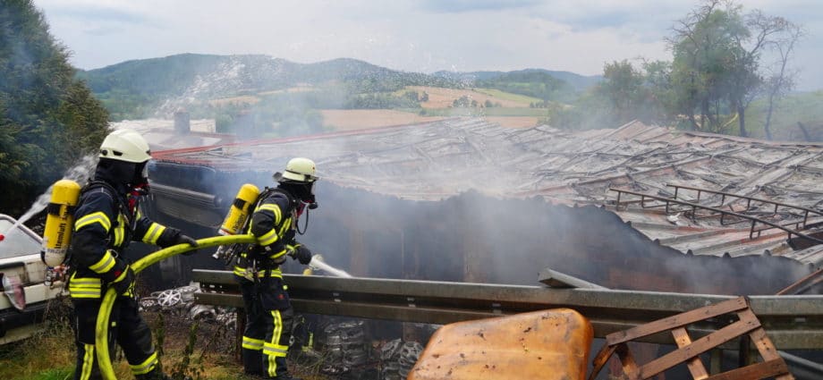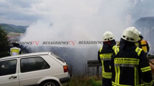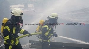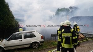Witzenhausen – Am Dienstag kam es zu einem Brand in einer Werkstatthalle in Witzenhausen. Aus noch ungeklärter Ursache geriet die Halle, in der sich auch Fahrzeuge befinden, in Vollbrand. Das Feuer schlug dann auf das direkt angrenzende Wohnhaus über und beschädigte dort den Dachstuhl. Die Brandbekämpfer der Freiwilligen Feuerwehren aus Witzenhausen und Ortsteilen werden unterstützt durch eine Drehleiter aus Bad Sooden-Allendorf sowie Geräte- und Atemschutzausstattung aus Eschwege. Personen wurden nicht verletzt. Für den Einsatz war die Mündener Straße voll gesperrt. Der Sachschaden wird zwischen 350.000 Euro und 400.000 Euro geschätzt.