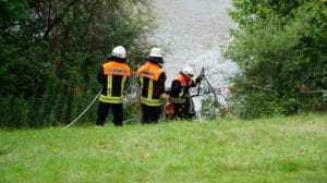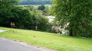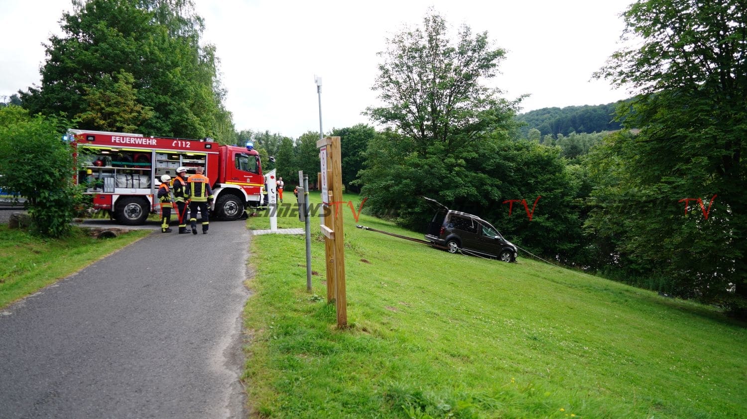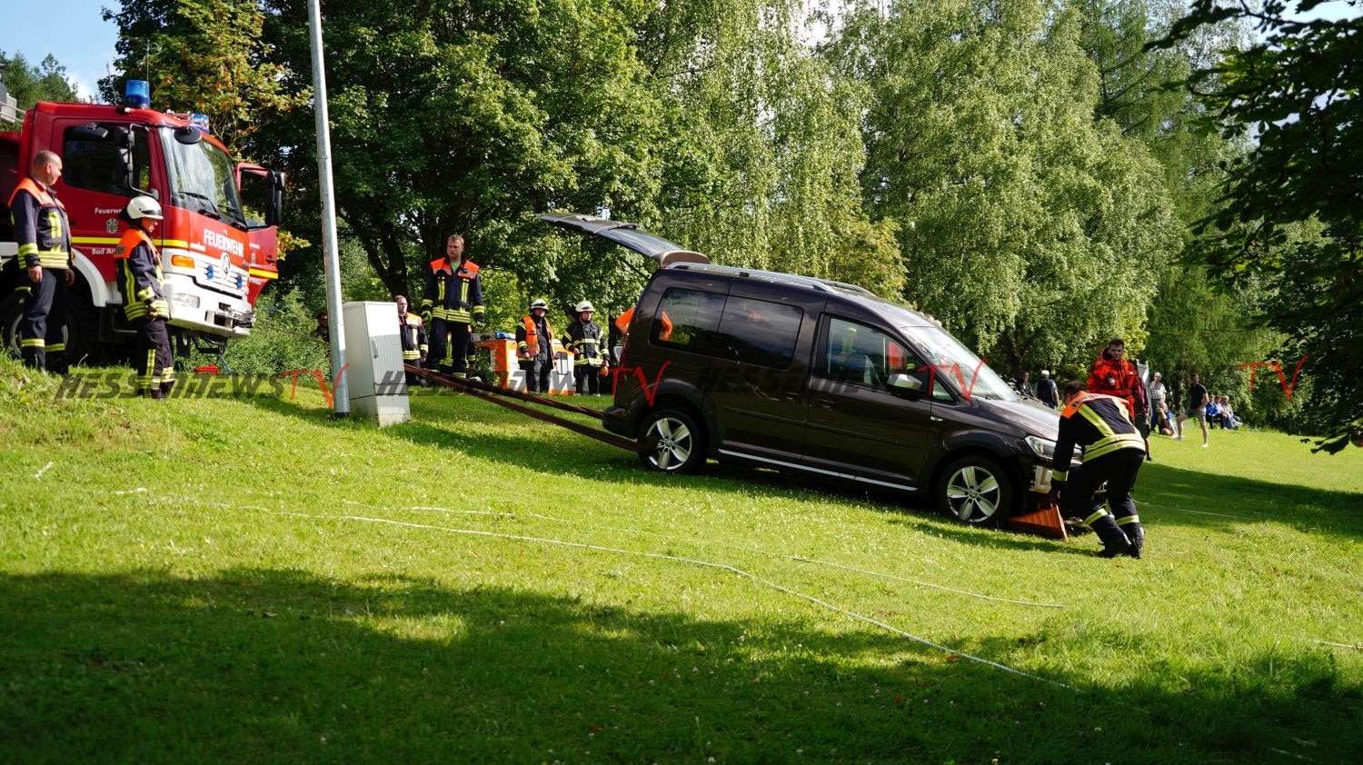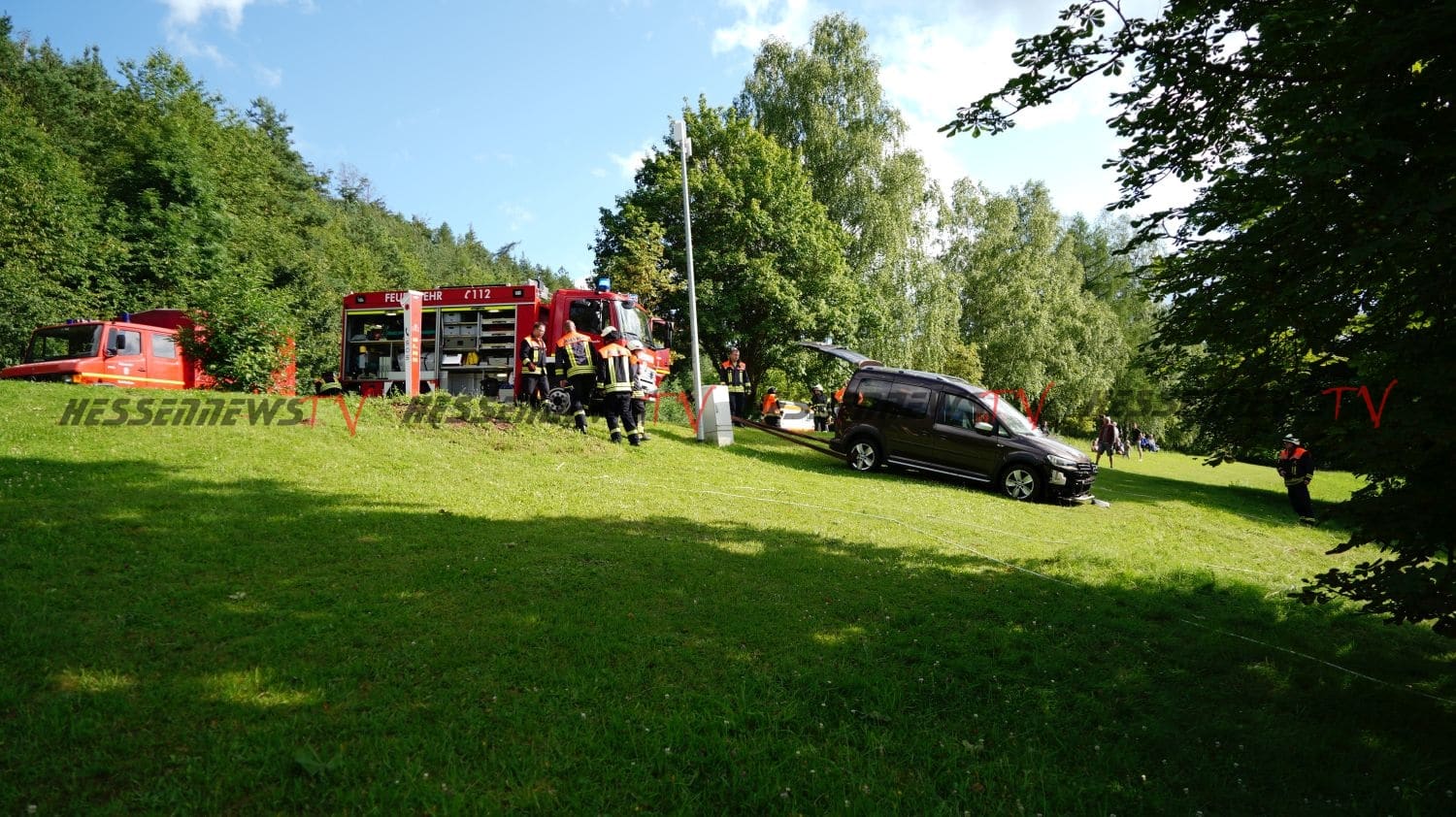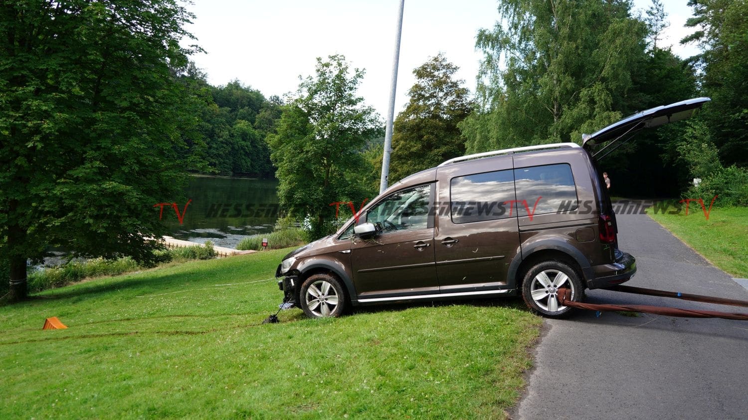 Bad Arolsen – Am Twistesee kam es am Mittwochnachmittag zu einem Großeinsatz. Augenzeugen meldeten gegen 16.40 Uhr, das ein PKW vom Parkplatz nahe der B450 in den Twistesee gerollt ist. Unklar war, ob sich noch Personen im Fahrzeug aufhielten. Daraufhin hat die Leitstelle Vollalarm ausgelöst. Neben der Feuerwehr war auch die DLRG mit drei Booten im Einsatz. Schnell konnte Entwarnung gegeben werden. Nach dem das Fahrzeug, was zu 2/3 im Wasser war, kontrolliert wurde, konnten keine Personen im PKW festgestellt werden. Das Fahrzeug wurde gesichert und mit einer Seilwinde aus dem See herausgezogen. Laut Polizei, war kein Gang eingelegt. Auch die Handbremse war nur leicht angezogen. Der Halter selbst hat von dem Einsatz nichts mitbekommen, er war wohl noch am See spazieren. Im Einsatz war die Feuerwehr mit 35 Einsatzkräften.
