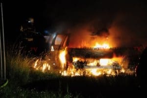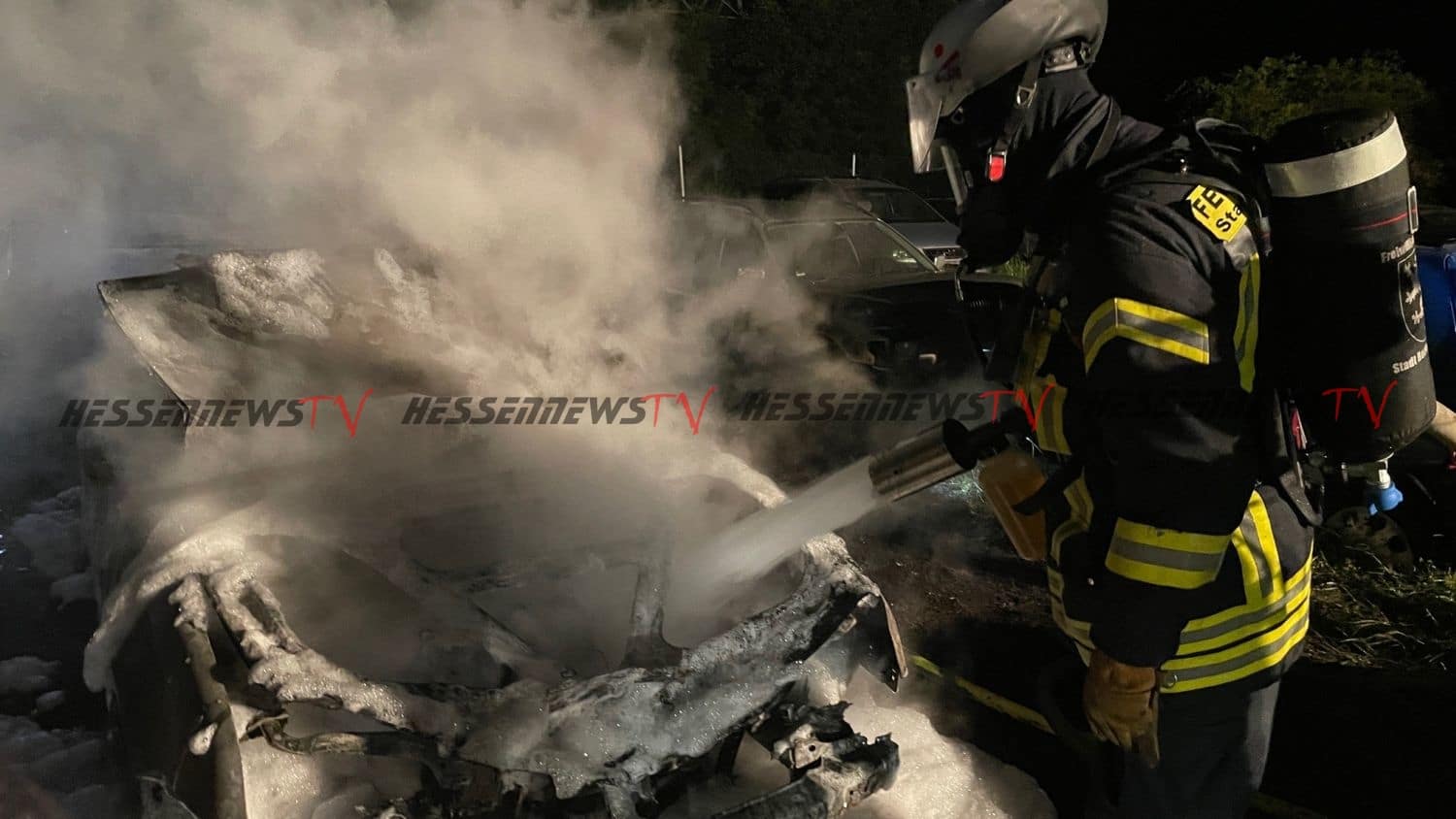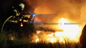 Borken – Zu einem Brand mit insgesamt drei Fahrzeugen, kam es am frühen Donnerstagmorgen auf dem Gelände des alten Kraftwerkes in Borken. Unklar bleibt zunächst die Ursache. Brandstiftung konnte vor Ort nicht ausgeschlossen werden. Drei auf dem Kraftwerksgelände abgestellte Schrottautos gerieten am frühen Donnerstagmorgen gegen 00:45 Uhr aus bislang ungeklärten Umständen in Brand. Als die ersten Einsatzkräfte eintrafen, standen die Fahrzeuge, welche sich in einem umzäunten Bereich befanden, bereits in Vollbrand. Atemschutzgeräteträger der Feuerwehr Borken hatten das Feuer schnell unter Kontrolle. Mit Wasser und Löschschaum bekämpften die Kameraden die Brände und verhinderten so eine Ausbreitung auf weitere Fahrzeuge. Aufgrund der enormen Hitze wurden die ausgebrannten Fahrzeuge im Verlauf mit der Wärmebildkamera auf weitere Glutnester kontrolliert. Neben der Polizei und einem Rettungswagen waren insgesamt 36 Einsatzkräfte der Feuerwehren Borken, Kleinenglis und Bad Zwesten vor Ort im Einsatz. Die Einsatzleitung hatte der erst vor vier Wochen neu ins Amt gewählte Stadtbrandinspektor Alexander Wilhelm. Die Höhe des Sachschadens sowie die Brandursache konnte vor Ort nicht abschließend geklärt werden. (mpu)