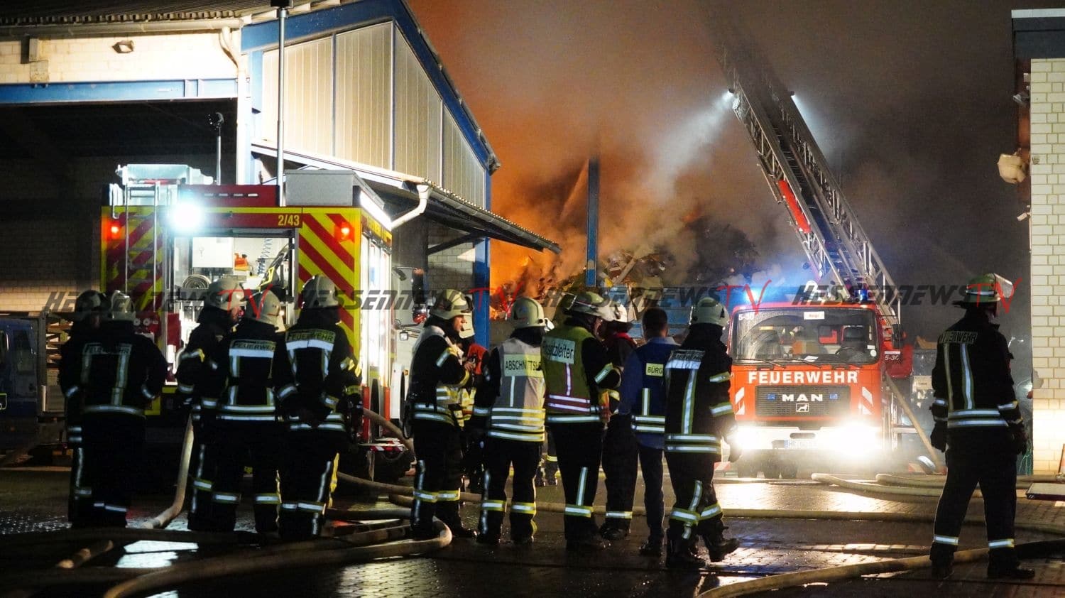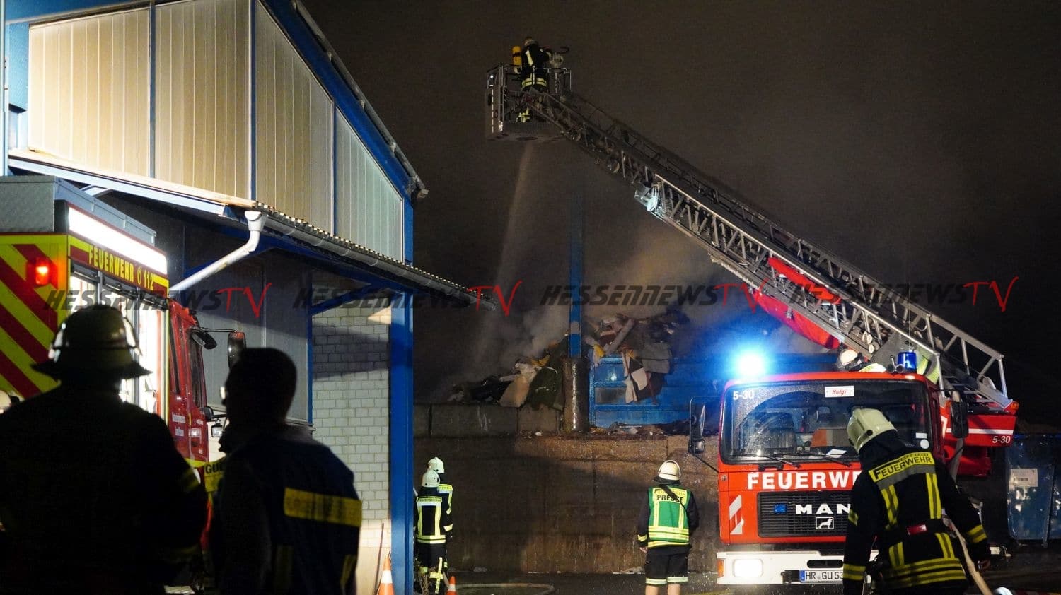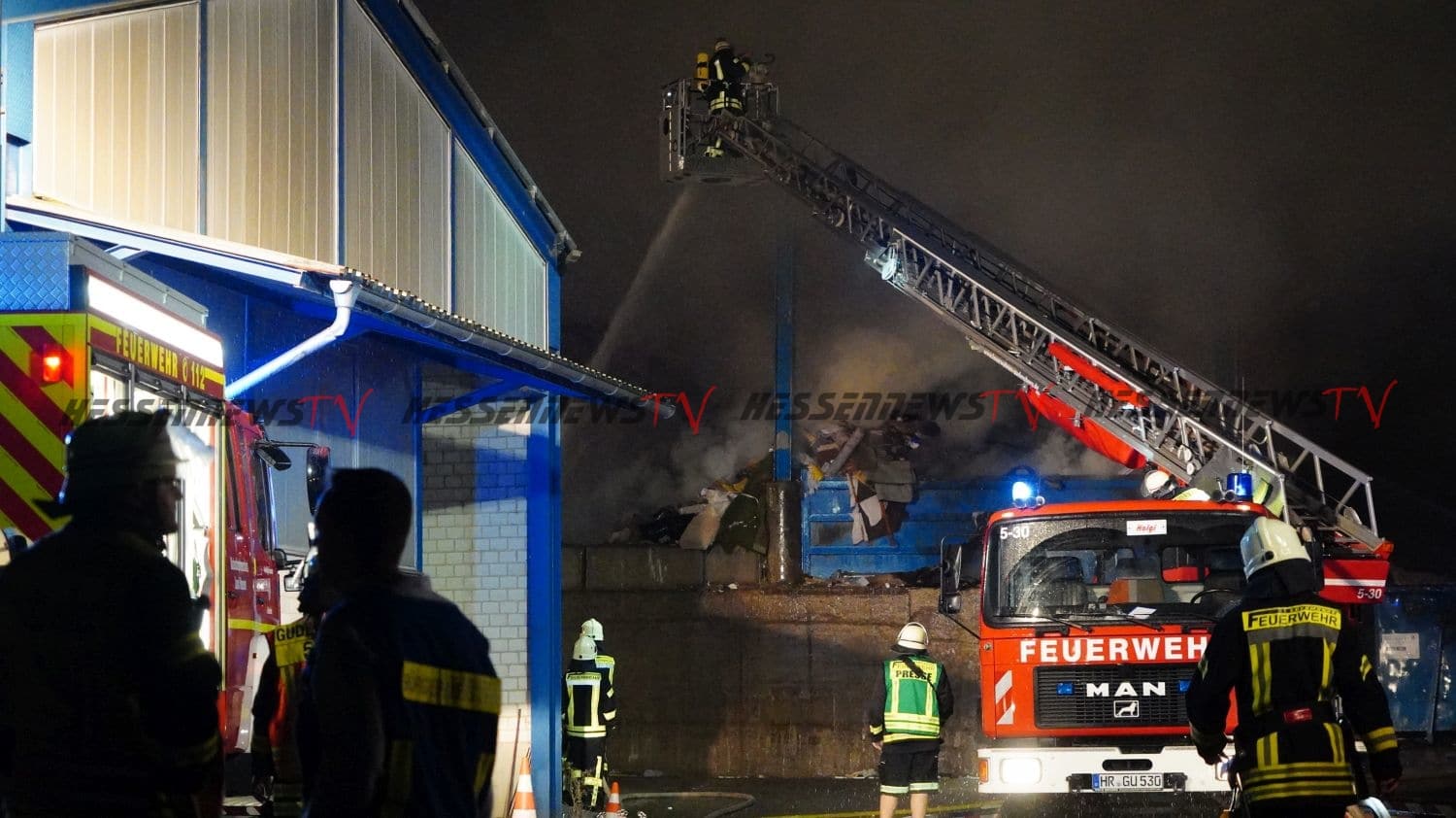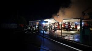 Edermünde – Auf dem Gelände eines Unternehmens für Abfallentsorgung in Edermünde- Grifte, ist es am Sonntagabend gegen 22.20 Uhr zu einem Brand gekommen. Beim eintreffen der Feuerwehr, stand eine Lagerhalle, in der sich diverse Abfälle und mehrere Arbeitsmaschinen befinden, in Flammen. Rund 100 Einsatzkräfte sind im Einsatz. Aufgrund der starken Rauchentwicklung werden Anwohner im Bereich der Ortsteile Grifte und Haldorf gebeten, Fenster und Türen geschlossen zu halten. Betroffen ist auch die A7 im Bereich der Anschlussstelle Guxhagen. Verkehrsteilnehmer wurden per Rundfunkwarnmeldung gewarnt. Die Löscharbeiten werden aller Voraussicht nach noch über einen längeren Zeitraum andauern. Nach derzeitigem Kenntnisstand wurde eine Person beim Versuch, eine Arbeitsmaschine vor dem Feuer zu retten, leicht verletzt.