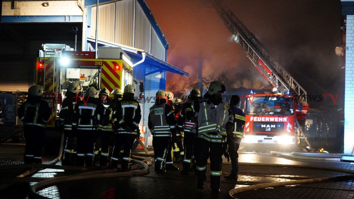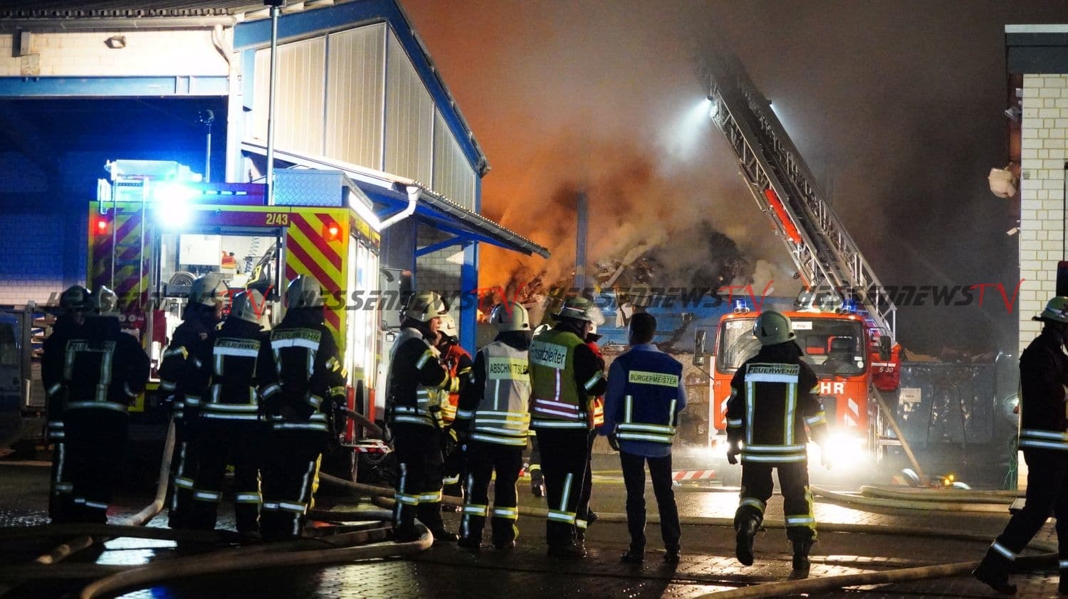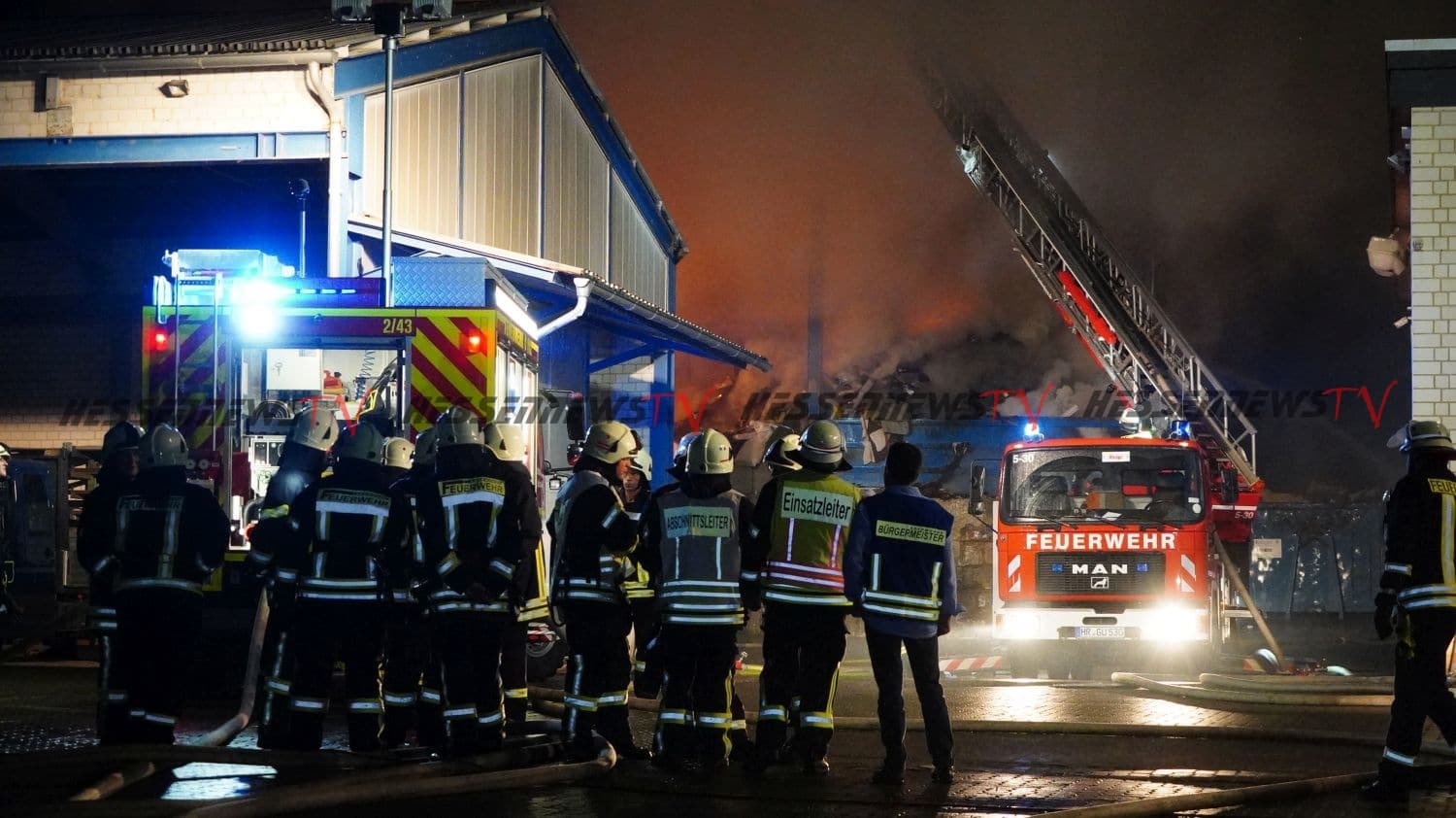 Edermünde – Auf dem Gelände eines Unternehmens für Abfallentsorgung in Edermünde- Grifte, ist es am Sonntagabend gegen 22.20 Uhr zu einem Brand gekommen. Beim eintreffen der Feuerwehr, stand eine Lagerhalle, in der sich diverse Abfälle und mehrere Arbeitsmaschinen befinden, in Flammen. Rund 100 Einsatzkräfte sind im Einsatz. Aufgrund der starken Rauchentwicklung werden Anwohner im Bereich der Ortsteile Grifte und Haldorf gebeten, Fenster und Türen geschlossen zu halten. Betroffen ist auch die A7 im Bereich der Anschlussstelle Guxhagen. Verkehrsteilnehmer wurden per Rundfunkwarnmeldung gewarnt. Die Löscharbeiten werden aller Voraussicht nach noch über einen längeren Zeitraum andauern. Nach derzeitigem Kenntnisstand wurde eine Person beim Versuch, eine Arbeitsmaschine vor dem Feuer zu retten, leicht verletzt.
