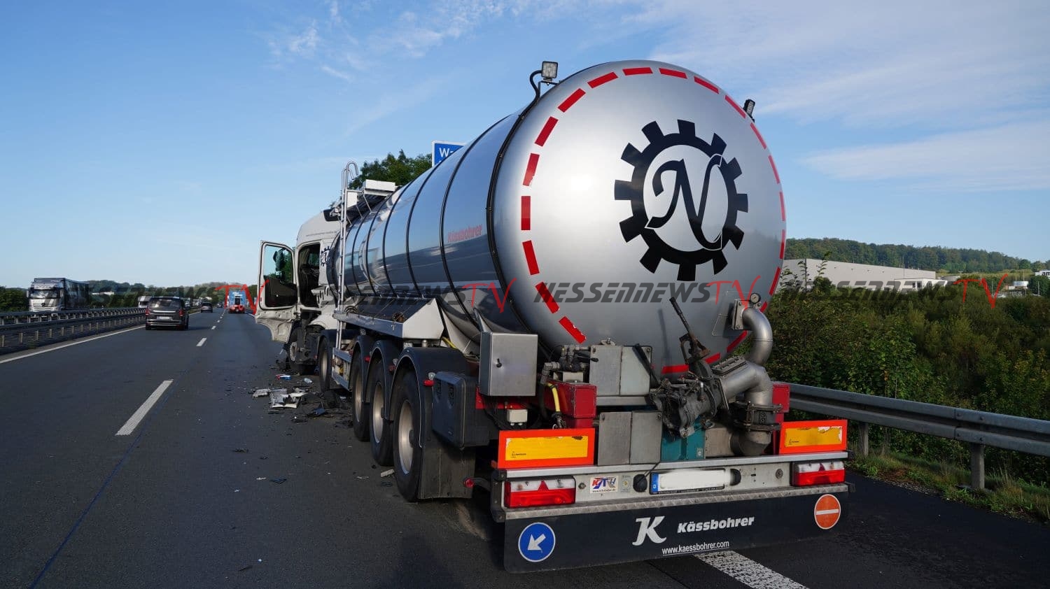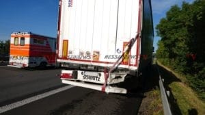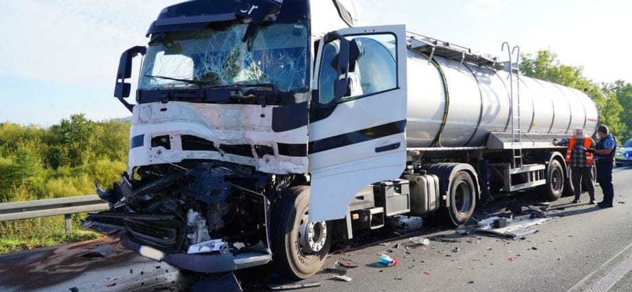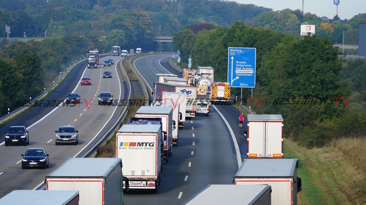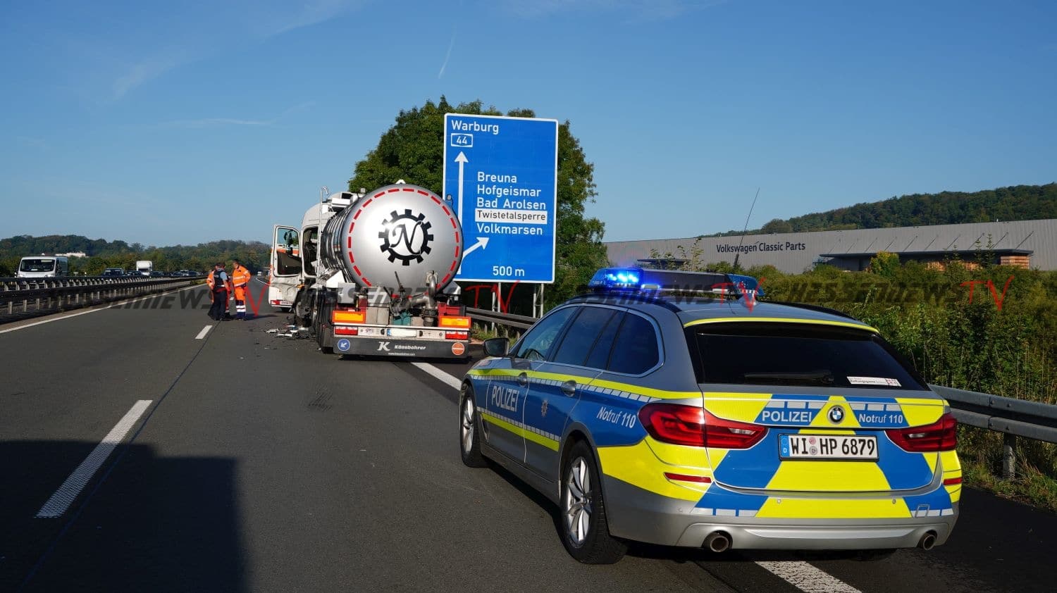 Breuna – Auf der A44 kam es am Dienstagmorgen zu einem LKW Auffahrunfall. Der Fahrer eines Silo-LKW befuhr die Autobahn in Fahrtrichtung Dortmund. Gegen 08.40 Uhr fuhr der Fahrer rund 500 Meter vor der Anschlussstelle Breuna den vorrausfahrenden LKW auf. Der Fahrer wurde nicht eingeklemmt, wurde aber vorsorglich in ein Krankenhaus eingeliefert. Der andere LKW-Fahrer blieb unverletzt. Wie es zu dem Verkehrsunfall kam, ist unklar. Die alarmierte Feuerwehr Breuna sicherte die Unfallstelle ab und streute auslaufende Betriebsstoffe ab. Da man erst von einem LKW-Unfall mit eingeklemmter Person ausging, wurde auch die Berufsfeuerwehr Kassel mit Kran, sowie die Feuerwehr Wolfhagen mit alarmiert. Sie konnten aber die Alarmfahrt abbrechen. Die Autobahn war für rund 45 Min. voll gesperrt. Es staute sich auf mehrere Kilometer zurück. Der Sachschaden wird auf 63.000 Euro geschätzt.