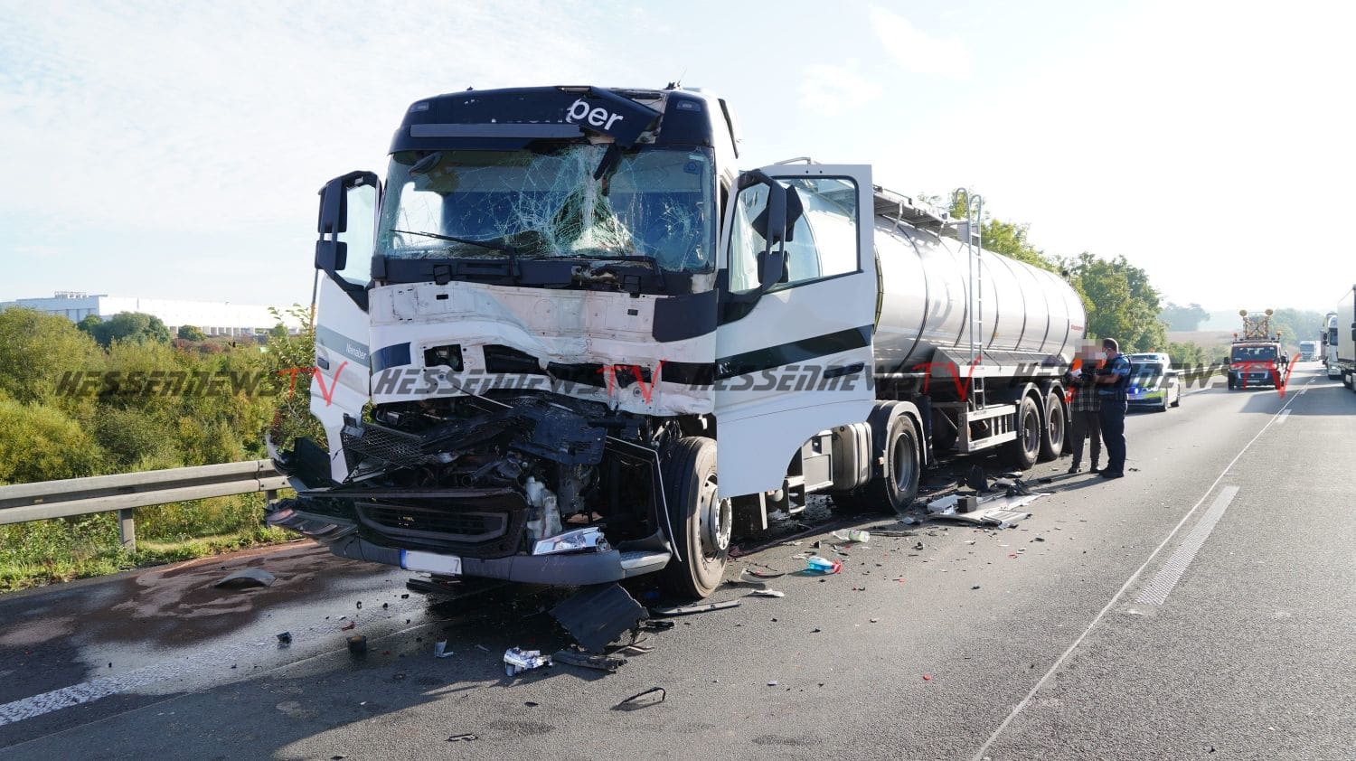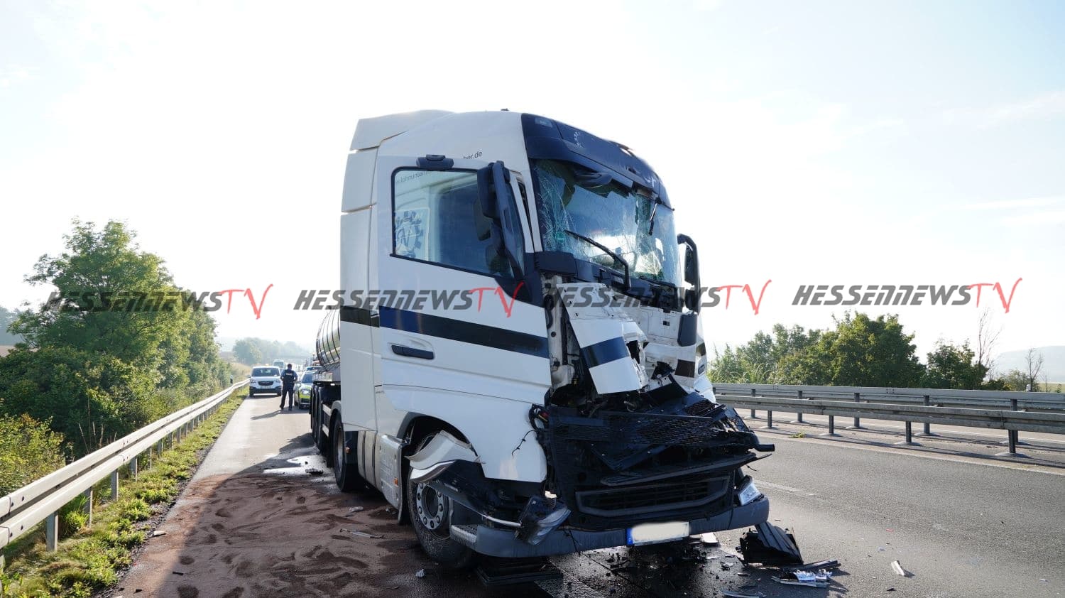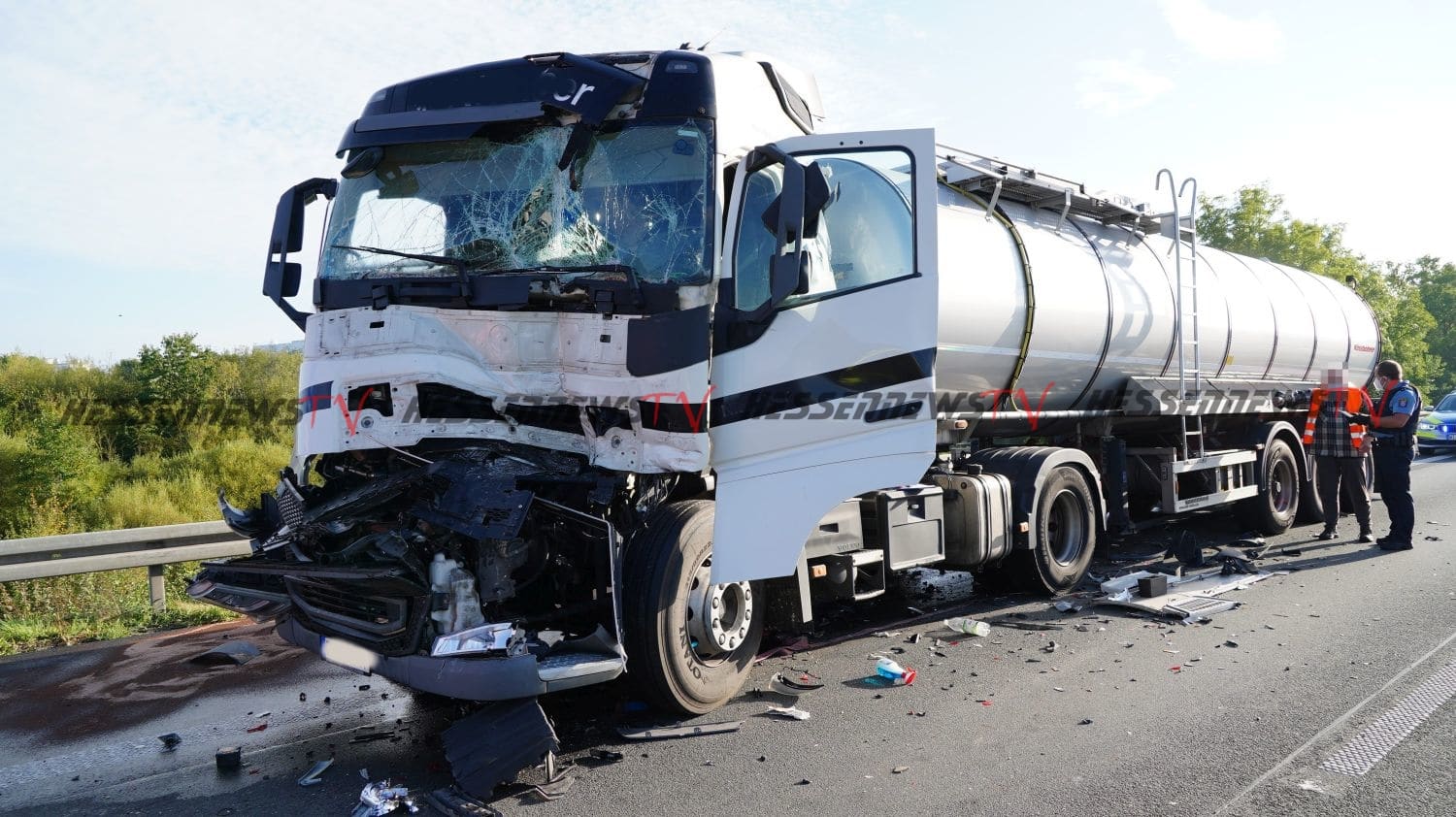 Breuna – Auf der A44 kam es am Dienstagmorgen zu einem LKW Auffahrunfall. Der Fahrer eines Silo-LKW befuhr die Autobahn in Fahrtrichtung Dortmund. Gegen 08.40 Uhr fuhr der Fahrer rund 500 Meter vor der Anschlussstelle Breuna den vorrausfahrenden LKW auf. Der Fahrer wurde nicht eingeklemmt, wurde aber vorsorglich in ein Krankenhaus eingeliefert. Der andere LKW-Fahrer blieb unverletzt. Wie es zu dem Verkehrsunfall kam, ist unklar. Die alarmierte Feuerwehr Breuna sicherte die Unfallstelle ab und streute auslaufende Betriebsstoffe ab. Da man erst von einem LKW-Unfall mit eingeklemmter Person ausging, wurde auch die Berufsfeuerwehr Kassel mit Kran, sowie die Feuerwehr Wolfhagen mit alarmiert. Sie konnten aber die Alarmfahrt abbrechen. Die Autobahn war für rund 45 Min. voll gesperrt. Es staute sich auf mehrere Kilometer zurück. Der Sachschaden wird auf 63.000 Euro geschätzt.