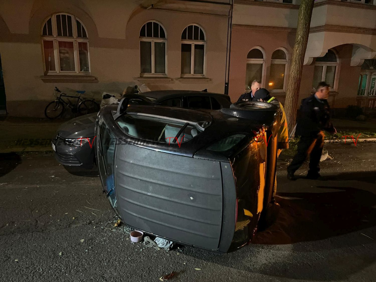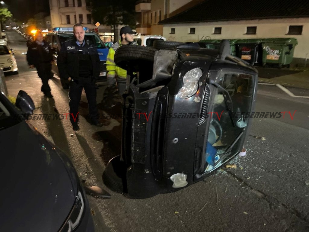 Kassel – Eine Trunkenheitsfahrt mit rund 2,3 Promille endete in der Nacht zum Mittwoch in der Elfbuchenstraße mit einem Unfall und einem umgekippten Auto. Wie die gegen 23:40 Uhr von Anwohnern zur Unfallstelle in der Elfbuchenstraße gerufene Polizeistreife berichtet, lag ein Smart beim Eintreffen auf der Seite. Die 30-Jährige Fahrerin hatte das Auto nach dem Unfall mit leichten Verletzungen noch selbstständig verlassen können. Da die Beamten Alkoholgeruch bei ihr feststellten, überprüften sie ihre Fahrtüchtigkeit. Dabei ergab ein Atemalkoholtest rund 2,3 Promille. Die Ermittlungen zum Unfallhergang ergaben, dass die Frau mit dem Smart die Elfbuchenstraße von der Dörnbergstraße kommend in Richtung Breitscheidstraße befahren hatten. Vermutlich aufgrund ihrer Alkoholisierung war sie in Höhe der Hausnummer 22a nach rechts von der Fahrbahn abgekommen und dort gegen einen Baumschutz aus Metall gefahren. Anschließend touchierte sie mit ihrem Smart einen am rechten Fahrbahnrand geparkten VW Golf 8, woraufhin ihr Wagen auf die linke Seite kippte und liegen blieb. An dem Smart war ein Schaden von 5.000 Euro entstanden. Das Auto musste abgeschleppt werden. Der Golf war auf der linken Seite erheblich beschädigt worden. Dieser Schaden wir auf rund 10.000 Euro geschätzt. Gegen die Frau wird wegen Gefährdung des Straßenverkehrs ermittelt. Ihren Führerschein stellte die Polizei sicher. Zudem wurde ihr von einem Arzt eine Blutprobe entnommen.