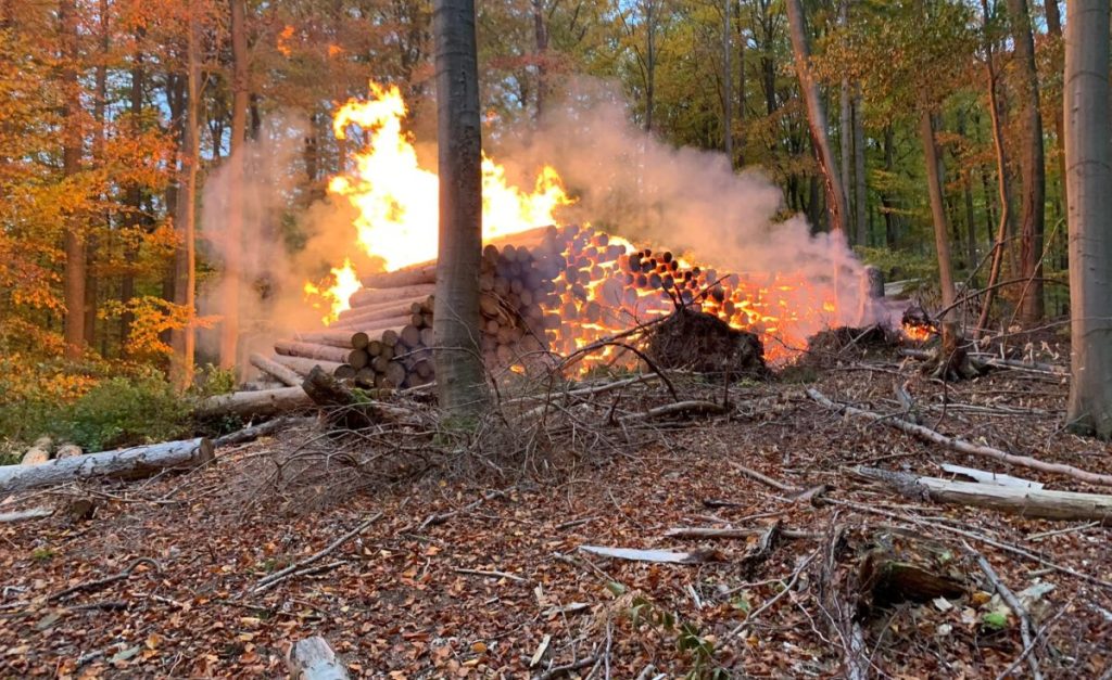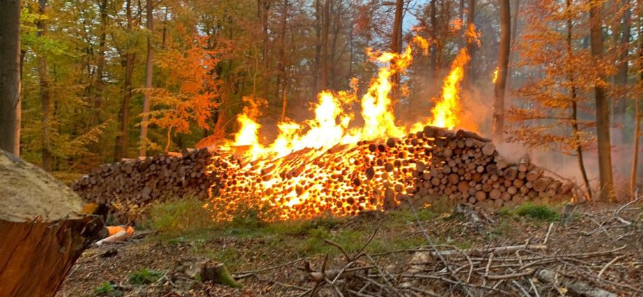 Wolfhagen – Erneut brannte es in einem Wald in Nordhessen. Am Samstag wurde die Feuerwehr gegen 16 Uhr in ein Waldstück bei Elmarshausen alarmiert. Als die ersten Einsatzkräfte vor Ort waren, brannte ein kleiner Holzstapel von rund 10 Metern Breite und 2 Metern Höhe. Das Feuer war schnell unter Kontrolle. Die Baumstämme wurden per Hand auseinandergenommen und die letzten Glutnester konnten abgelöscht werden. Der Einsatz war gegen 16.45 Uhr beendet.