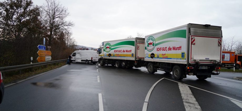Witzenhausen – Gegen 07:15 Uhr ereignete sich am Donnerstagmorgen ein Unfall zwischen einem Lkw und einem Kleintransporter im Bereich der B 27/ B 80 in der Gemarkung von Witzenhausen. Der Transporter besetzt mit zwei Personen wollte von Witzenhausen B80 auf die B27 in Fahrtrichtung Göttingen einbiegen. Dabei übersah der Fahrer einen LKW der von der B27 aus Göttingen kam. Es kam zum Zusammenstoß. Der Fahrer des Transporters wurde eingeklemmt und musste von der Feuerwehr befreit werden. Der Beifahrer sowie der LKW-Fahrer wurden schwer verletzt und nach einer Erstversorgung in ein Krankenhaus eingeliefert. Vermutlich erkannte der LKW-Fahrer die Situation sehr schnell und konnte seinen LKW rechtzeitig abbremsen um so schlimmeres zu verhindern. Die Unfallstelle war für rund zwei Stunden voll gesperrt.