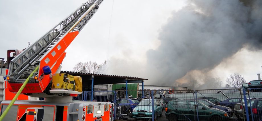 Kassel – Am Freitag gegen 13 Uhr kam es in der Lossestraße in Kassel-Bettenhausen zum Brand einer Firmenhalle. Bei dem betroffenen Gebäude handelt es sich um die Halle einer Autoverwertung. Die Löscharbeiten der Kasseler Feuerwehr dauern an. Der Brandort wurde weiträumig abgesperrt. In dem Brandobjekt haben sich keine Personen mehr aufgehalten. Zwei angrenzende Wohnhäuser mussten geräumt werden. Ein Anwohner erlitt eine Rauchgasintoxikation. Der Mann wurde durch einen Rettungswagen in ein Krankenhaus gebracht. Wegen des Einsatzes ist die Sandershäuser Straße zwischen Dresdener Straße und Agathofstraße derzeit gesperrt. Ortskundige werden gebeten, den Bereich zu umfahren. Zur Brandursache und zur Schadenshöhe können noch keine Angaben gemacht werden. Die weiteren Ermittlungen der Kriminalpolizei können erst nach Abschluss der Löscharbeiten an der Brandstelle erfolgen.