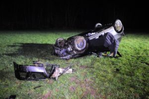 Jesberg – Auf der B3 zwischen Jesberg und Gilserberg, nur wenige Meter hinter dem Hofgut Richerode, kam es am Sonntagabend zu einem Verkehrsunfall bei dem zwei Personen Verletzt wurden. Ein weiterer Verkehrsteilnehmer blieb glücklicherweise unverletzt. Ein 19-jähriger Fahranfänger aus Kirchhain befuhr zunächst die Bundesstraße von Jesberg kommend in Richtung Marburg. In einer Rechtskurve, nur wenige Meter hinter Richerode, geriet der junge Mann aus bislang ungeklärten Umständen auf die Gegenfahrbahn und touchierte einen entgegenkommenden Verkehrsteilnehmer aus Borken. Der Kirchhainer verlor im Verlauf offenbar die Kontrolle über sein Fahrzeug, fuhr eine rund fünf Meter tiefe Böschung hinunter, schlug in einem Graben ein und kam rund 30 Meter weiter auf dem Dach liegend zum Stillstand.