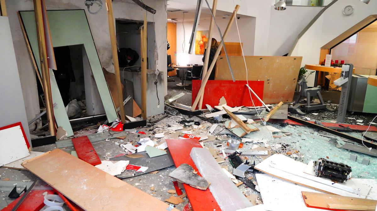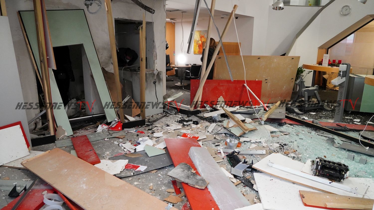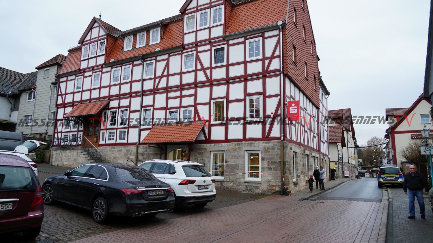 Guxhagen – In der Nacht von Dienstag auf Mittwoch haben unbekannte Täter ein Geldautomat einer Sparkassen-Filiale in der Untergasse in Guxhagen gesprengt. Die Täter sprengten den Geldautomaten kurz nach 2 Uhr morgens auf derzeit noch unbekannte Art und Weise. Hierbei wurde der Geldautomat komplett zerstört. Der integrierte Tresor blieb hierbei unversehrt, sodass die unbekannten Täter keine Beuten machten. Bei dem Gebäude handelt es sich um ein kombiniertes Wohn- und Geschäftsgebäude. Im Bereich des Erdgeschosses, der eigentlichen Bankfiliale, entstand erheblicher Sachschaden. Die rund 20 Bewohner des Gebäudes mussten kurzfristig das Gebäude verlassen, konnten aber nach einer Begutachtung eines Bausachverständigen des THW gegen 4 Uhr wieder zurück in ihre Wohnungen. Personen wurden keine verletzt. Am Gebäude entstand hoher Sachschaden, der nach ersten Schätzungen im unteren sechsstelligen Bereich liegt. Das Landeskriminalamt sowie die Kriminalpolizei waren am Einsatzort und haben die Ermittlungen aufgenommen. Laut Zeugen flüchteten nach der Tat zwei unbekannte Täter mit einem dunkelfarbenen Audi vom Tatort. Hinweis an die Kriminalpolizei in Homberg unter Tel.: 05681/774-0.