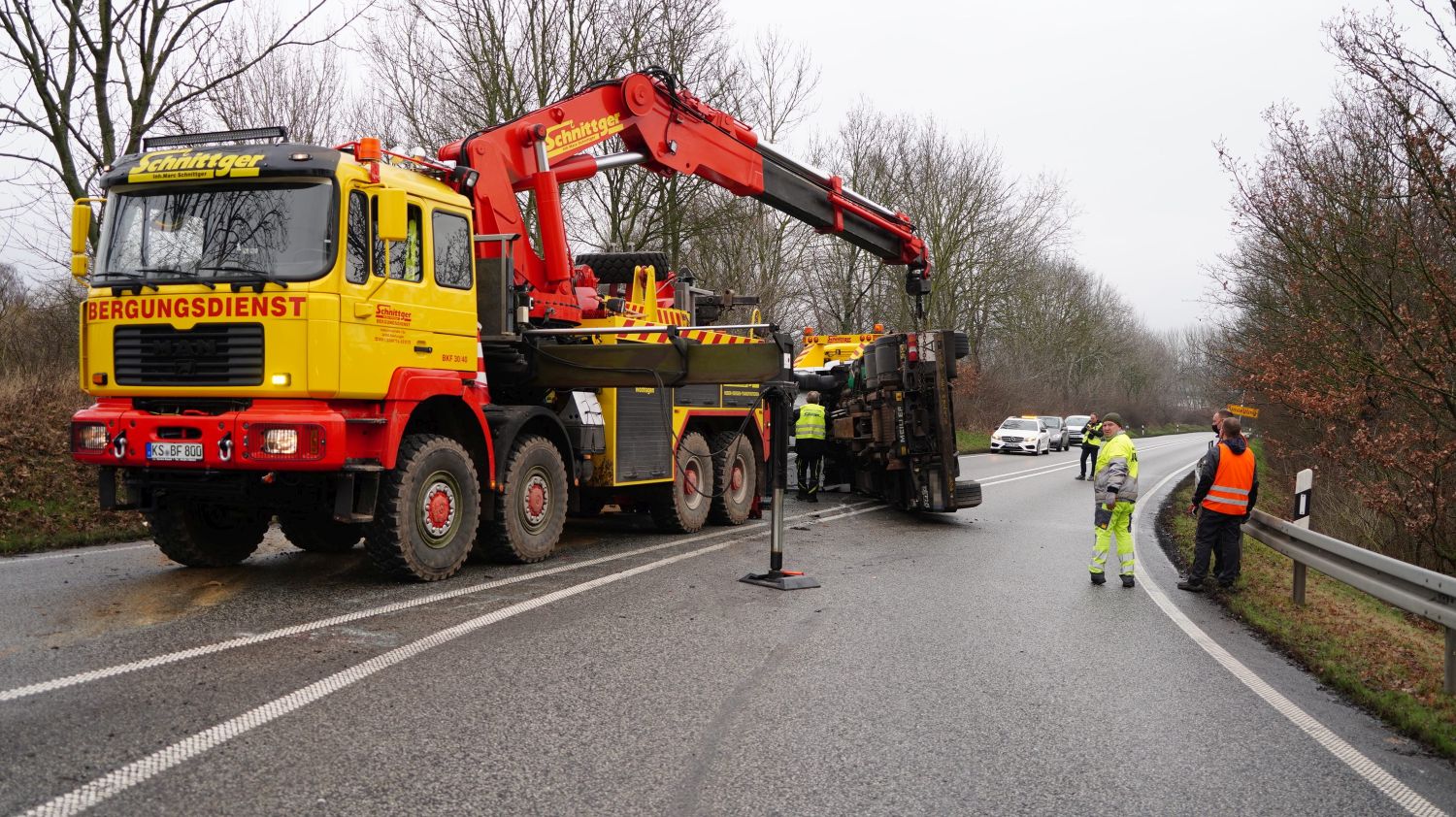 LKW kippt in A49 Ausfahrt um – PKW-Fahrer musste ausweichen