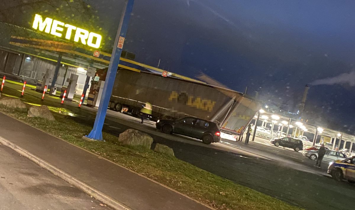 Kassel – Zu einem außergewöhnlichen Unfall mit hohem Schaden von rund 85.000 Euro kam es am gestrigen Dienstagabend auf einem Tankstellengelände in der Werner-Heisenberg-Straße in Kassel. Ein 49-jähriger Mann aus Rumänien wollte dort gegen 18:15 Uhr seinen Sattelzug tanken. Allerdings war der Auflieger des Lastwagens mit rund 4 Meter Höhe deutlich zu hoch für die Überdachung der Tankstelle, sodass der Aufbau des Sattelanhängers unter dem Dach hängenblieb und sich verkeilte. Die Kraftstoffversorgung der Tankstelle war durch den Unfall nicht beschädigt oder beeinträchtigt worden. Vorsorglich mussten aber die Zapfsäulen während der aufwändigen Bergung des Lastwagens durch eine Fachfirma abgeschaltet werden. Der Schaden an der Zugmaschine und dem Auflieger, an dem wirtschaftlicher Totalschaden entstand, summiert sich auf rund 65.000 Euro. Mit weiteren 20.000 Euro schlägt der Schaden am Dach der Tankstelle zu Buche. Ob der Fahrer die Warnschilder mit der maximalen Durchfahrtshöhe von 3,50 Meter übersehen oder die Höhe seines Fahrzeugs falsch eingeschätzt hatte, ist bisher nicht bekannt.