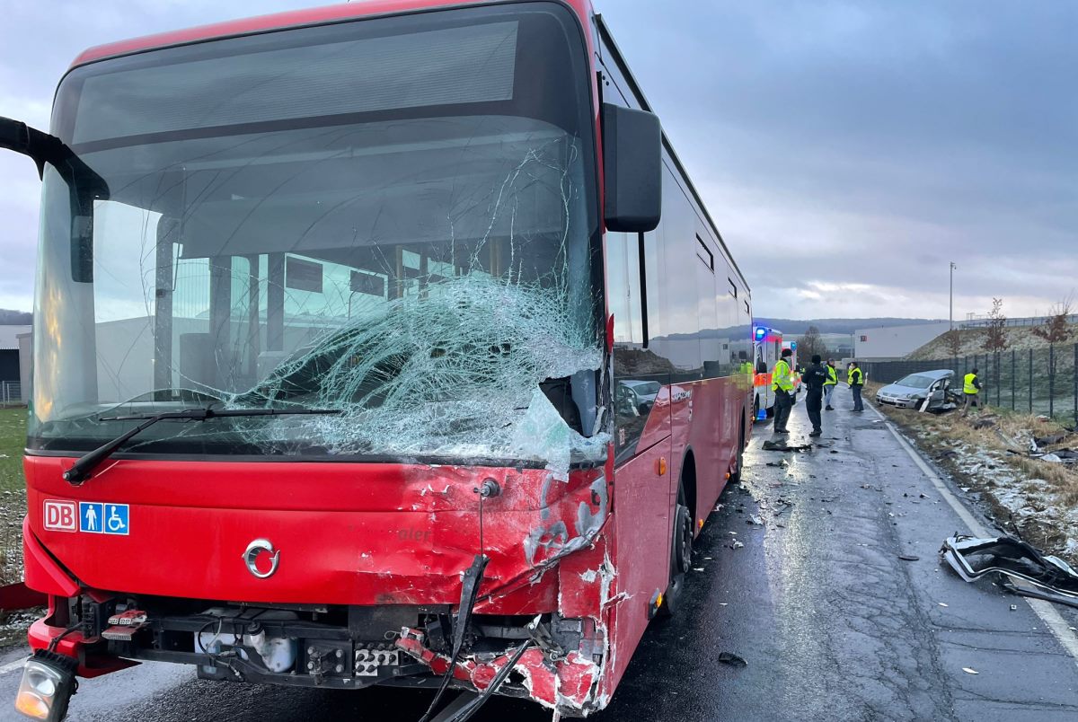 Malsfeld – Zwei Schwerverletzte, drei Leichtverletzte und 13 weitere beteiligte Schulkinder ist die Bilanz eines Verkehrsunfalls am Freitagmorgen nahe Malsfeld-Ostheim. Auf glatter Fahrbahn kollidierte ein Verkehrsteilnehmer frontal mit einem Schulbus. Zahlreiche Rettungskräfte sowie der Rettungshubschrauber Christoph-7 aus Kassel waren vor Ort im Einsatz. Zu einem schweren Verkehrsunfall kam es am Freitagmorgen auf der L3224 zwischen den Malsfelder Ortsteilen Elfershausen und Ostheim. Ersten Erkenntnissen zur Folge befuhr zunächst ein Verkehrsteilnehmer mit seinem PKW die Landstraße in Richtung Ostheim. Auf Höhe eines Logistikunternehmens geriet das Fahrzeug aufgrund von Glätte eins schleudern und krachte mit der Fahrerseite frontal in einen entgegenkommenden Schulbus. Beide Fahrer wurden durch den Aufprall schwer verletzt. Niemand wurde eingeklemmt. Drei der insgesamt 16 Kinder wurden glücklicherweise nur leicht verletzt. Während der Bus umgehend auf der Fahrbahn zum stehen kam, schleuderte der PKW in einen angrenzenden Graben. Ersthelfer von den angrenzenden Betrieben sowie weitere Verkehrsteilnehmer kümmerten sich umgehend bis zum Eintreffen der Rettungskräfte um alle Verletzten und Beteiligten. Der verunfallte PKW Fahrer wurde schwer, glücklicherweise aber nicht lebensbedrohlich verletzt.