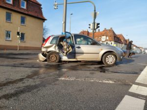 Kassel – Auf der Kreuzung Dresdener Straße und Sandershäuser Straße ereignete sich am Sonntag ein folgenschwerer Verkehrsunfall. Zwei PKW stießen im Kreuzungsbereich zusammen. Die Berufsfeuerwehr Kassel befreite eine Person mit hydraulischem Rettungsgerät aus einem Fahrzeug. Insgesamt wurden vier Personen verletzt, darunter erlitten zwei Kinder schwere Verletzungen. Gegen 15:20 Uhr erreichte die Leitstelle der Feuerwehr Kassel die Meldung über einen Verkehrsunfall auf der Sandershäuser Straße. Zwei Autos sollten laut Meldung zusammengestoßen und mehrere Personen verletzt sein. Beim Eintreffen des Rüstzuges der Feuerwehr war noch eine Person in einem PKW eingeschlossen, diese wurde schnell und schonend mittels hydraulischem Rettungsgerät aus dem Fahrzeug gerettet und an den Rettungsdienst übergeben. Zwei Kinder erlitten durch den Unfall schwere Verletzungen und wurden jeweils durch einen Notarzt versorgt. Die insgesamt vier Verletzten wurden durch den Rettungsdienst an der Unfallstelle erstversorgt und anschließend in Kasseler Krankenhäuser transportiert. Die Dresdener Straße war während der Rettungsarbeiten stadteinwärts komplett gesperrt.