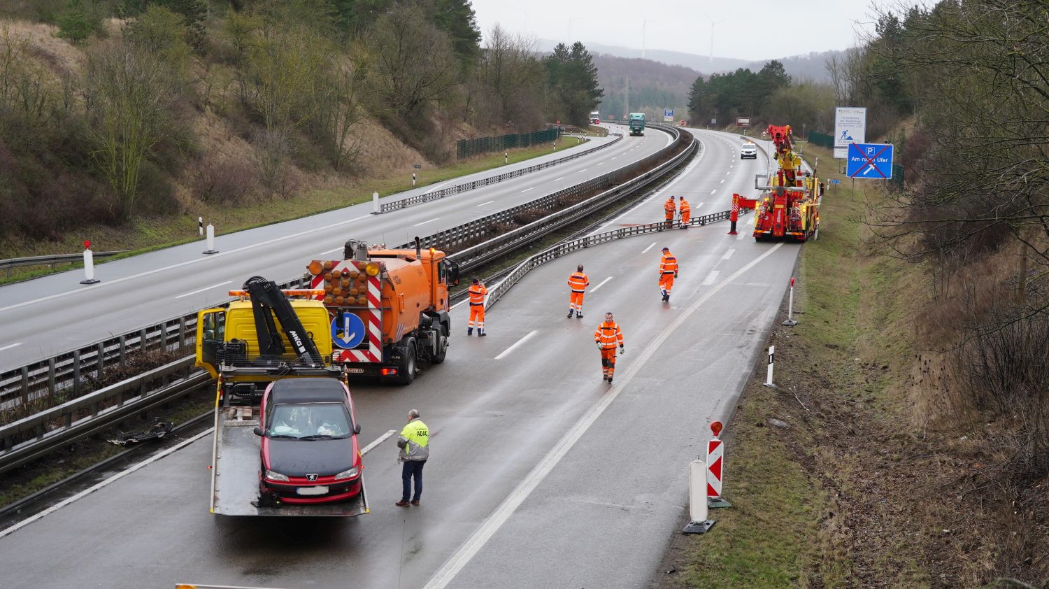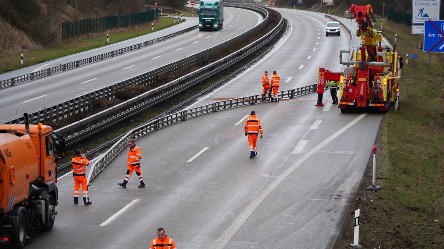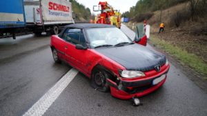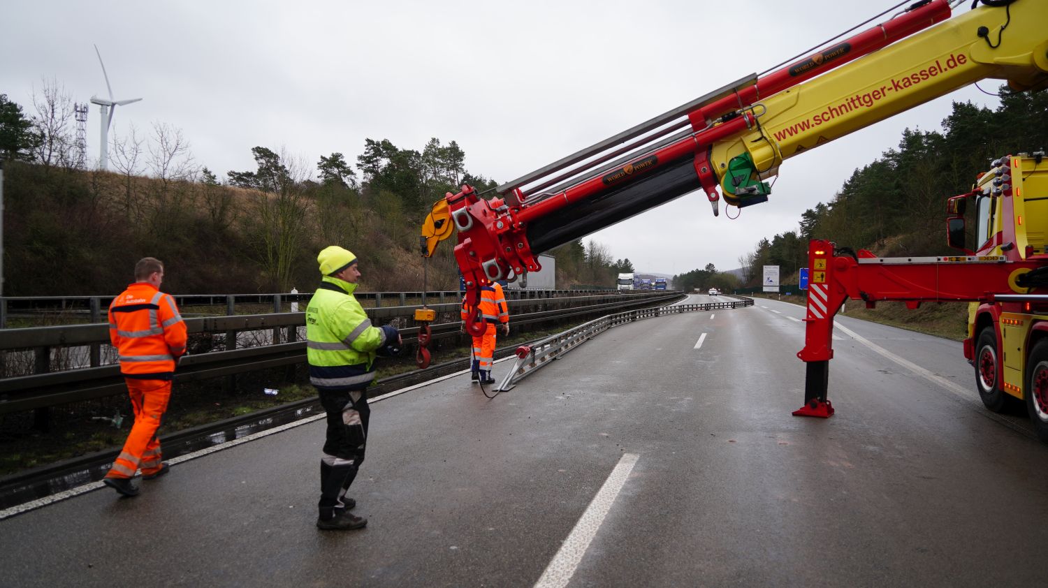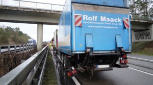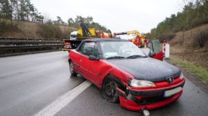 Warburg – Auf der A44 zwischen Warburg und Breuna kam es am Mittwochmorgen zu einem schweren Verkehrsunfall. Ein PKW besetzt mit zwei Personen befuhr die Autobahn gegen 8 Uhr in Fahrtrichtung Kassel. Kurz vor dem Parkplatz „Am roten Ufer“ war er aus noch unbekannten Gründen nach rechts auf den rechten Fahrstreifen abgekommen und gegen die linke hintere Seite eines dort fahrenden Lkw-Anhängers gekracht. Der Lkw war durch den Aufprall nach rechts von der Fahrbahn abgekommen und hatte eine transportable Leitplanke, die dort derzeit wegen der Sperrung des nachfolgenden Parkplatzes aufgestellt ist, durchbrochen. Das Fahrzeug geriet im weiteren Verlauf in die Böschung und anschließend wieder nach links zurück auf die Fahrbahn. Dort verschob der Lkw die transportable Behelfsleitplanke auf einer Länge von ca. 50 Metern nach links auf die Fahrstreifen der A 44. Zudem wurde die Fahrbahn durch Erdreich erheblich verschmutzt. Der Fahrer und der Beifahrer vom PKW wurden schwer verletzt und mit einem Rettungswagen in ein Krankenhaus eingeliefert. Der LKW-Fahrer blieb unverletzt. In dem PKW befand sich zudem noch eine Katze in einer Transportbox, die unverletzt blieb und von der Freiwilligen Feuerwehr Warburg bei einem Tierarzt untergebracht werden konnte.  Die Autobahn in Fahrtrichtung Kassel war bis 10.50 Uhr voll gesperrt.