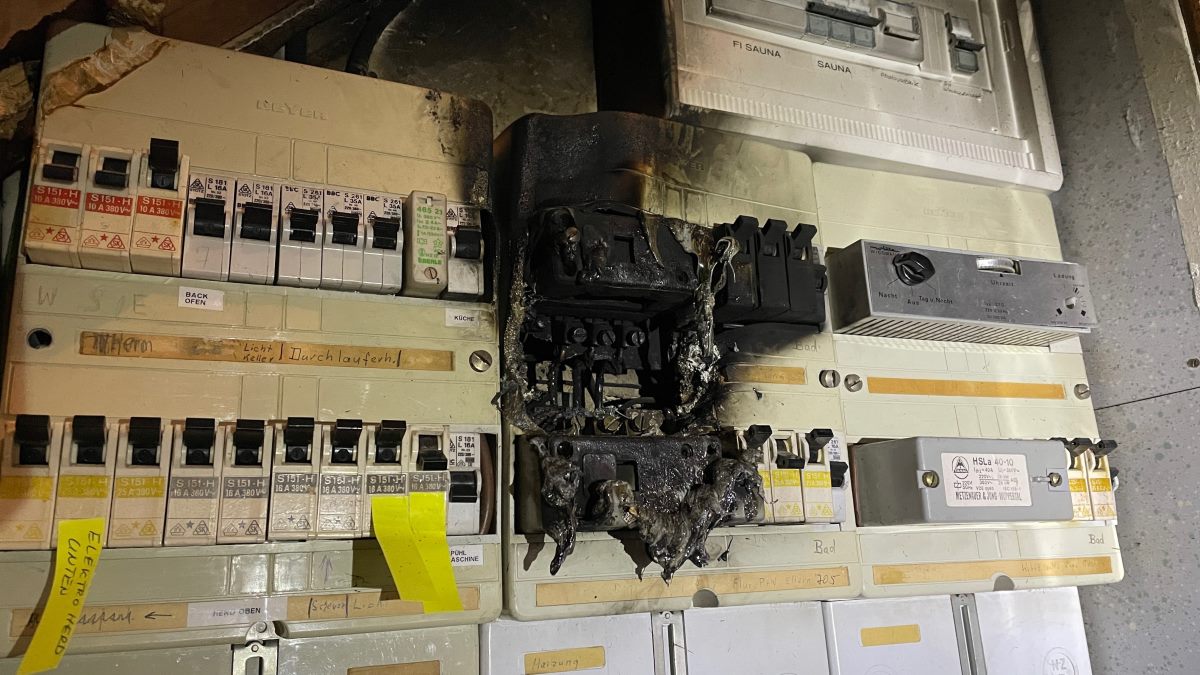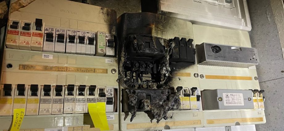 Jesberg – Der erhöhten Aufmerksamkeit einer Densberger Hausbewohnerin ist es vermutlich zu verdanken, dass es am frühen Samstagmorgen zu keinem Gebäudebrand kam. In einem Sicherungskasten, welcher direkt unter einer Dachschräge hing, brannte ein Sicherungsautomat. Der Schreck war groß als eine Hausbewohnerin zunächst ein ungewöhnliches Geräusch wahrnahm und kurz darauf ein orangefarbenes Licht im Sicherungskasten entdeckte. Beim Blick hinein kamen den Bewohnern bereits Flammen entgegen. Trotz des beißenden Geruches wurde umgehend versucht schlimmeres zu verhindern und erstickten das Feuer mit einem Handtuch. Die herbeigerufene Feuerwehr kontrollierte mehrfach mit einer Wärmebildkamera den Brandherd sowie die angrenzende Rückwand und Dachschräge. Zu einem Löscheinsatz kam es nicht. Die Einsatzstelle wurde später an den zuständigen Energieversorger übergeben. Dieser hatte nur einen Tag zuvor arbeiten am Sicherungskasten durchgeführt. Ob diese Arbeiten im Zusammenhang mit dem Brandereignis stehen, konnte vor Ort nicht geklärt werden. Im Einsatz waren 41 Einsatzkräfte der Feuerwehren der Gemeinde Jesberg, ein Rettungswagen, die Polizei Schwalmstadt sowie im späteren Verlauf die EAM als zuständiger Energieversorger. Die Einsatzleitung hatte Gemeindebrandinspektor Maik Schulz. Auch Jesberg Bürgermeister Heiko Manz machte sich vor Ort ein Bild der Lage. Die beiden Bewohner und ein Hund blieben glücklicherweise unverletzt. Die Höhe des Sachschadens konnte vor Ort nicht ermittelt werden. (mpu)