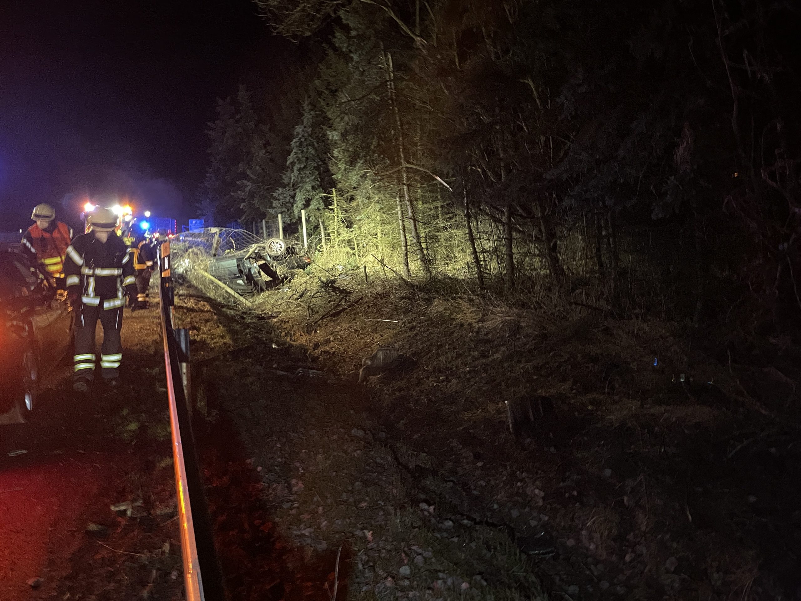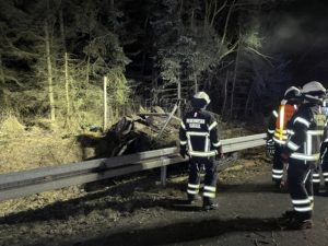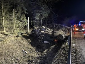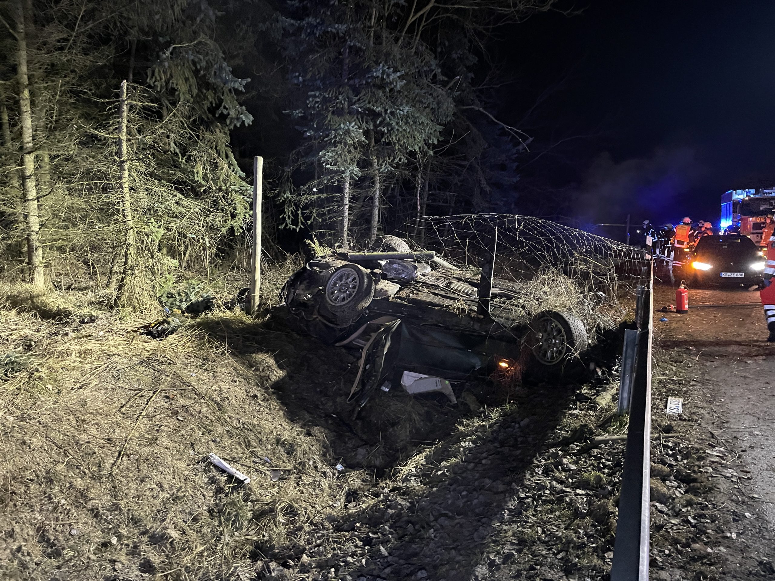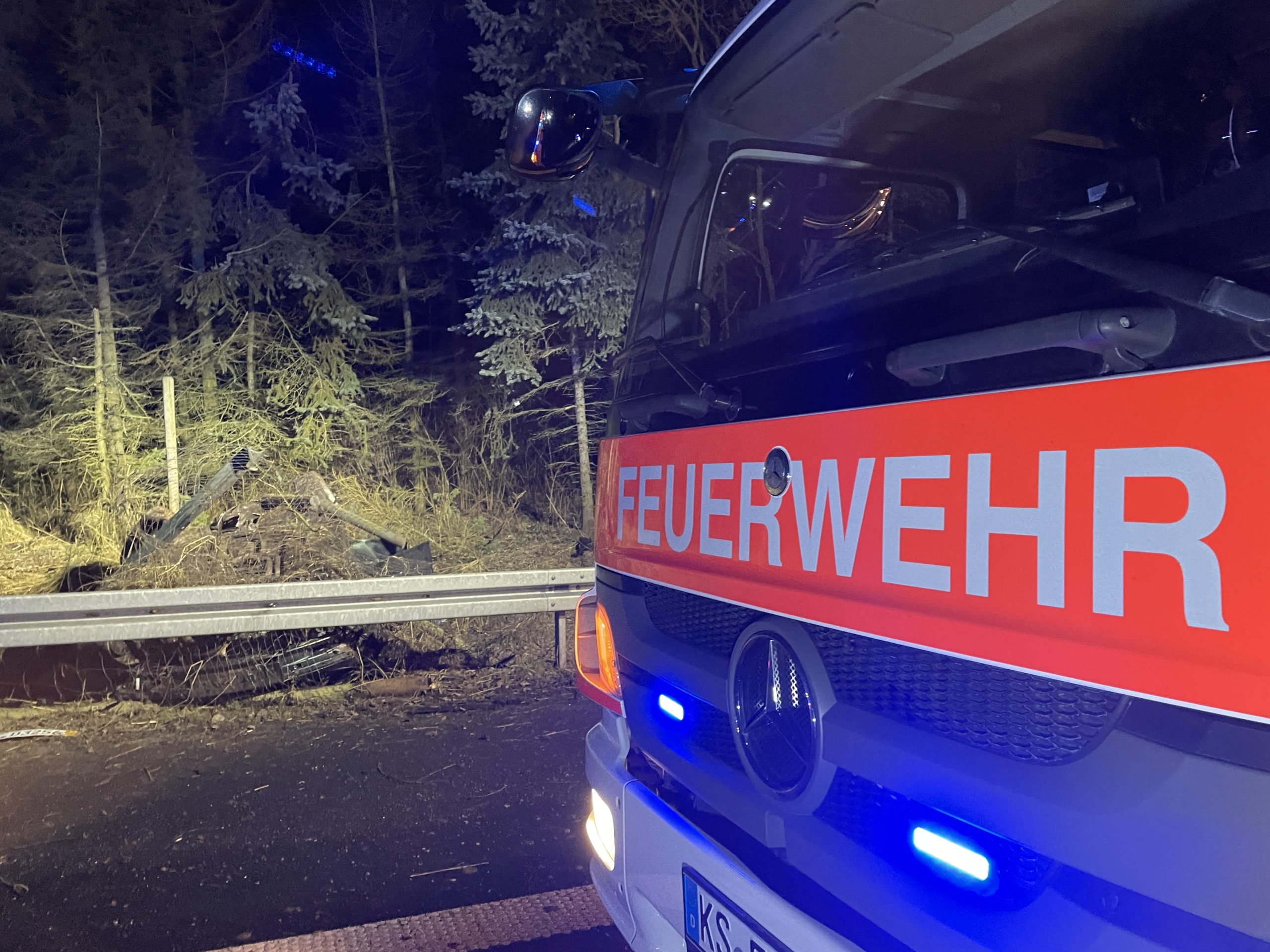 Hann.Münden: Zu einem Schweren Verkehrsunfall kam es auf der A7 zwischen Kassel-Nord und Hann.Münden/Lutterberg bei dem ein 22-Jähriger schwer Verletzt wurde. Gegen 01:46 Uhr wurde die Berufsfeuerwehr Kassel alarmiert, die Aufgaben der Feuerwehr waren, das absichern der Unfallstelle und das Unterstützen des Rettungsdienstes. Das Fahrzeug überschlug sich mehrfach, der 22-jährige Fahrer wurde aus dem Fahrzeug geschleudert und verletzte sich Schwer, er wurde zur weiteren Behandlung in ein Kassler Krankenhaus gebracht. Im Nachgang wurde die Autobahnmeisterei Göttingen alarmiert, da beim Bergen des Fahrzeugs Betriebsmittel in hohen Mengen aus dem Fahrzeug liefen. Wie es zu dem Unfall kommen konnte, ist bis zum jetzigen Zeitpunkt unklar. Im Einsatz war die Berufsfeuerwehr Kassel mit rund 10 Einsatzkräften, 2 Rettungswagen, die Autobahn Polizei Baunatal, die Autobahnmeisterei Göttingen und der ADAC für die Bergung des Fahrzeugs.
