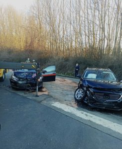Schauenburg – Zu einem Verkehrsunfall mit Personenschaden kam es am Mittwochnachmittag gegen 16:00 Uhr im Kreuzungsbereich Altenritter Straße und Abfahrt zur L3215. Bei Ankunft der Feuerwehr waren die Insassen der beiden PKW schon in Obhut des Rettungsdienstes, diese wurden nach der Erstversorgung an der Einsatzstelle in ein umliegendes Krankenhaus gebracht. Beide PKW wurden im Frontbereich stark beschädigt und mussten abgeschleppt werden. Die Feuerwehr nahm mittels Bindemittel auslaufende Betriebsflüssigkeiten auf und sicherte die Unfallstelle vor dem fließenden Verkehr. Es kam zu Verkehrsbehinderungen. Im Einsatz war die Feuerwehr Altenritte sowie Großenritte mit drei Löschfahrzeugen, zwei Rettungswagen des ASB, ein Streifenwagen der Polizei Baunatal und die Firma Zeki mit zwei Bergungsfahrzeugen. Nach rund 2 Stunden war der Einsatz beendet.