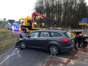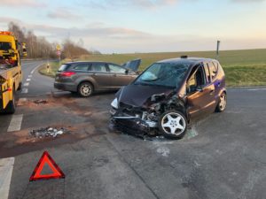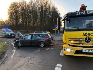 Baunatal: Erneut kam es am am Freitag Nachmittag gegen 16:00 Uhr zu einem Verkehrsunfall auf der Altenritter Straße (L3218). Diesesmal kollidierten zwei PKW im Bereich der Auffahrt zur L3215 richtung Kassel. Bei dem Unfall verletzten sich 3 Insassen und wurden nach der Erstversorgung am Unfallort in ein Krankenhaus gebracht. Die Feuerwehr sicherte die Einsatzstelle vor dem fließenden Verkehr und streute auslaufende Betriebsstoffe ab. Der Kreuzungsbereich wurde währenddessen zum Teil voll gesperrt. Neben der Feuerwehr Altenritte und Großenritte mit zwei Löschfahrzeugen waren drei Rettungswagen des ASB, der Christoph 7, 2 Streifenwagen der Polizei und Firma Zeki mit einem Bergungsfahrzeug vor Ort.
