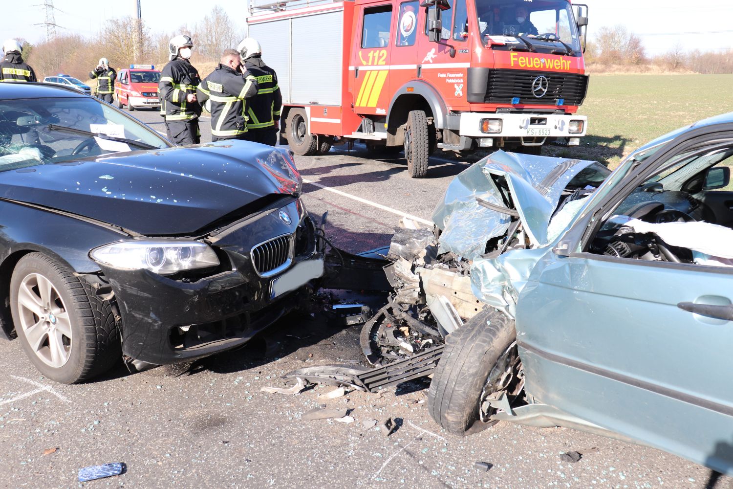 Der Mercedes war anschließend nach rechts von der Fahrbahn abgekommen und auf einem Feld auf dem Dach gelandet. Der 36-Jährige war im weiteren Verlauf mit seinem BMW im Gegenverkehr frontal mit dem nachfolgenden Wagen, ein 5er BMW, zusammengekracht. Deren 51 Jahre alte Fahrerin aus Fuldabrück wurde bei dem Zusammenstoß schwer, aber nicht lebensgefährlich verletzt und musste von Rettungskräften aus dem Fahrzeug befreit werden. Sie und die beiden Fahrer der anderen Wagen, die sich ebenfalls Verletzungen zuzogen, wurden anschließend in Kasseler Krankenhäuser gebracht. Aufgrund der Rettungs- und Bergungsarbeiten war die Landstraße für rund zwei Stunden voll gesperrt.