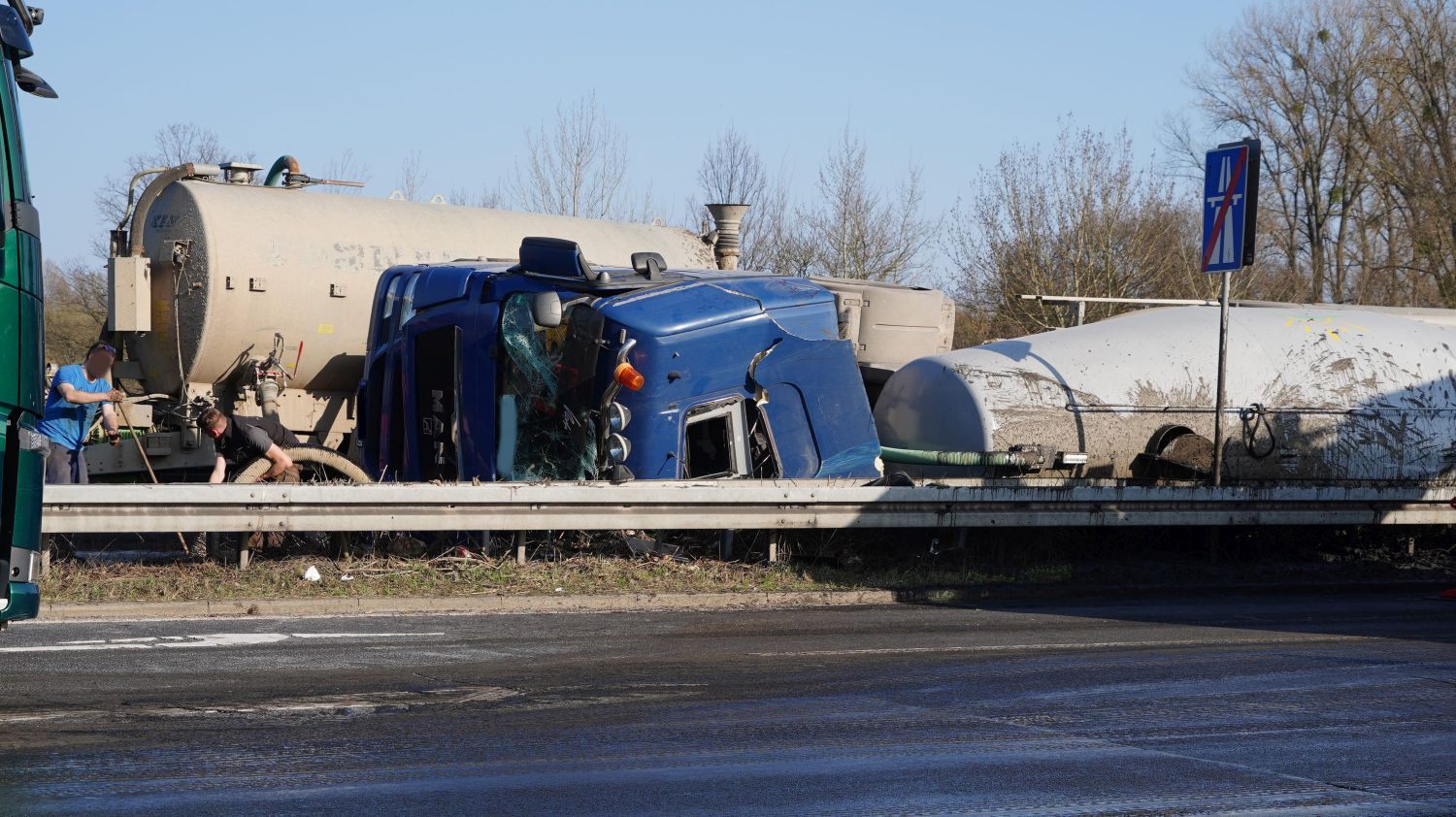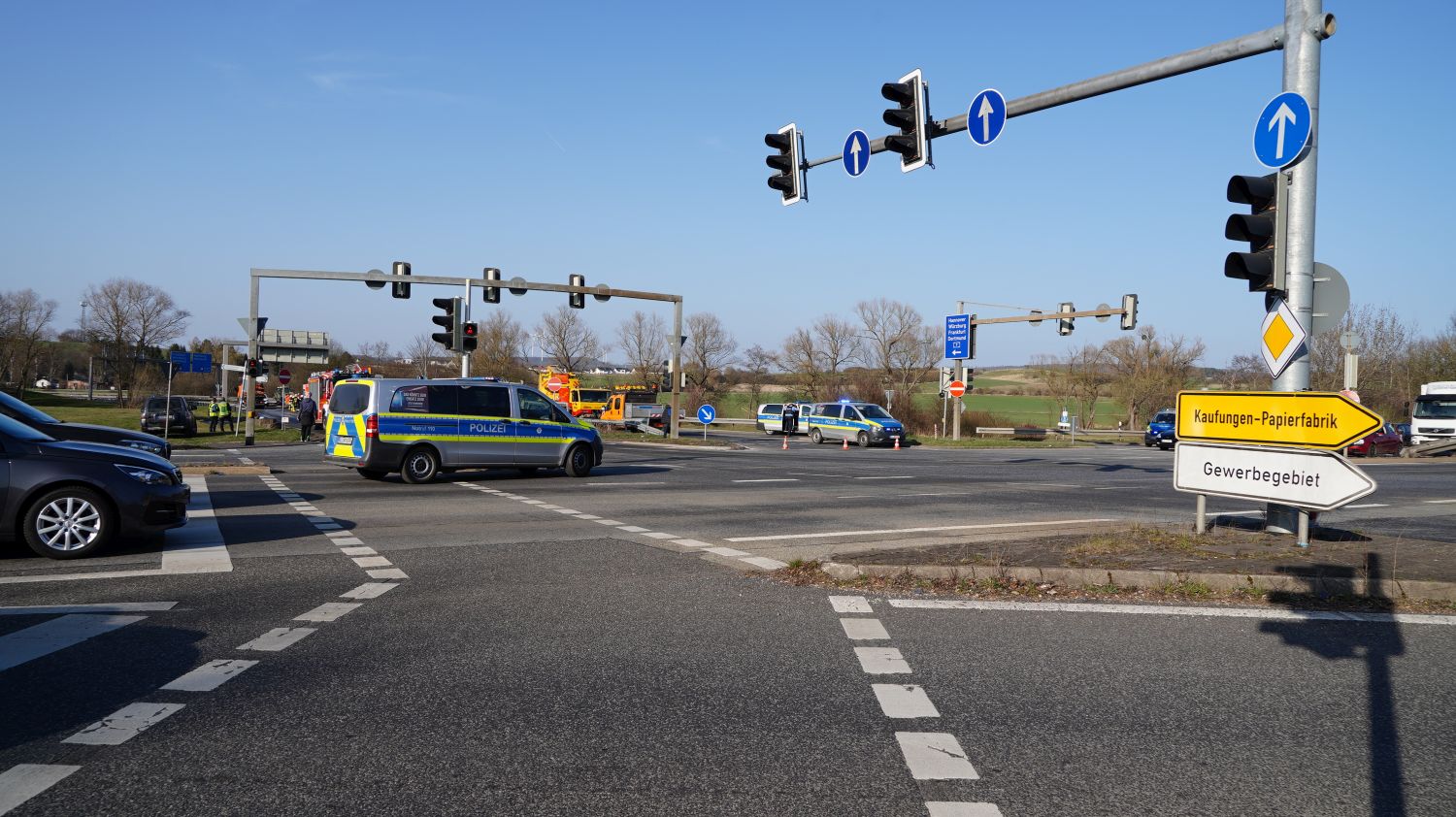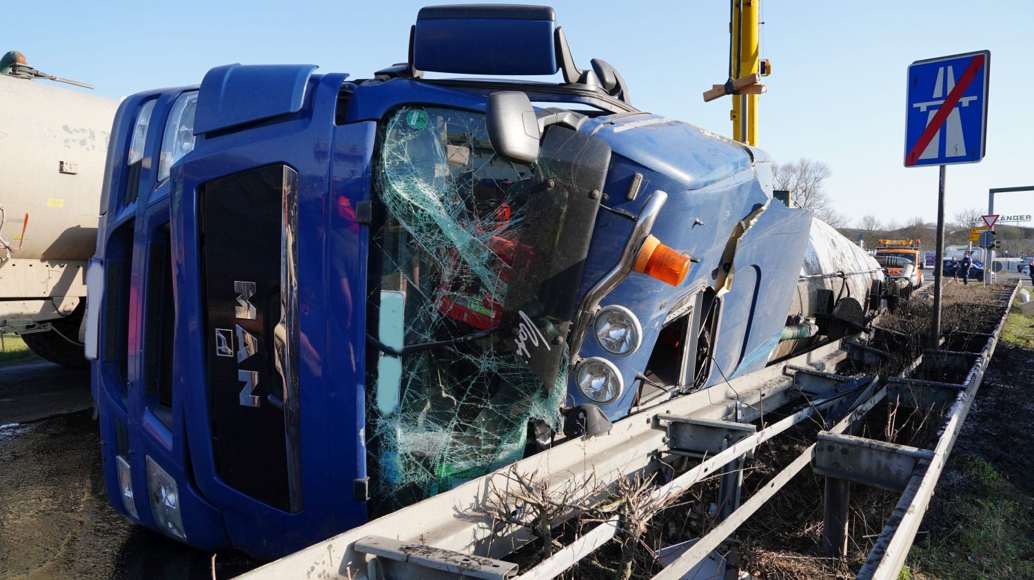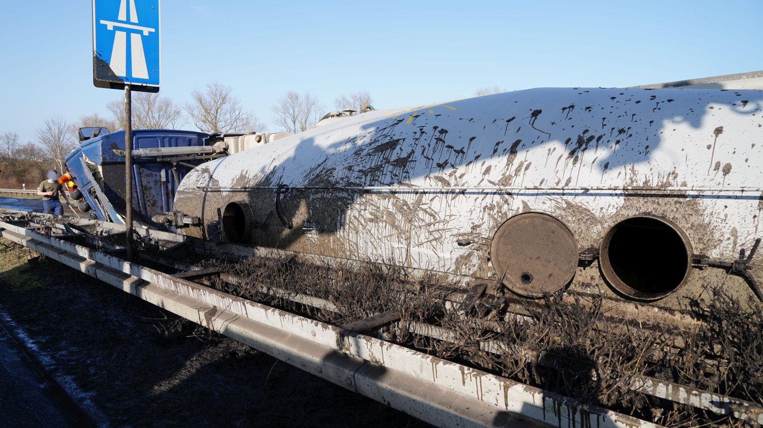 Kaufungen-Papierfabrik – An der Kreuzung der B 7 und der Autobahnauffahrt Kassel-Ost ist gegen 14:10 Uhr ein Lkw umgekippt. Das Fahrzeug war offenbar aus Richtung Kaufungen gekommen, wollte an der Kreuzung nach rechts auf die Autobahn abbiegen und ist aus noch unbekannten Gründen umgekippt. Der Fahrer wurde glücklicherweise nicht schwerer verletzt und wurde vorsorglich von den Rettungskräften versorgt. Der Silo-Lkw hat nach derzeitigen Erkenntnissen Gärreste aus einer Biogasanlage geladen, wobei die Gülle ausgelaufen ist und großflächig die Fahrbahn verunreinigt hat. Aus diesem Grund musste die Autobahnauf und Abfahrt für mehrere Stunden voll gesperrt werden. Die restliche Ladung musste aus dem Anhänger abgesaugt werden. Es wird nachberichtet.