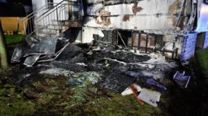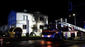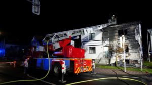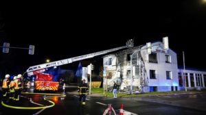 Niestetal – In der Nacht auf Montag kam es gegen 1 Uhr zu einem Brand in der Hannoversche Straße. Als die ersten Einsatzkräfte eintrafen, brannte ein Sperrmüllhaufen vor einem Gebäude, der bereits auf die Außenfassade bis zum Dachstuhl übergegriffen hat. Für die Feuerwehr war es schwierig an das Feuer zu gelangen, weil das Gebäude mit Blech-Platten verkleidet war. Mithilfe der Drehleiter aus Kaufungen und Kassel konnte das Dach teilweise geöffnet werden, um das Feuer unter Kontrolle zu bekommen. Zudem wurde das THW alarmiert, damit die gesamte Blechverkleidung abgenommen werden kann. Eine Person wurde mit Verdacht auf Rauchgasvergiftung in ein Krankenhaus eingeliefert. Rund 60 Einsatzkräfte waren im Einsatz. Die Nachlöscharbeiten dauerten mehrere Stunden an.