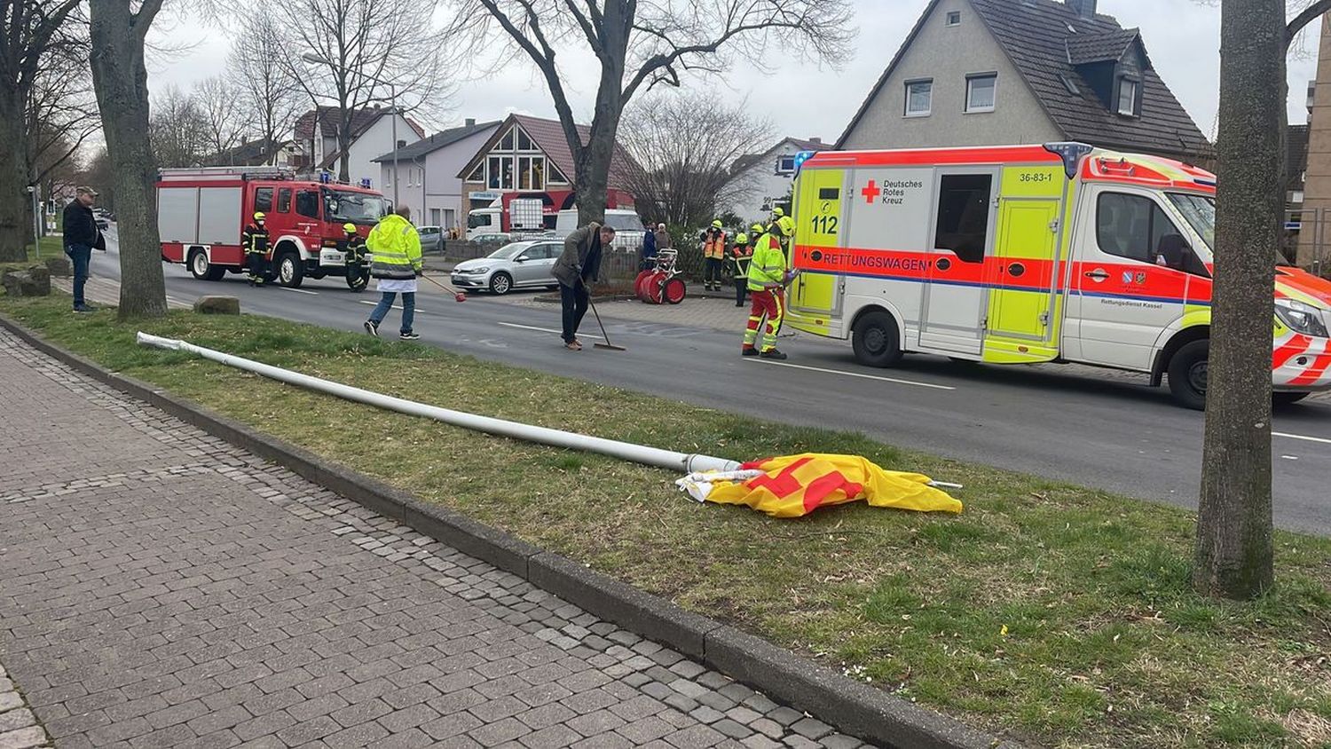 Vellmar – Am Montag kam es gegen 11:15 Uhr auf der Holländischen Straße in Vellmar zu einem Verkehrsunfall. Als die alarmierte Feuerwehr eintraf, war das Fahrzeug zwischen Hauswand und Zaun so sehr verkeilt, dass man nicht an die Fahrerin herankam. Mithilfe einer Seilwinde konnte das Fahrzeug herangezogen werden. Nachdem die 84-jährige Fahrerin vom Rettungsdienst erstversorgt wurde, kam sie leicht verletzt in ein Krankenhaus nach Kassel. Nach ersten Ermittlungen der Polizei, parkte die PKW-Fahrerin auf dem gegenüber liegenden Supermarkt-Parkplatz. Aufgrund eines Fahrfehlers fuhr sie durch die Hecke, rammte einen Fahnenmast um und kam dann an der Hauswand zum Stehen. Der Gesamtschaden wird auf 5.200 Euro geschätzt. Die Holländische Straße war für den Einsatz voll gesperrt.