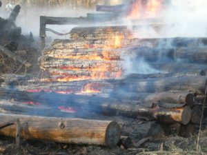 Zweiter Holzstapel in Brand