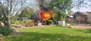 Lohfelden – Am Samstag kam es gegen 10:30 zu einem Bauwagen-Brand in Lohfelden. Dabei brannte dieser komplett nieder, auch das Umfeld um den Wagen wurde in Mitleidenschaft gezogen. Die Rauchwolke war auch weit über die Grenzen von Lohfelden zu sehen. Der Besitzer des Bauwagens versucht noch, vergeblich den Brand mit mehreren Feuerlöschern einzudämmen, dies scheiterte jedoch. Verletzt wurde niemand. Die Feuerwehr Lohfelden war mit 16 Einsatzkräften vor Ort sowie einem RTW und die Polizei Nordhessen. Nach rund einer Stunde waren die Löscharbeiten abgeschlossen.
