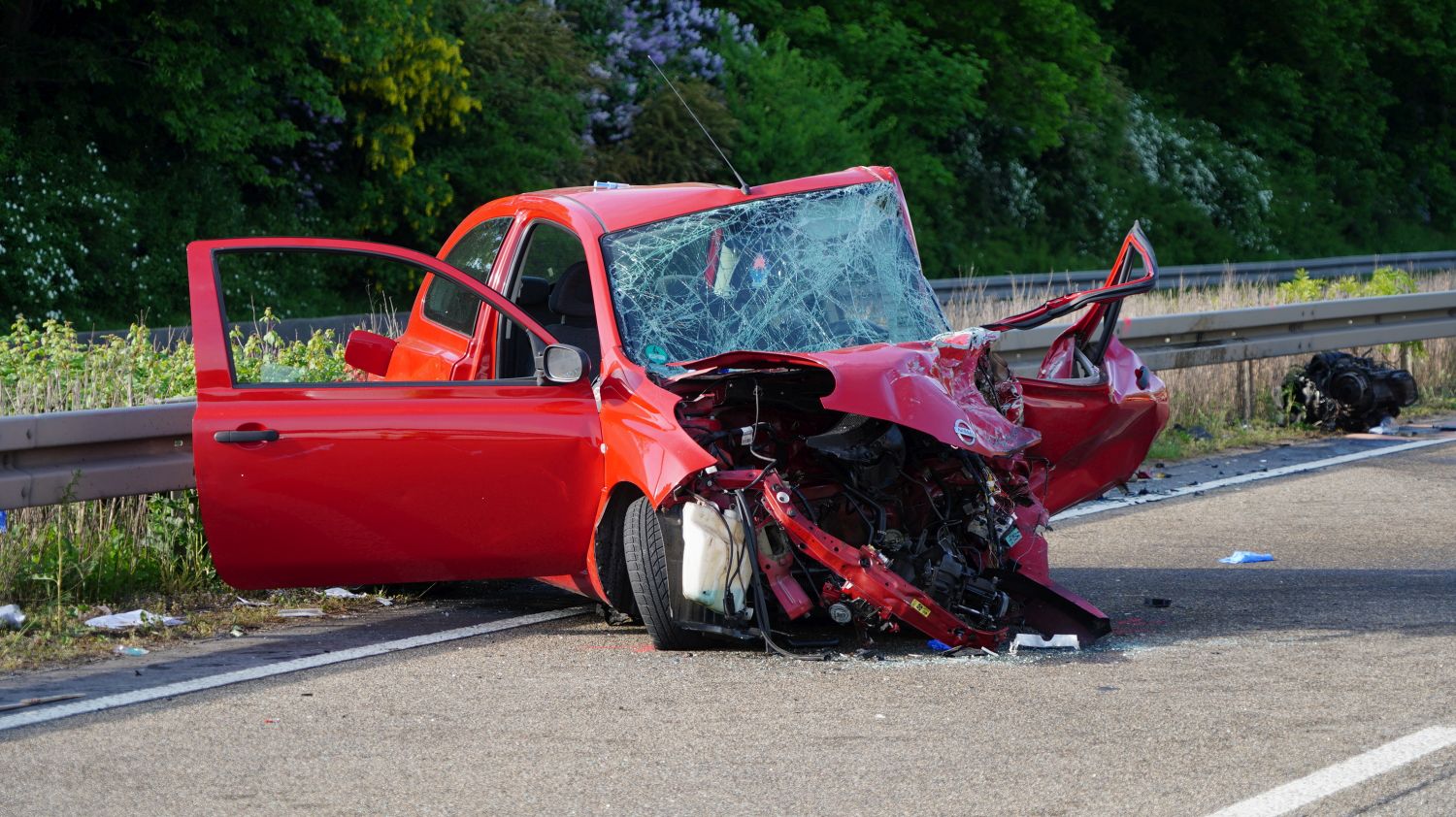 Baunatal – Am Freitag kam es gegen 16:50 Uhr zu einem Geisterfahrer-Unfall auf der A49 bei Baunatal. Wie die Polizei berichtet, fuhr zur Unfallzeit eine 20 Jahre alte Verkehrsteilnehmerin aus Kassel, von der L3473 kommend, an der Anschlussstelle Baunatal-Mitte auf die A49 in Fahrtrichtung Kassel auf. Nach übereinstimmenden Zeugenaussagen wendete die 20-jährige im Bereich des Beschleunigungsstreifens ihr Fahrzeug plötzlich und steuerte ihr Fahrzeug in der Folge in falscher Fahrtrichtung auf der linken Fahrspur. Eine 39 Jahre alte Pkw-Führerin aus Frielendorf, die mit ihrem 28-jahre alten Beifahrer aus Neustadt/Hessen auf eben dieser linken Fahrspur unterwegs war, versuchte noch zu reagieren, konnte aber einen Frontalzusammenstoß zwischen den beiden Fahrzeugen nicht mehr verhindern. Durch die Wucht des Aufpralls wurde das Fahrzeug der Frielendorferin nach rechts abgewiesen, schleuderte über die Fahrbahn und blieb auf dem Standstreifen auf der Beifahrerseite liegen.