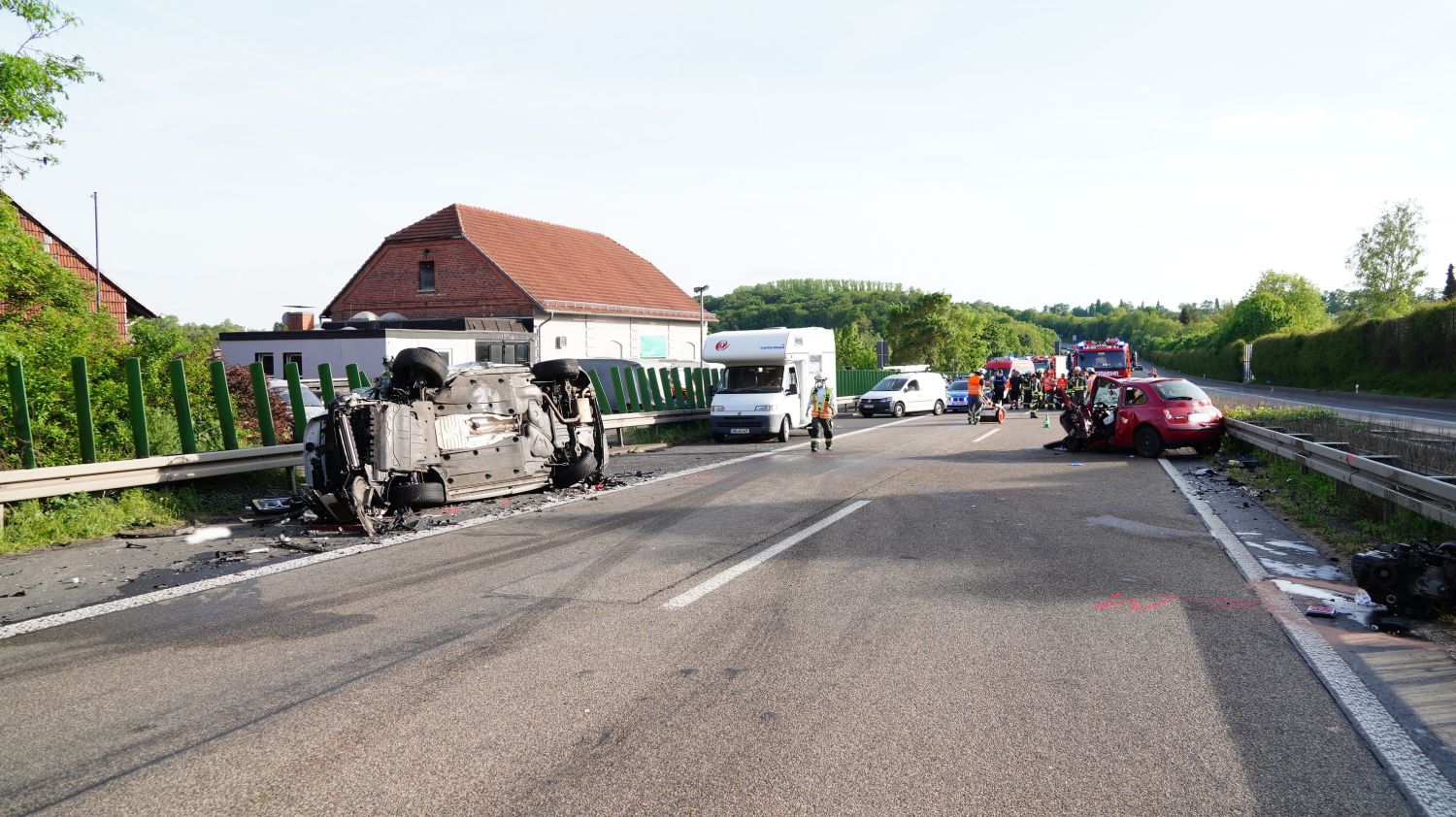 Die 39-jährige wurde hierbei schwer, nach derzeitigem Kenntnisstand aber nicht lebensbedrohlich verletzt und nach erfolgter Erstversorgung vor Ort durch einen Rettungswagen in ein umliegendes Krankenhaus verbracht, der 28-jährige Beifahrer wurde leicht verletzt und konnte nach ambulanter Behandlung vor Ort entlassen werden. Die 20-jährige Unfallverursacherin wurde in ihrem völlig zerstörten Fahrzeug eingeklemmt und musste mit schwerem Gerät durch Einsatzkräfte der Feuerwehr aus dem Fahrzeug befreit werden. Mit lebensbedrohlichen Verletzungen wurde sie nach notärztlicher Erstversorgung durch einen Rettungswagen in ein Kasseler Krankenhaus verbracht. Ein Arzt, der gerade zur Unfallzeit da war, half bei der Versorgung der Verletzten. Neben der Feuerwehr und Polizei war auch der Rettungshubschrauber Christoph 7 im Einsatz. Die A49 in Fahrtrichtung Kassel musste für die Dauer von drei Stunden voll gesperrt werden. Zur Klärung des genauen Unfallhergangs sowie der Unfallursache wurde auf Anordnung der Staatsanwaltschaft Kassel ein Gutachter zur Unfallstelle entsandt