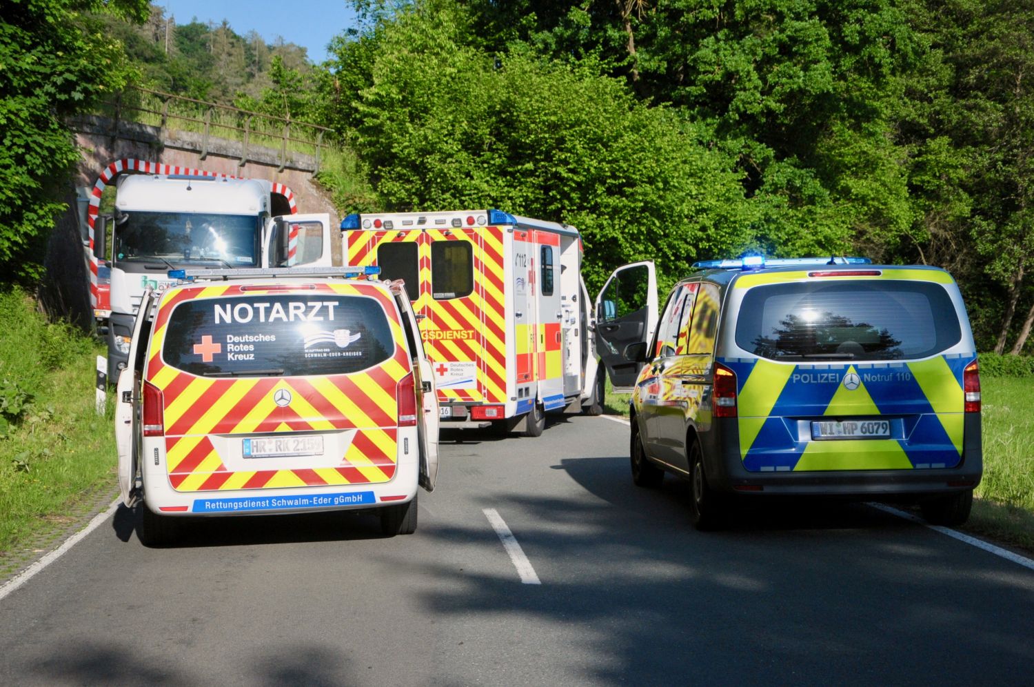 Während der LKW-Fahrer unverletzt blieb und mit einem Schrecken davon kam, wurde die junge Verkehrsteilnehmerin zunächst durch den Rettungsdienst an der Unfallstelle versorgt, ehe sie mit dem Rettungshubschrauber Christoph-7 in das Klinikum nach Kassel geflogen wurde. Die Rettungsschere der Feuerwehr kam glücklicherweise nicht mehr zum Einsatz. Im Einsatz waren zwei Rettungswagen, ein Notarzt, der Rettungshubschrauber Christoph-7, die Polizei Bad Wildungen sowie die Feuerwehren Anraff, Bergheim-Giflitz sowie die Feuerwehr Hemfurth-Edersee mit einem zweiten Rettungssatz. Die L 3086 war für rund eine Stunde für den Verkehr voll gesperrt. Während der PKW einen Totalschaden erlitt, entstand am LKW geringer Sachschaden. Die Polizei Bad Wildungen schätz den Gesamtschaden auf rund 13.000 Euro. (mpu)