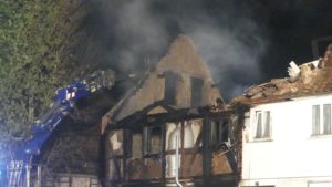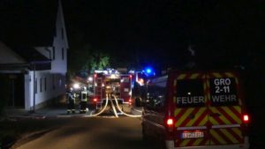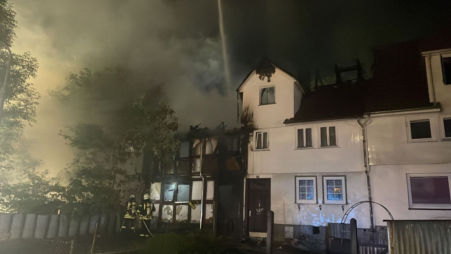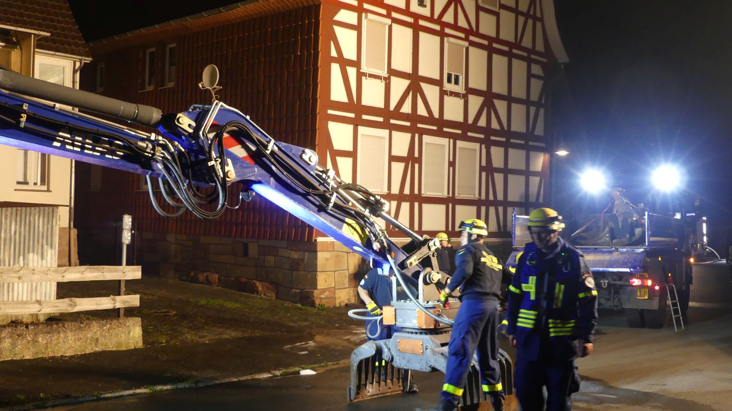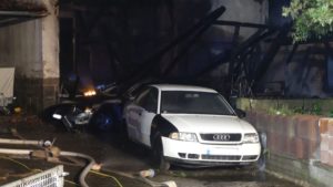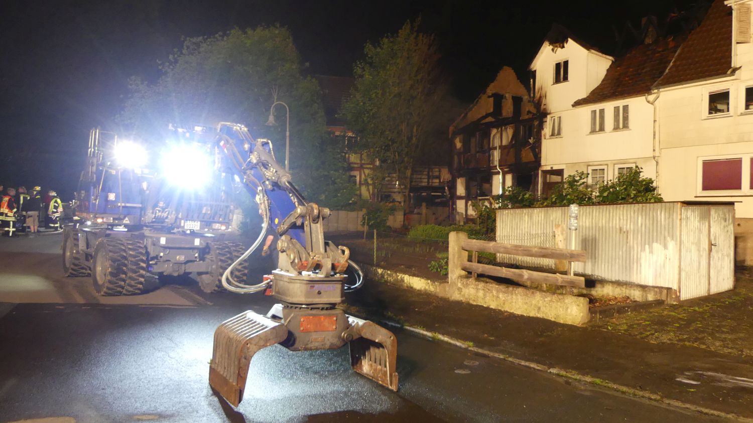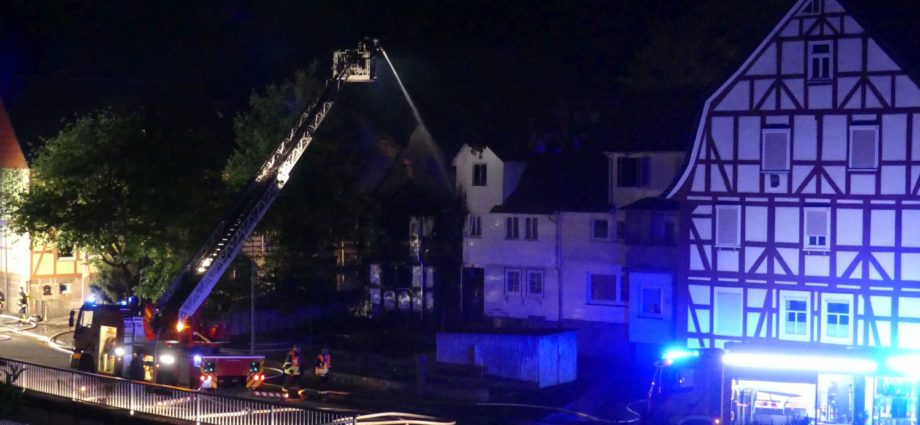 Großalmerode – Am Donnerstag gegen 21:30 Uhr, gerieten aus bislang noch unbekannter Ursache zwei Einfamilienhäuser in der Hauptstraße in Großalmerode-Trubenhausen in Brand. Die beiden Einfamilienhäuser sind direkt aneinander gebaut. Vermutlich entstand der Brand zunächst im Bereich einer Garage eines anderen Wohnhauses, welches sich direkt neben den beiden Einfamilienhäusern befindet. Durch das Feuer wurden zunächst die Garage und zwei dort geparkte PKW komplett zerstört. Anschließend griff das Feuer auf die beiden Einfamilienhäuser über. Auch diese wurden durch das Feuer komplett zerstört und sind nicht mehr bewohnbar. Ein weiteres Einfamilienhaus, welches sich unmittelbar neben den beiden anderen Einfamilienhäusern befindet, wurde ebenfalls durch Löschwasser im Mitleidenschaft gezogen. Ein Großaufgebot der Feuerwehren Großalmerode und Trubenhausen war mit Löscharbeiten vor Ort eingebunden. Das Feuer ist mittlerweile gelöscht. Personen wurden nicht verletzt, da sie sich rechtzeitig selbständig in Sicherheit bringen konnten. Das THW wurde nachträglich zum Abriss der Häuser alarmiert, damit die Feuerwehr alle Glutnester ablöschen kann. Im Einsatz waren rund 100 Einsatzkräfte. Nach ersten vorsichtigen Schätzungen entstand durch den Brand ein Gesamtsachschaden im mittleren 6-stelligen Bereich. Die Kriminalpolizei in Eschwege hat die Ermittlungen zur Brandursache aufgenommen.