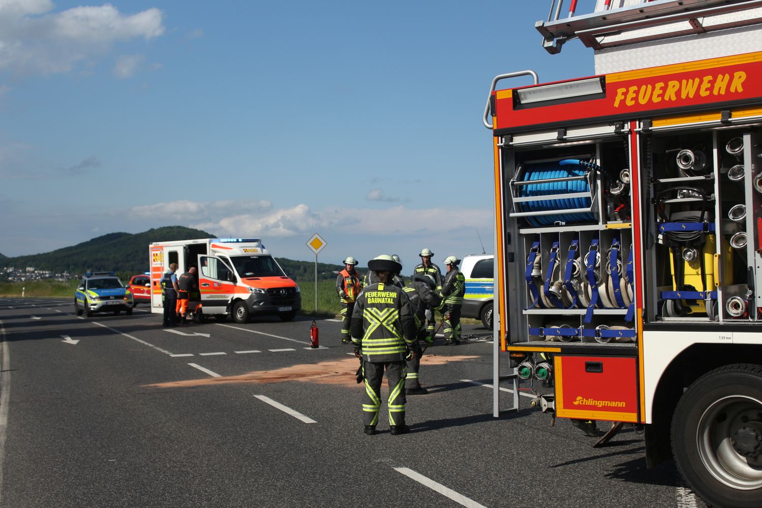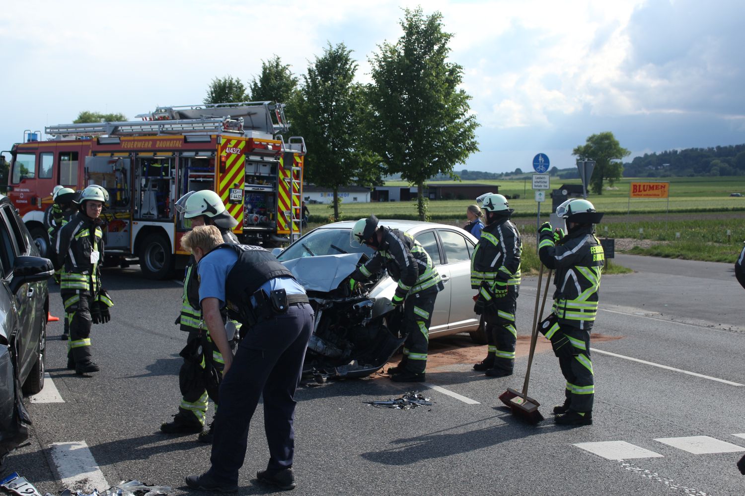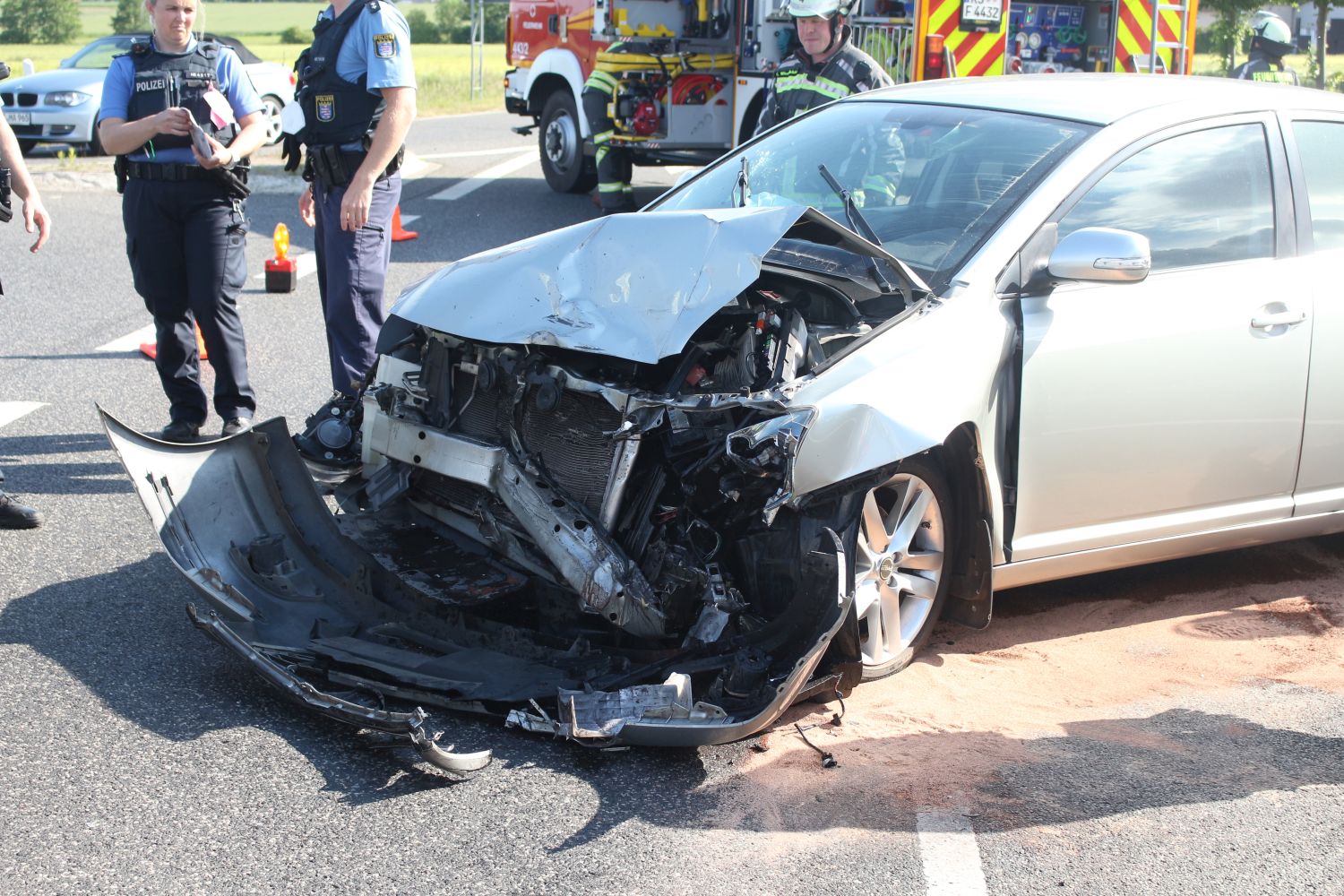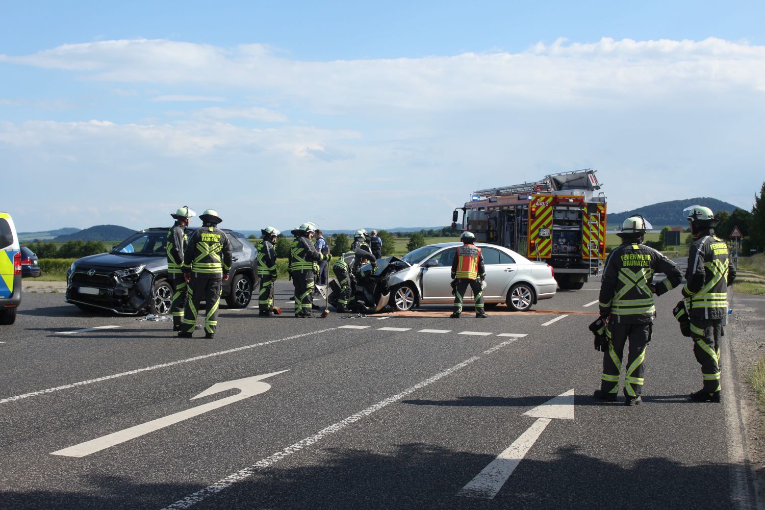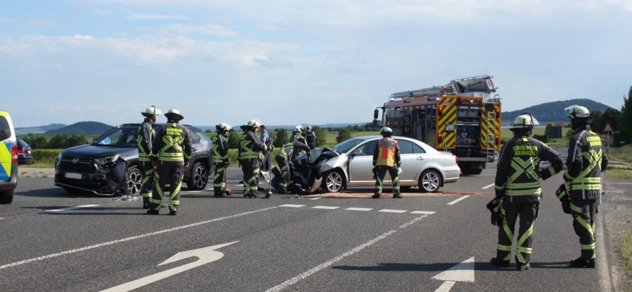 Baunatal – Am Dienstag gegen 16:45 Uhr kam es auf der L3218 zwischen Baunatal – Großenritte und Edermünde – Besse beim Abzweig Richtung Baunatal – Hertingshausen (K22) zu einem Verkehrsunfall bei dem zwei Personen leicht verletzt wurden. Nach ersten Erkenntnissen befuhr der Fahrer des silbernen Fahrzeugs die L3218 kommend von Baunatal – Großenritte wollt nach rechts auf die K22 Richtung Baunatal – Hertingshausen, dabei übersah er den schwarzen SUV, der auf der L3218 kommend von Edermünde – Besse Richtung Baunatal – Großenritte unterwegs war, zu spät und kollidierte mit diesem im Kreuzungsbereich. Beide Fahrzeuge wurden stark beschädigt und mussten abschleppt werden. Die L3218 war während der Rettungs- und Bergungsarbeiten vollgesperrt. Im Einsatz war der Rettungshubschrauber Christoph 7 die Polizei Baunatal mit 2 Streifenwagen, die Feuerwehr Baunatal mit 3 Fahrzeugen mit rund 25 Einsatzkräften.