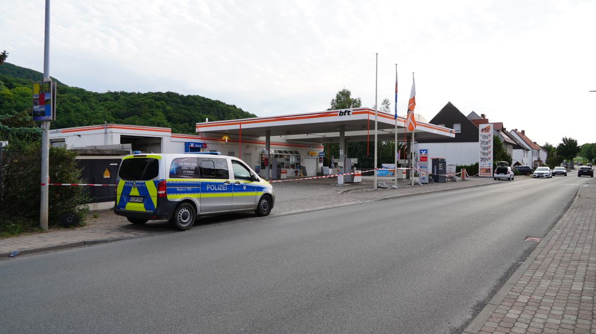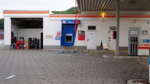 Habichtswald – In der Nacht auf Mittwoch wurde der Geldautomat der BFT-Tankstelle an der B251/Wolfhager Straße von bislang unbekannten Tätern gesprengt. Der Geldautomat war an der äußeren Gebäudewand der Tankstelle integriert. Nach derzeitigem Ermittlungsstand waren mindestens vier Täter am Werk, die nach der Explosion gegen 02.30 Uhr mit einer dunklen Audi Limousine vom Tatort in Richtung Habichtswald-Ehlen flüchteten. Wie sie die Explosion herbeiführten, ist momentan noch nicht abschließend geklärt. Ob die Täter Beute gemacht haben, ist derzeit noch unklar. Die Ermittlungen am Tatort und die Spurensicherung dauern aktuell noch an. Durch die Explosion war der Geldautomat aus der Wand gesprengt worden. Dabei waren auch Gebäudeteile sowie die Überdachung der Tankstelle beschädigt worden. Der Sachschaden beläuft sich nach ersten vorsichtigen Schätzungen auf rund 100.000 Euro. Auch die Feuerwehr Habichtswald war im Einsatz und sicherte das Gebäude. Die sofort nach der Mitteilung von Anwohnern über die Sprengung eingeleiteten umfangreichen Fahndungsmaßnahmen blieben leider bislang ohne Erfolg. Die Polizei sucht in diesem Zusammenhang nach Zeugen, die Hinweise auf die Täter oder die weitere Flucht der dunklen Audi Limousine geben können. Diese werden gebeten, sich unter Tel. 0561 – 9100 beim Polizeipräsidium Nordhessen zu melden.