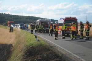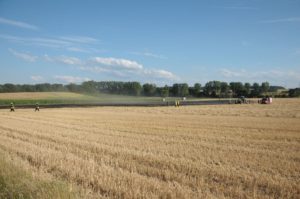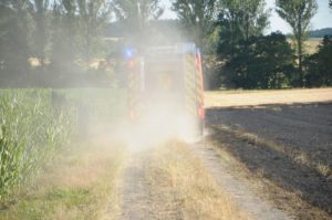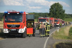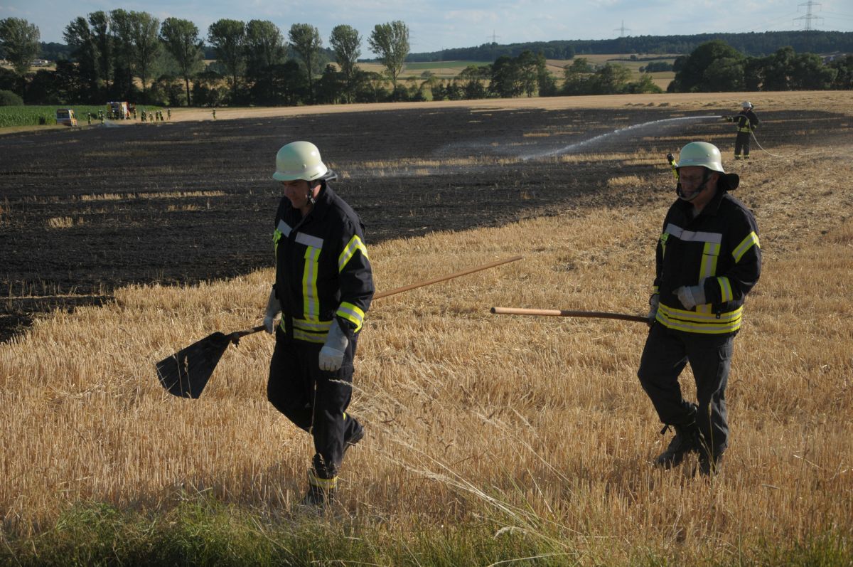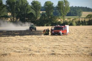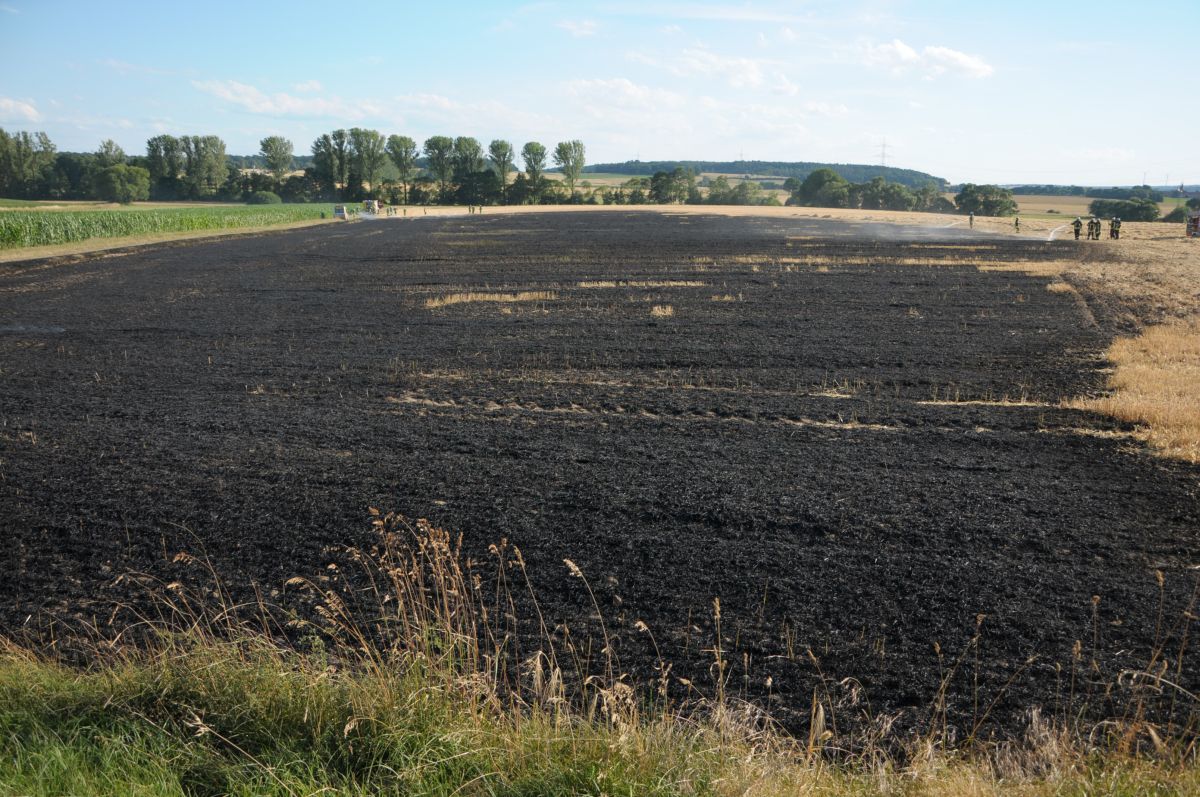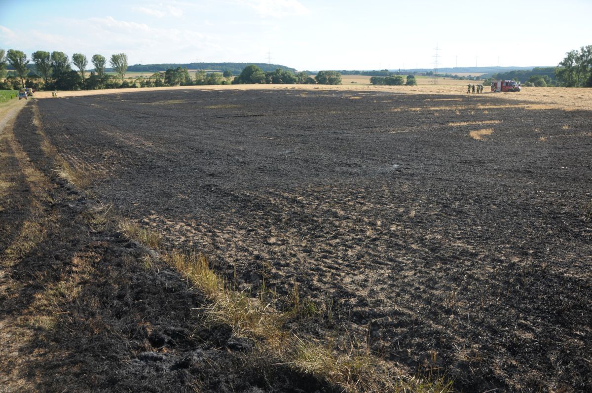 Schwalmstadt – Zwischen Michelsberg und der Wolfshainsiedlung geriet am frühen Sonntagabend ein Stoppelfeld in Brand. Bei Ankunft der Brandschützer brannte bereits eine Fläche von knapp einem Hektar Feld. Die rund 40 Feuerwehreinsatzkräfte hatten das Feuer schnell unter Kontrolle. Von insgesamt drei Seiten löschten die Brandschützer die lodernden Flammen. Einige Landwirte halfen mit Eggen bei der Brandbekämpfung, damit sich das Feuer nicht weiter ausbreiten konnte. Nach einer knappen Stunde konnten die Feuerwehren wieder abrücken. Zur Brandursache konnte vor Ort keine Auskunft gegeben werden. Im Einsatz waren insgesamt 40 Einsatzkräfte der Feuerwehren Allendorf, Michelsberg, Röhrshain, Treysa, Zimmersrode und Ziegenhain sowie die Polizei Schwalmstadt. Während des Einsatzes war die L 3074 zwischen Michelsberg und Röhrshain für den Verkehr gesperrt. Sachschaden entstand keiner. (mpu)