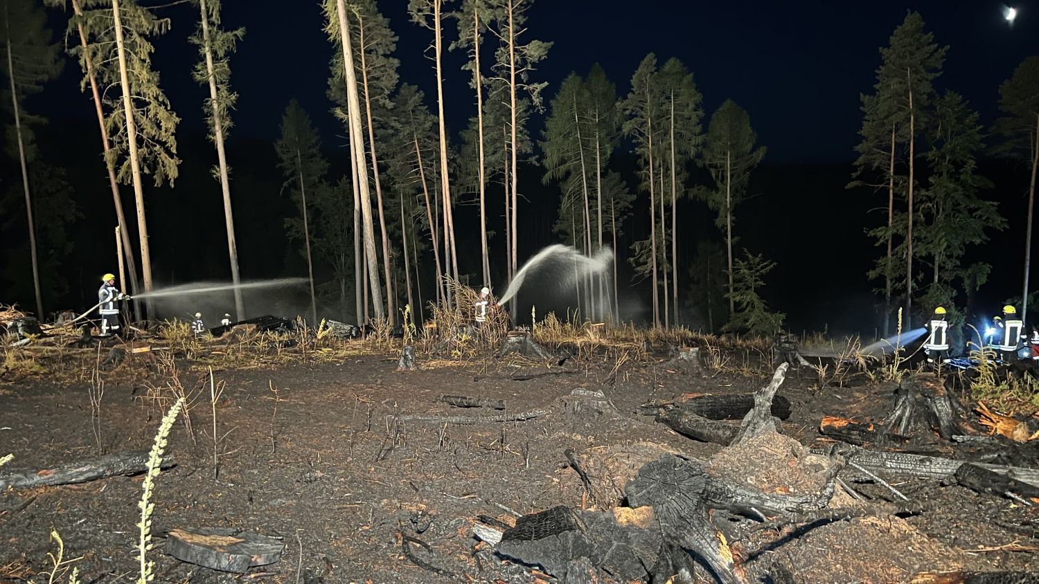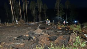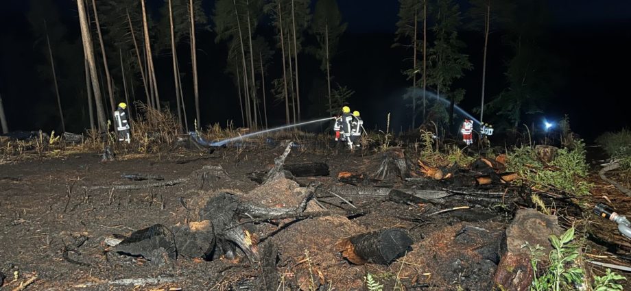 Nentershausen – Was genau brennt, war noch nicht klar, als die Feuerwehr aus Nentershausen im Kreis Hersfeld-Rotenburg gegen 20.20 Uhr zu einer „unklaren Rauchentwicklung“ im Freien alarmiert wurden. Entdeckt wurde der Rauch aber von Wölfterode aus, auf der Werra-Meißner Seite des Waldes. So erzählten es zumindest die Bewohner der Ortes Wölfterode, die an der Zufahrtstrecke zum Wald standen und das rege Treiben der Feuerwehr beobachteten. Um 21.06 Uhr war die Lage dann etwas klarer. Die Feuerwehren, die zuerst an der Einsatzstelle eintrafen und das Feuer nach intensiver Suche lokalisieren konnten, lösten dann auch gleich Großalarm aus, weil mitten im Wald eine Fläche von mindestens 10.000 Quadratmetern Wald brannten. Von da an waren rund 150 Feuerwehrleute im Einsatz. Unzählige Löschfahrzeuge und Güllewagen der Landwirte aus der Umgebung lieferten das Löschwasser für die Einsatzkräfte an der Feuerfront. Auch das THW unterstützte die Feuerwehren mit Wasser und schwerem Gerät. Nach zwei Stunden hatte die Feuerwehr dann das Feuer unter Kontrolle, aber die Einsatzkräfte werden noch die ganze Nacht an der Einsatzstelle verbleiben müssen um ein erneutes Auflodern des Feuers zu verhindern. Was die Ursache für das Feuer war, konnte an der Einsatzstelle nicht gesagt werden. Die Polizei hat sich in die Untersuchungen eingeschaltet. Wie hoch der gesamte Schaden sein wird, kann auch erst am Tage genau ermittelt werden.