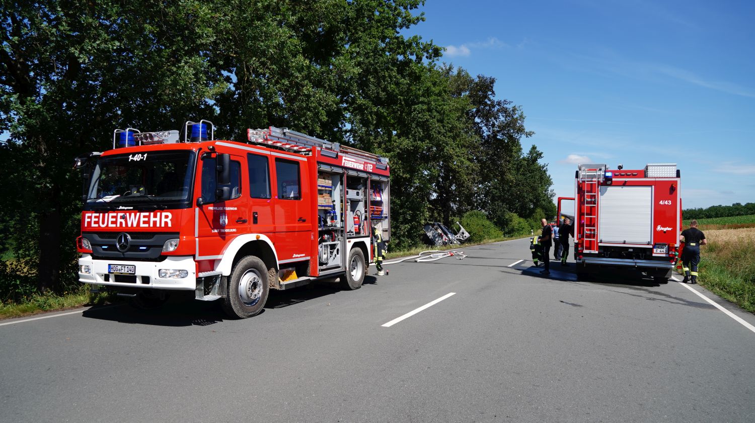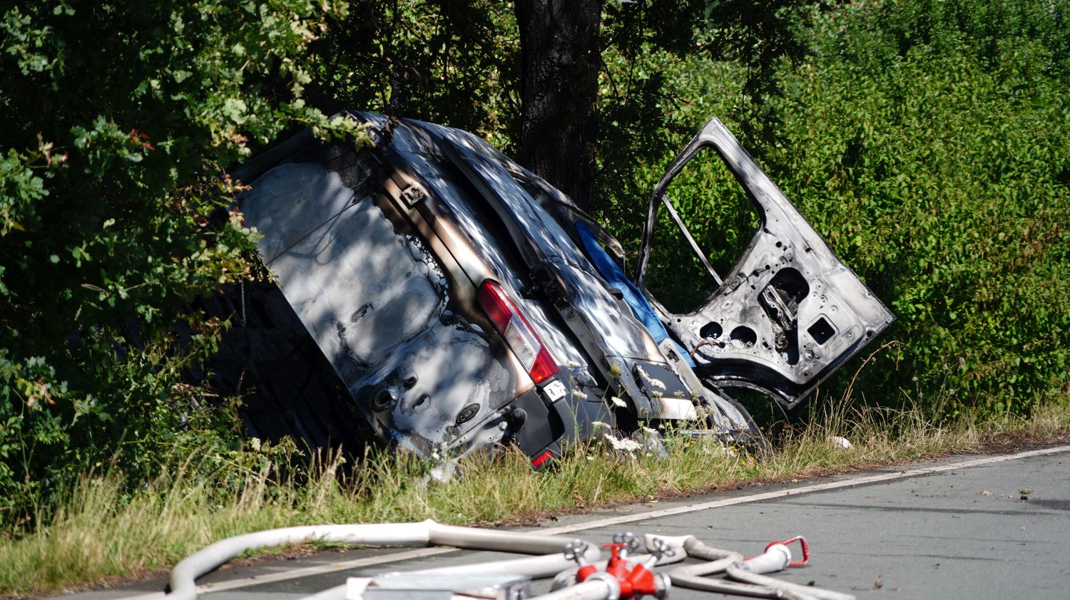 Trendelburg – Am Dienstag kam es auf der B83 zwischen Hofgeismar-Hümme und Trendelburg-Stammen zu einem tödlichen Verkehrsunfall. Nach derzeitigem Ermittlungsstand war ein 19-Jähriger aus Polen mit einem Ford Transit gegen 09.45 Uhr auf der Bundesstraße von Hümme kommend in Richtung Stammen unterwegs, als er aus bislang ungeklärter Ursache zunächst auf die Gegenspur geriet und dann nach links von der Fahrbahn abkam. Der Kastenwagen prallte in einem Graben gegen einen Baum und geriet unmittelbar in Brand. Der Fahrer wurde in dem deformierten Kleintransporter eingeschlossen. Ersthelfer konnten den Mann nicht mehr aus dem bereits im Vollbrand stehenden Kleintransporter befreien, sodass er in dem brennenden Fahrzeug verstarb. Die Ersthelfer erlitten einen Schock und werden seelsorgerisch betreut. Eine Gutachterin wurde in die Ermittlungen eingeschaltet und mit der Rekonstruktion des genauen Unfallhergangs beauftragt. Für die aufwendigen Bergungsarbeiten an der Unfallstelle musste die Bundesstraße mehrere Stunden voll gesperrt werden. Die aktuell um 15 Uhr noch besteht) Zeugen, die den Unfall beobachtet haben, werden gebeten, sich unter Tel. 05671-99280 bei der Polizeistation Hofgeismar zu melden.
